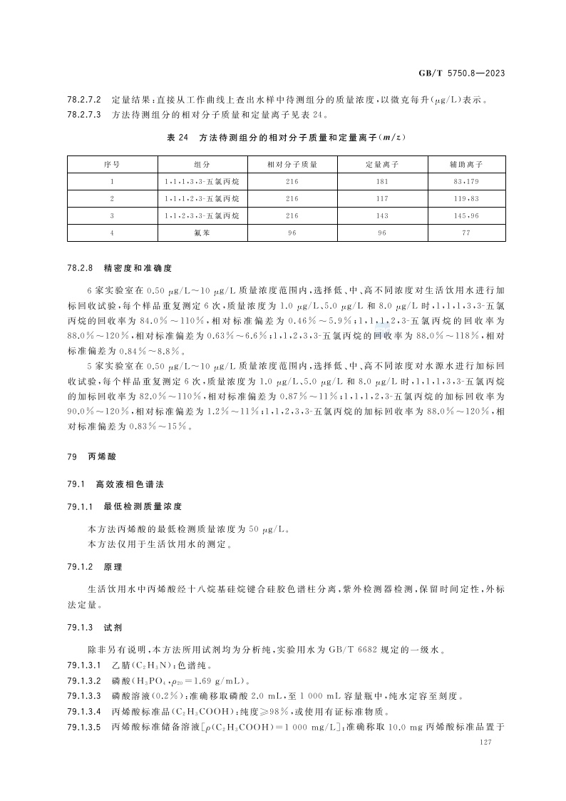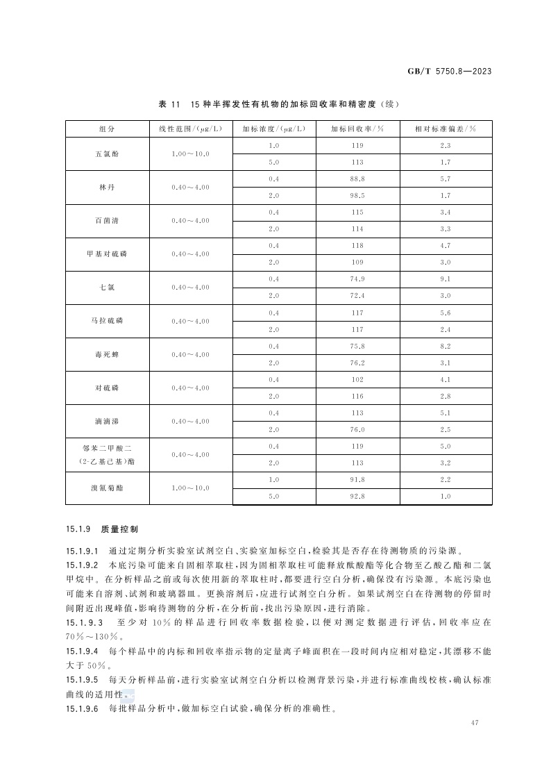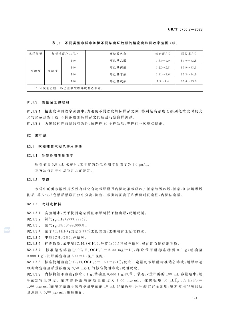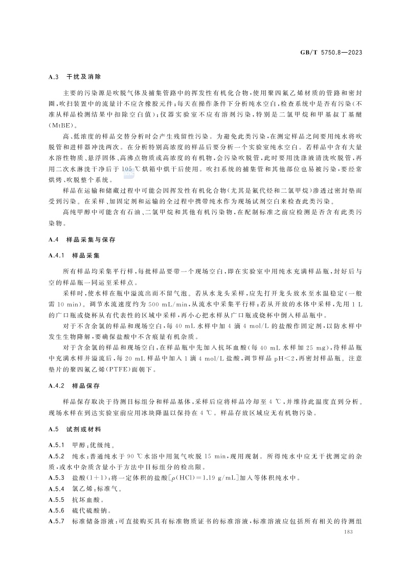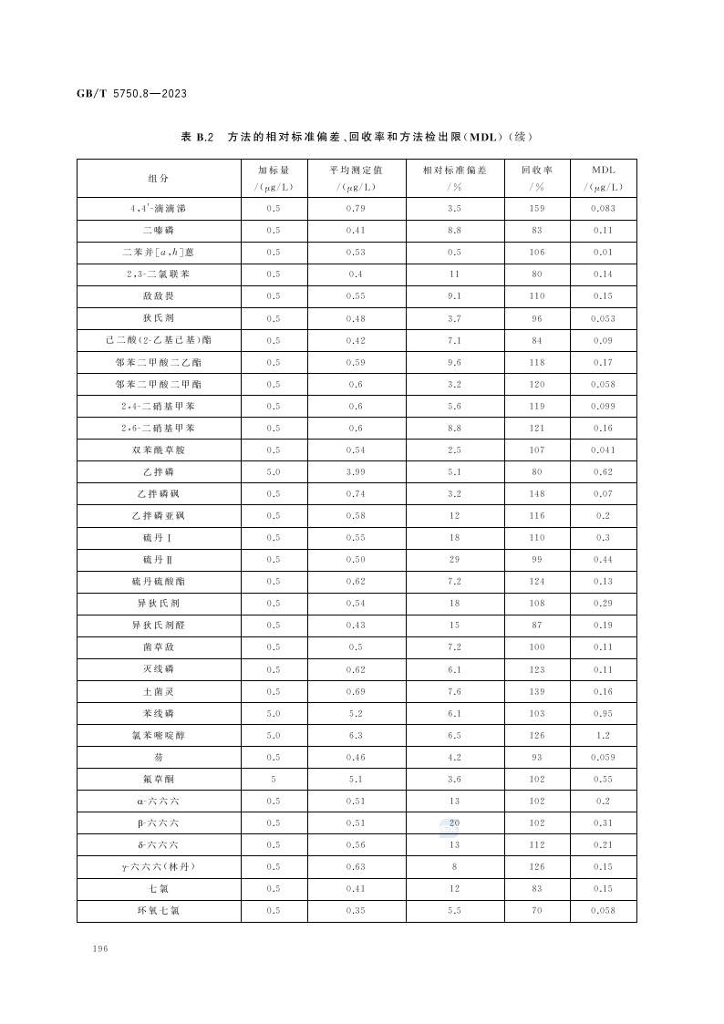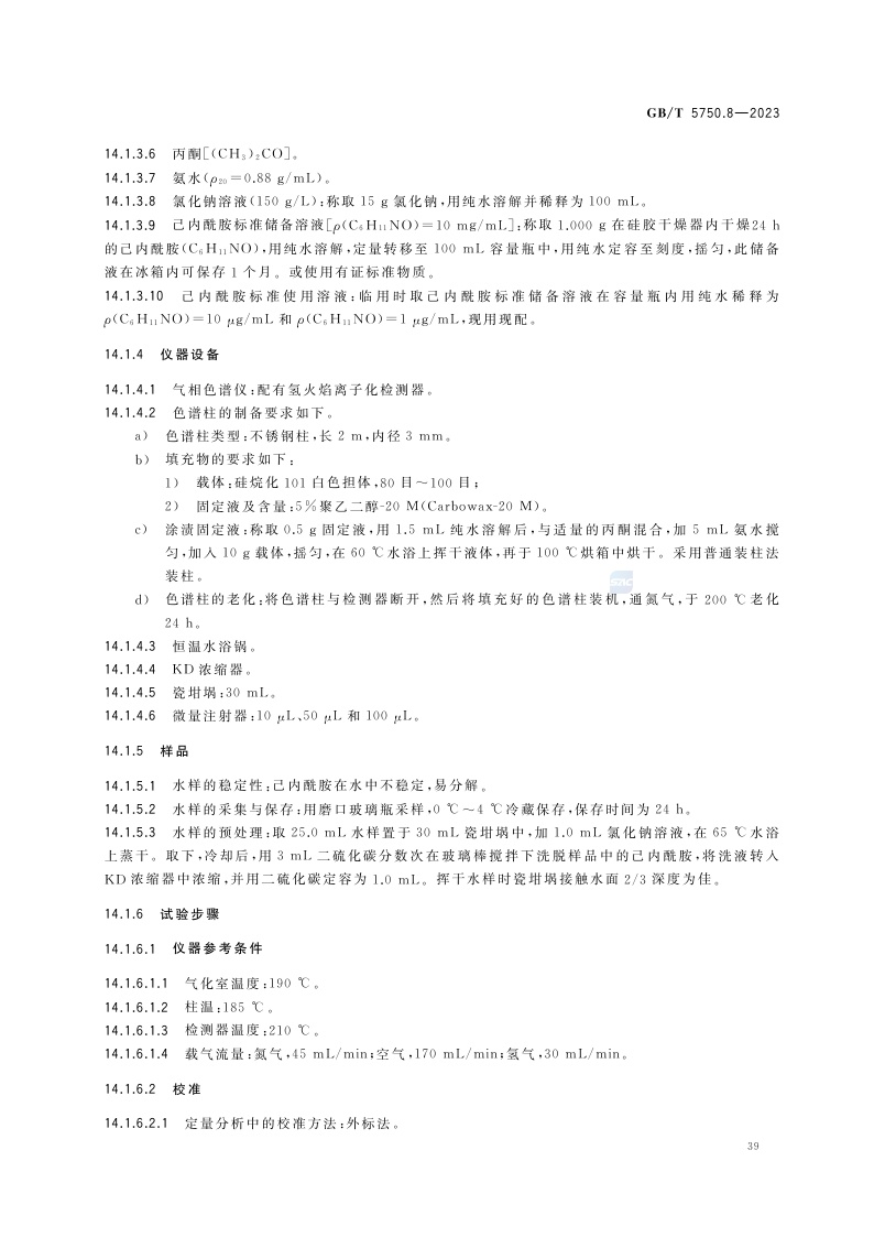 《生活饮用水标准检验方法 第8部分:有机物指标》(GB/T 5750.8-2023)