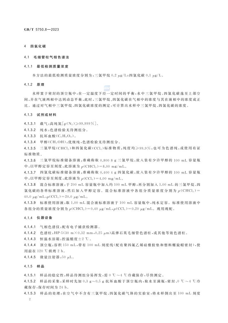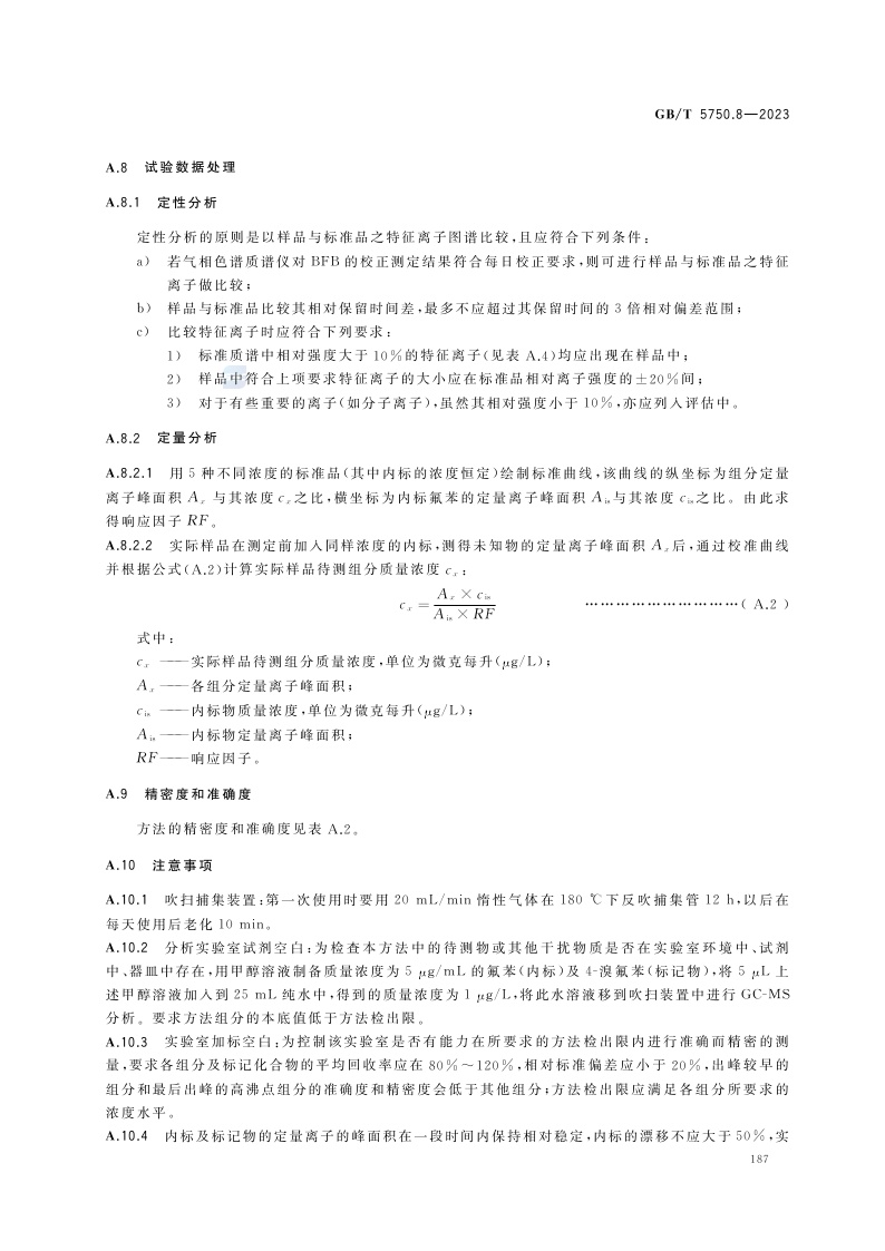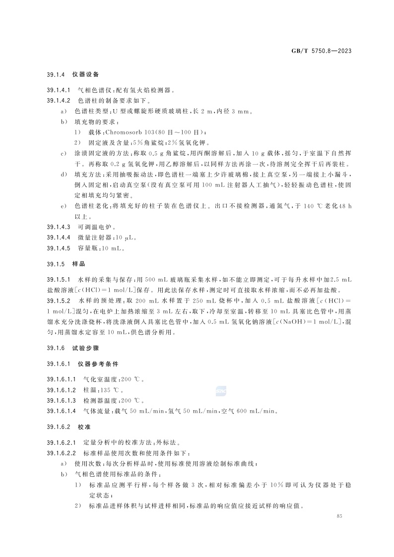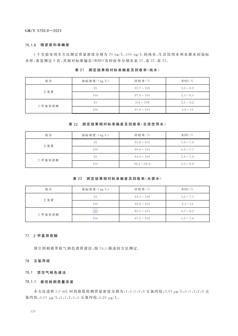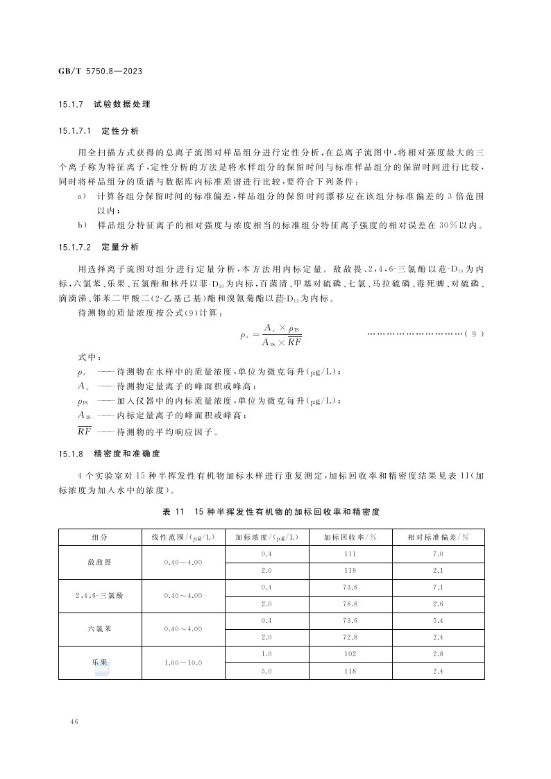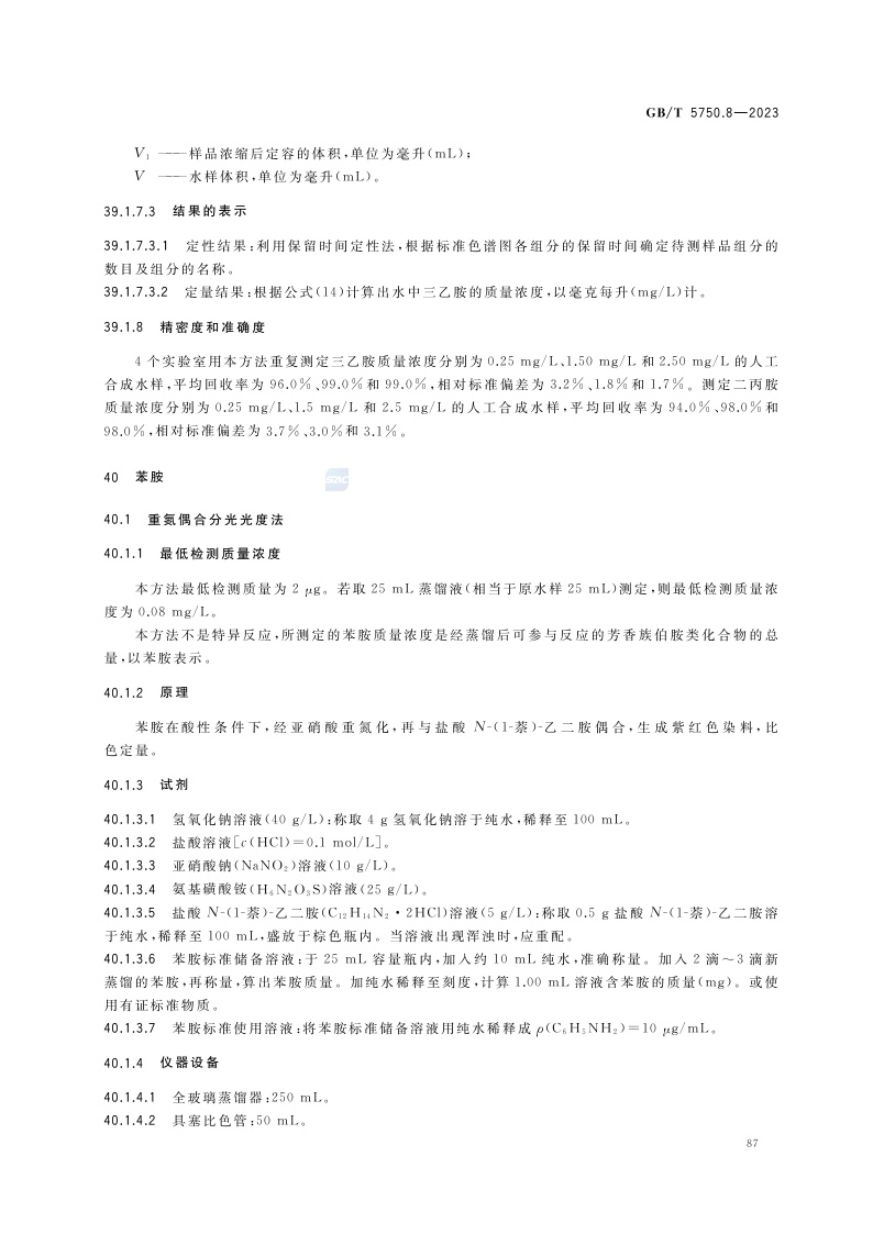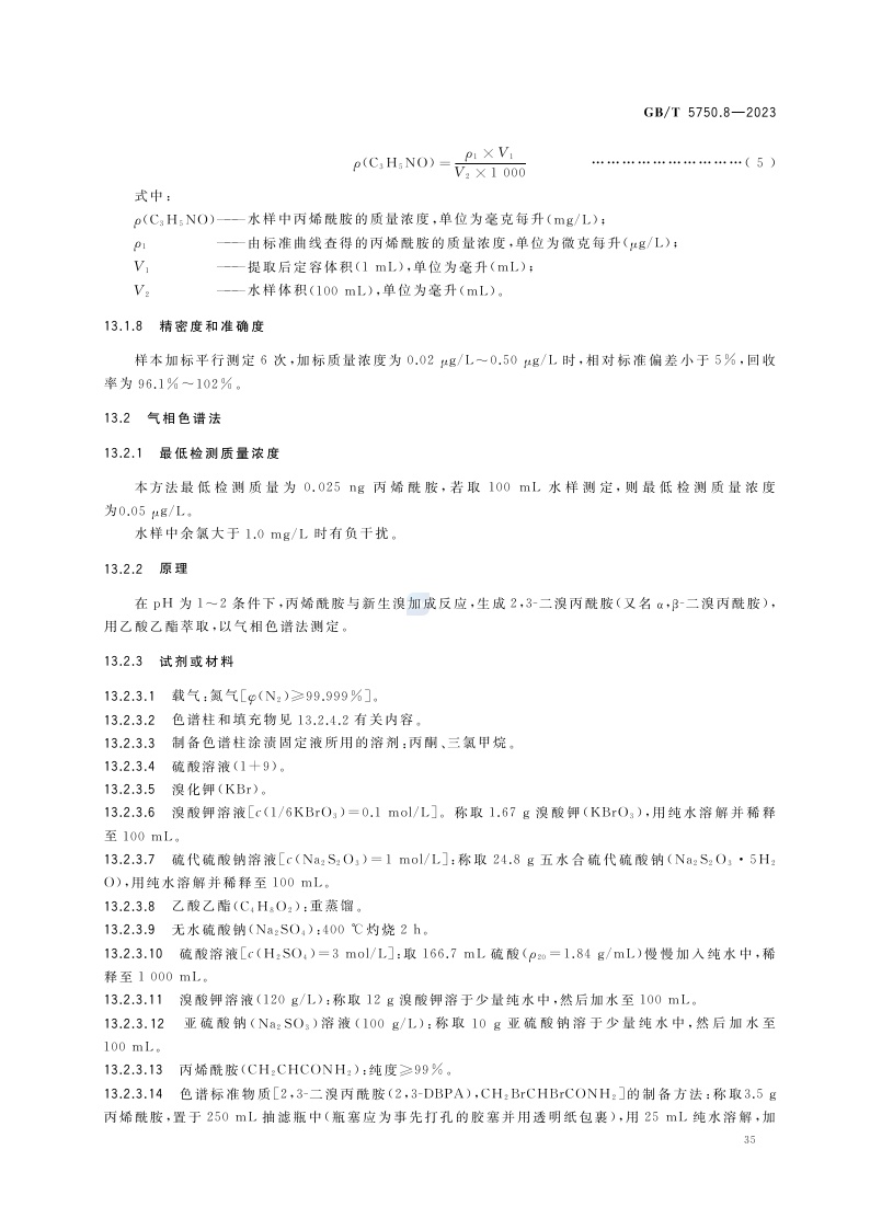 《生活饮用水标准检验方法 第8部分:有机物指标》(GB/T 5750.8-2023)