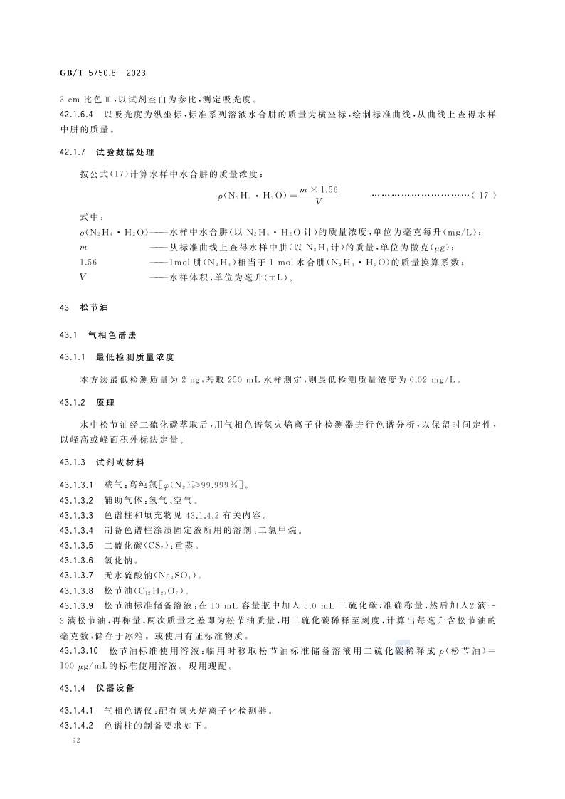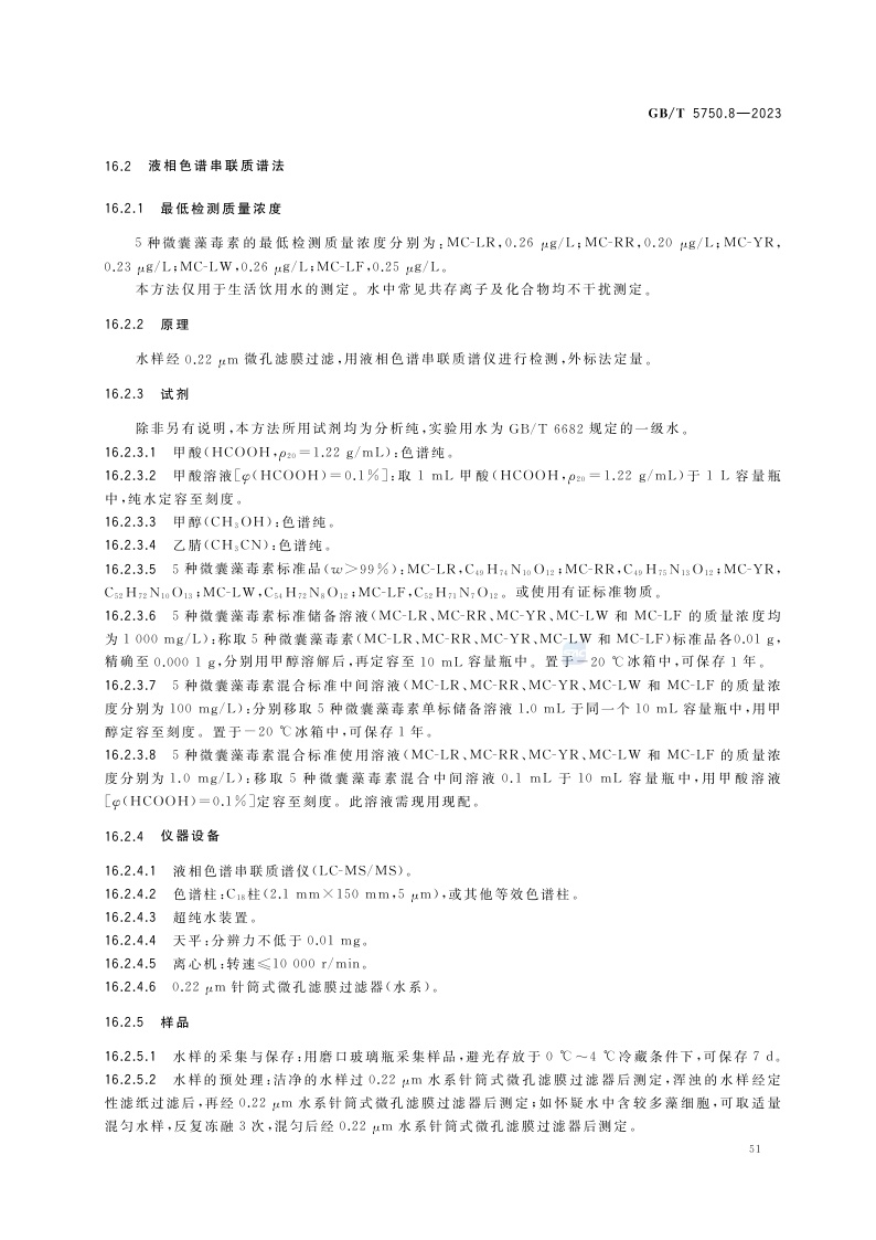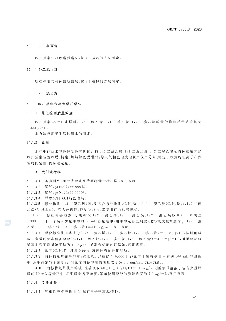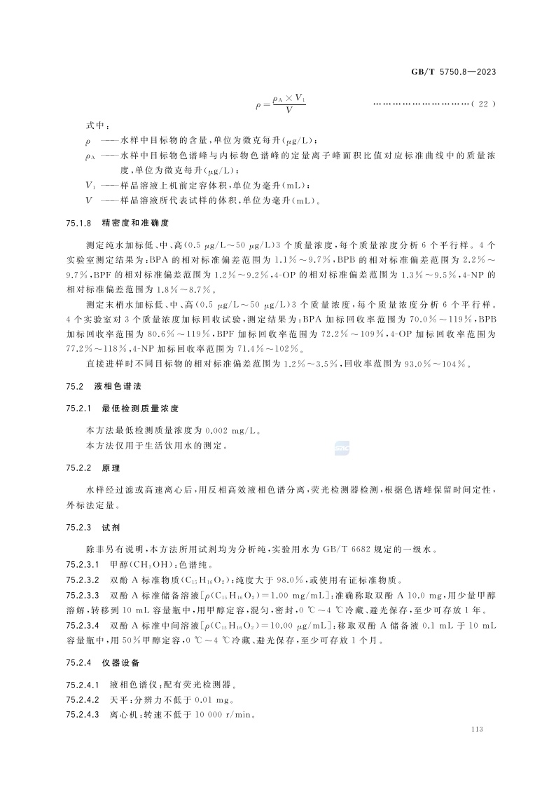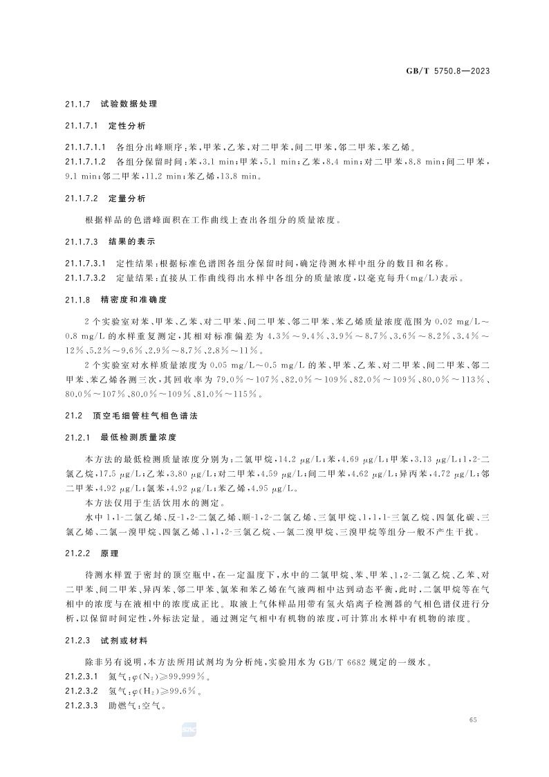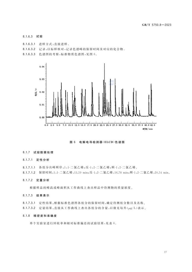 《生活饮用水标准检验方法 第8部分:有机物指标》(GB/T 5750.8-2023)