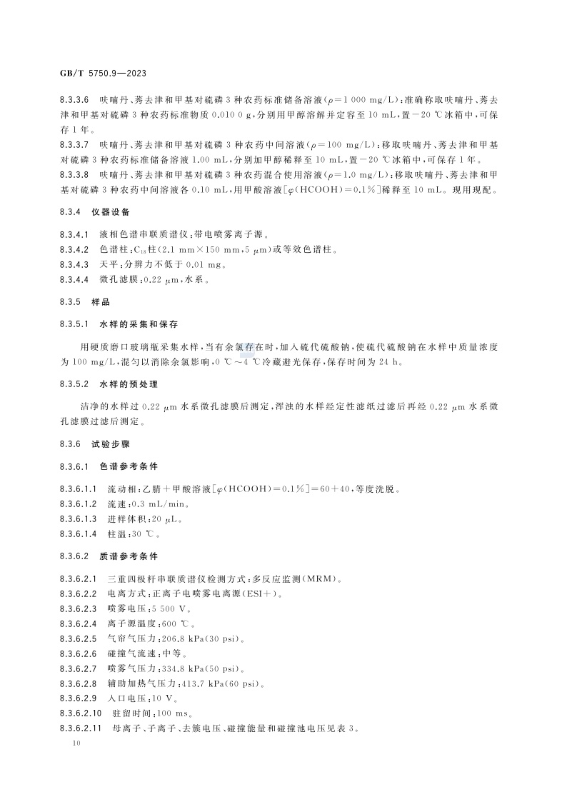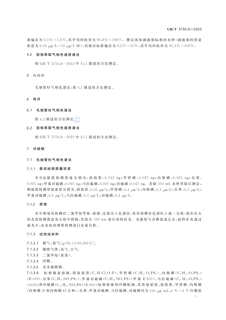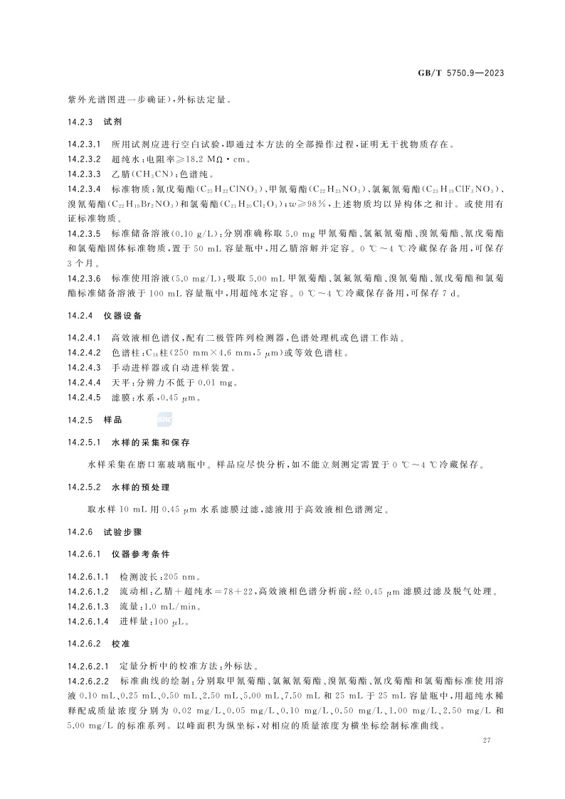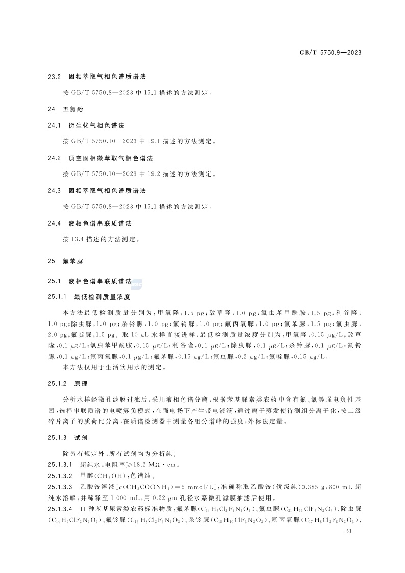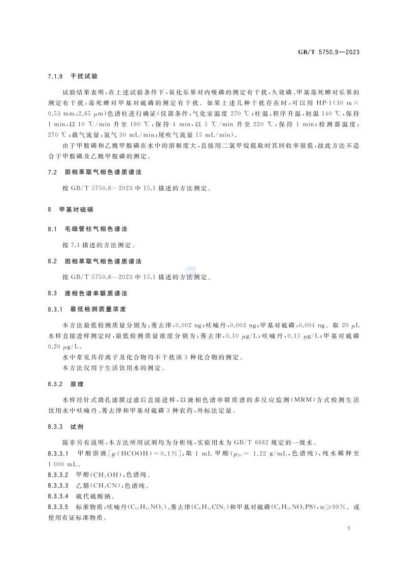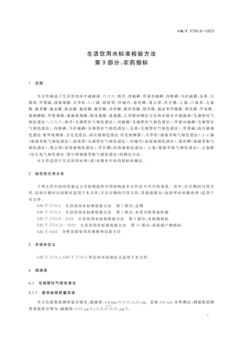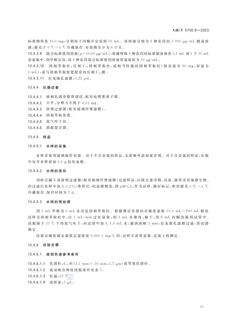 《生活饮用水标准检验方法 第9部分:农药指标》(GB/T 5750.9-2023)