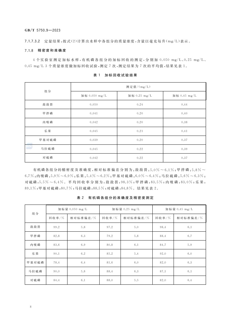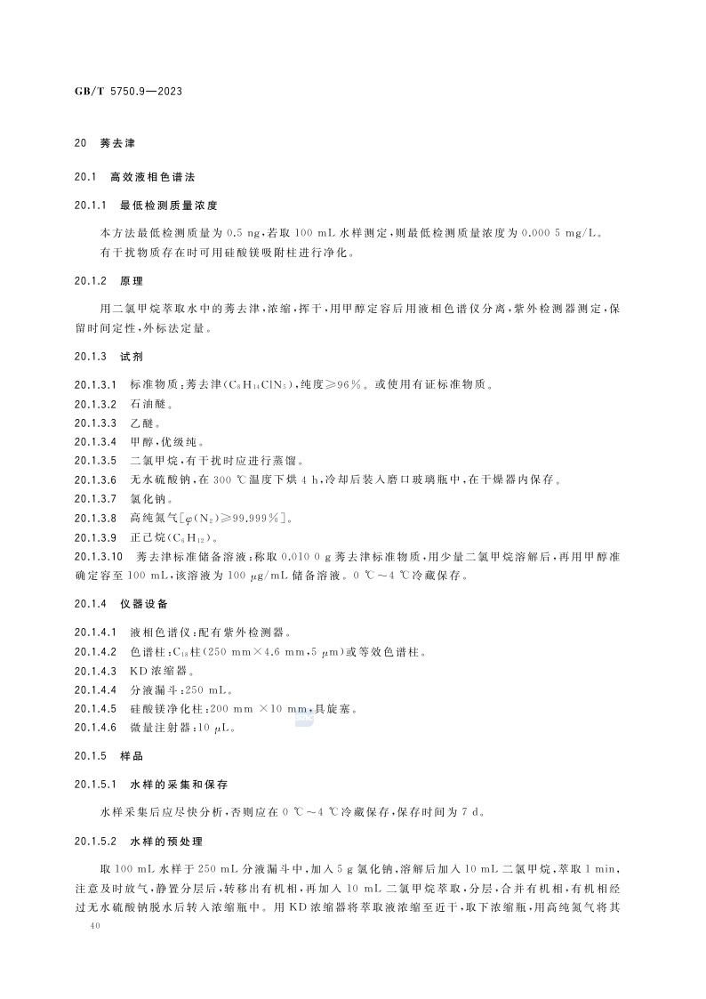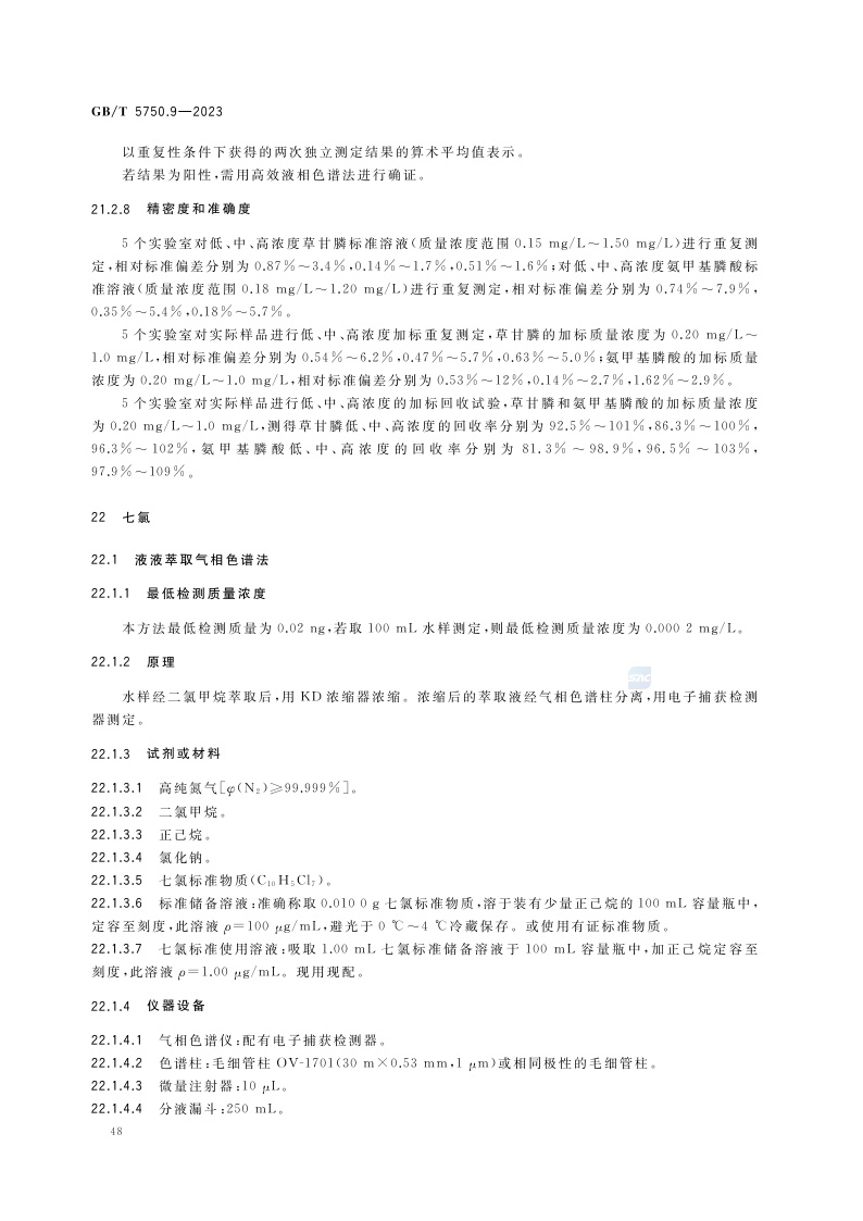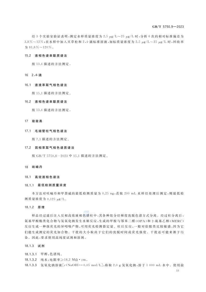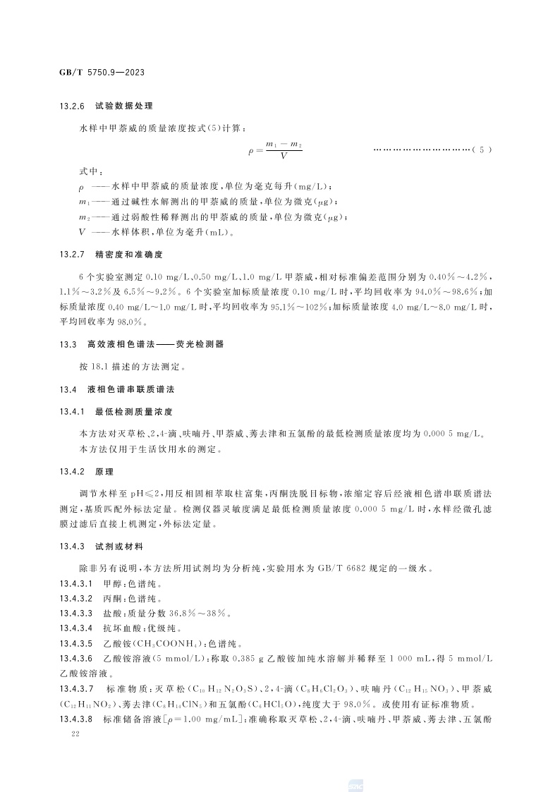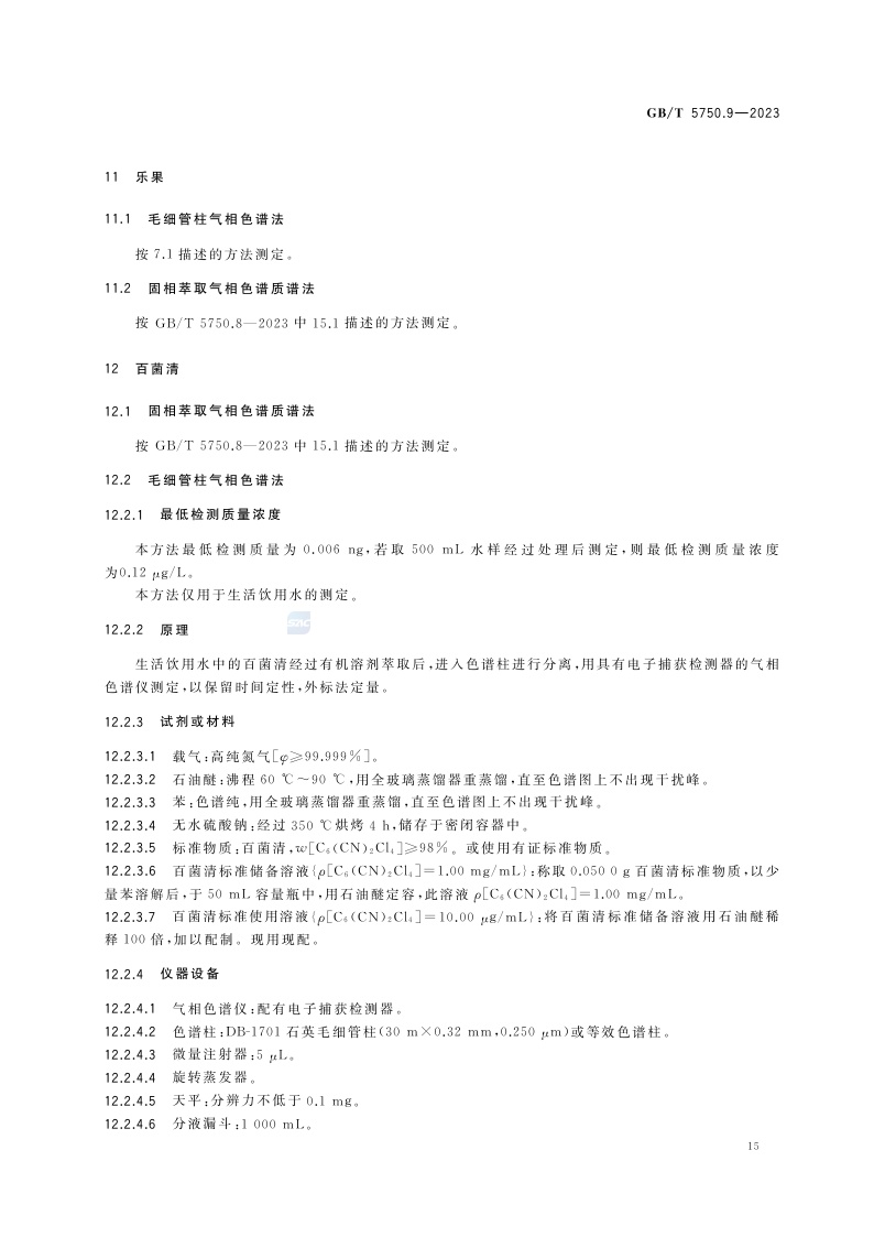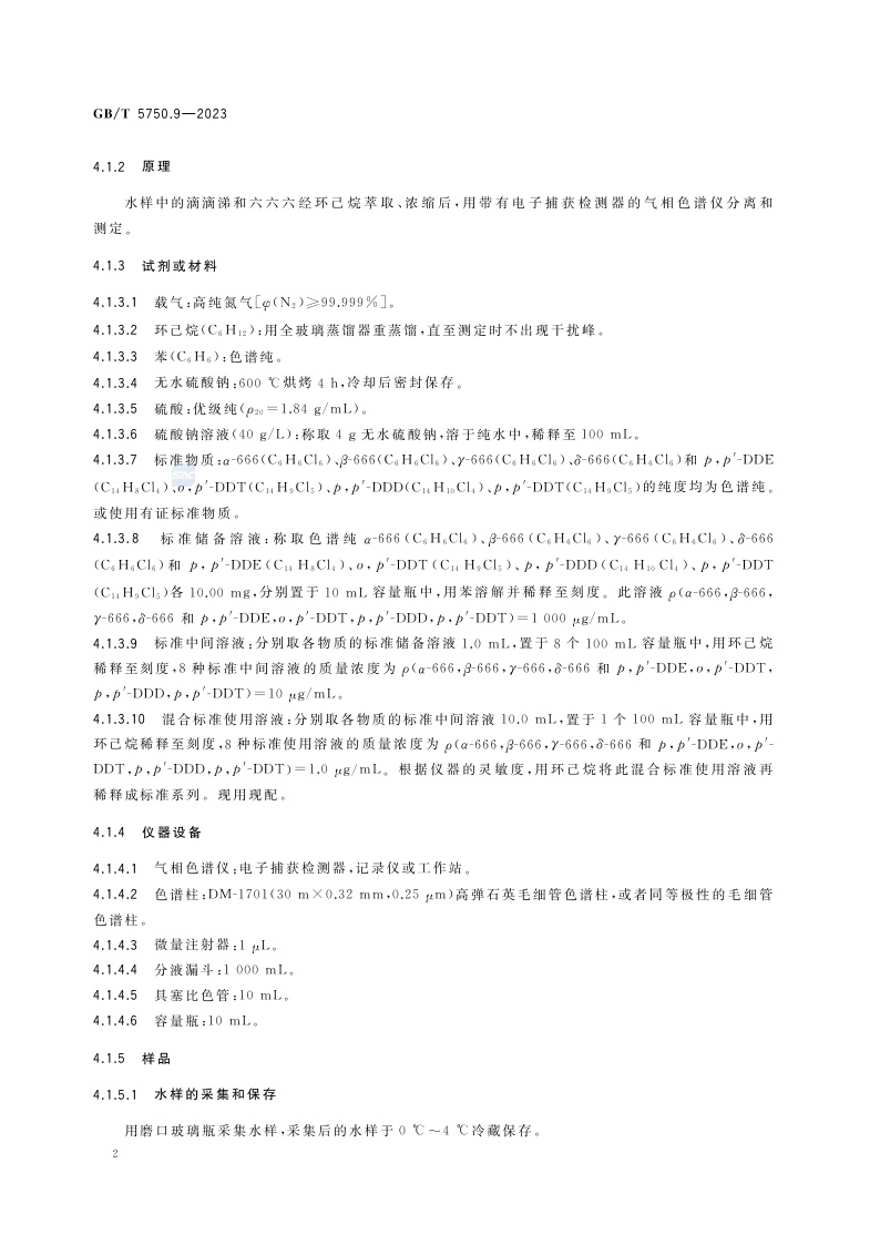 《生活饮用水标准检验方法 第9部分:农药指标》(GB/T 5750.9-2023)