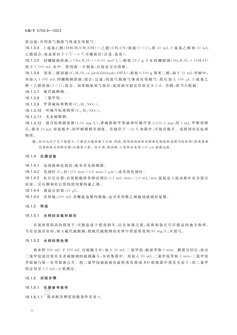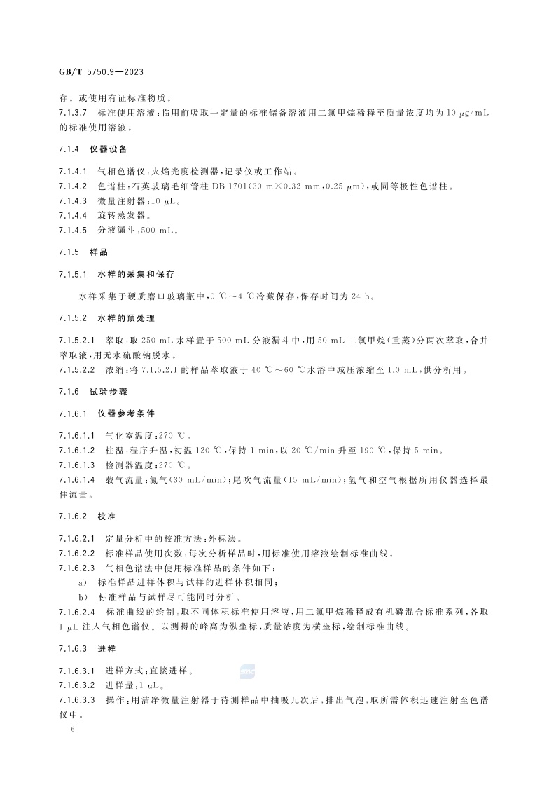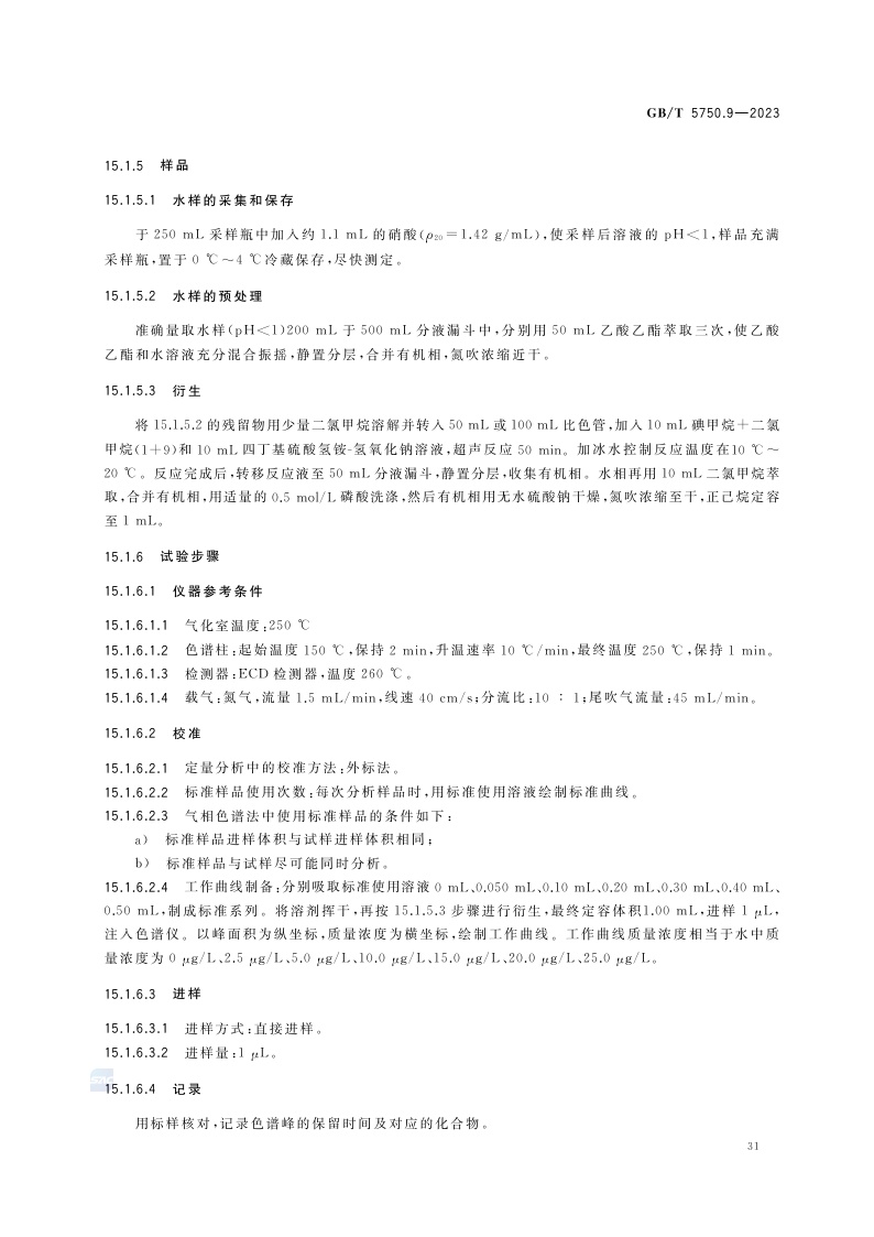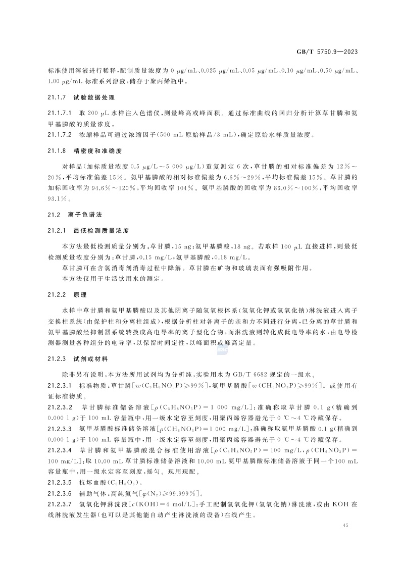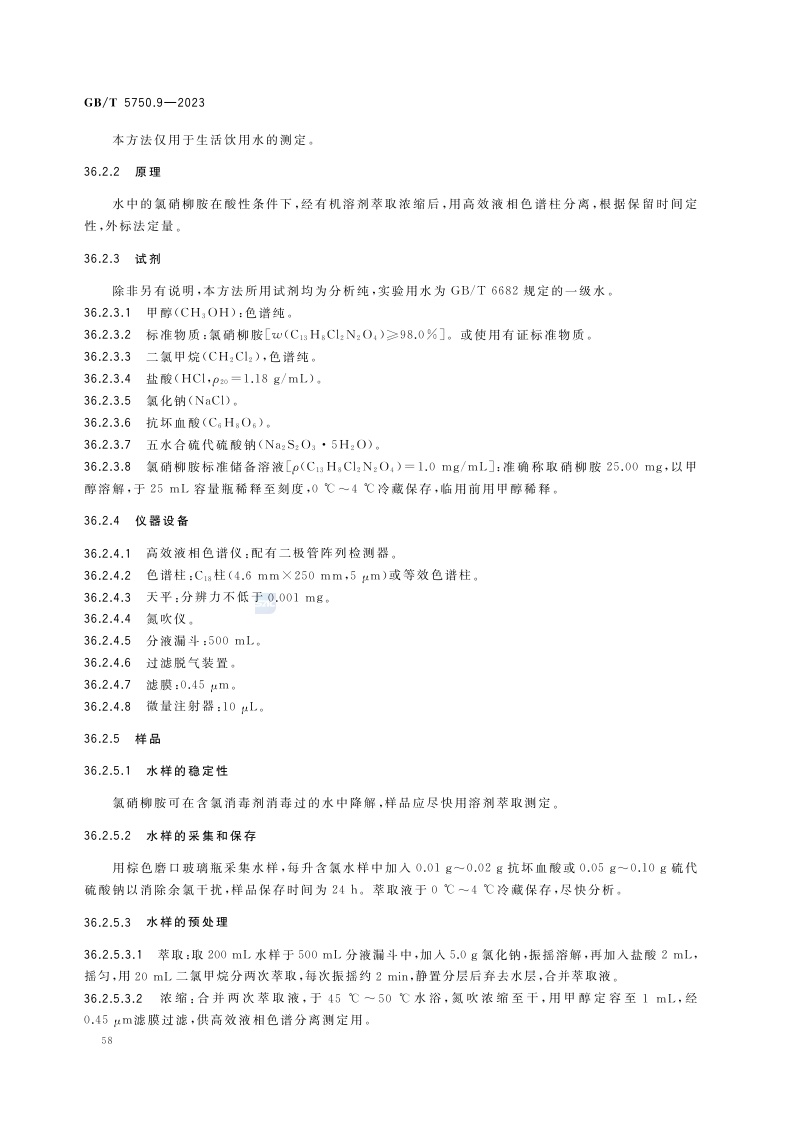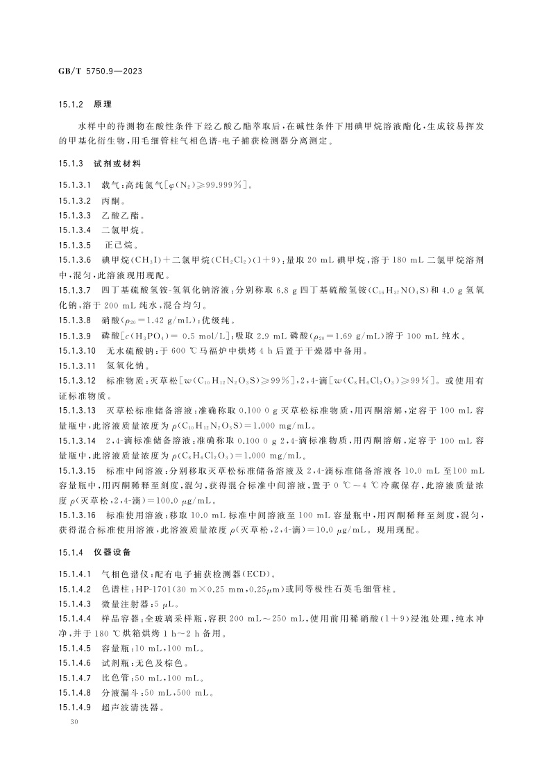 《生活饮用水标准检验方法 第9部分:农药指标》(GB/T 5750.9-2023)