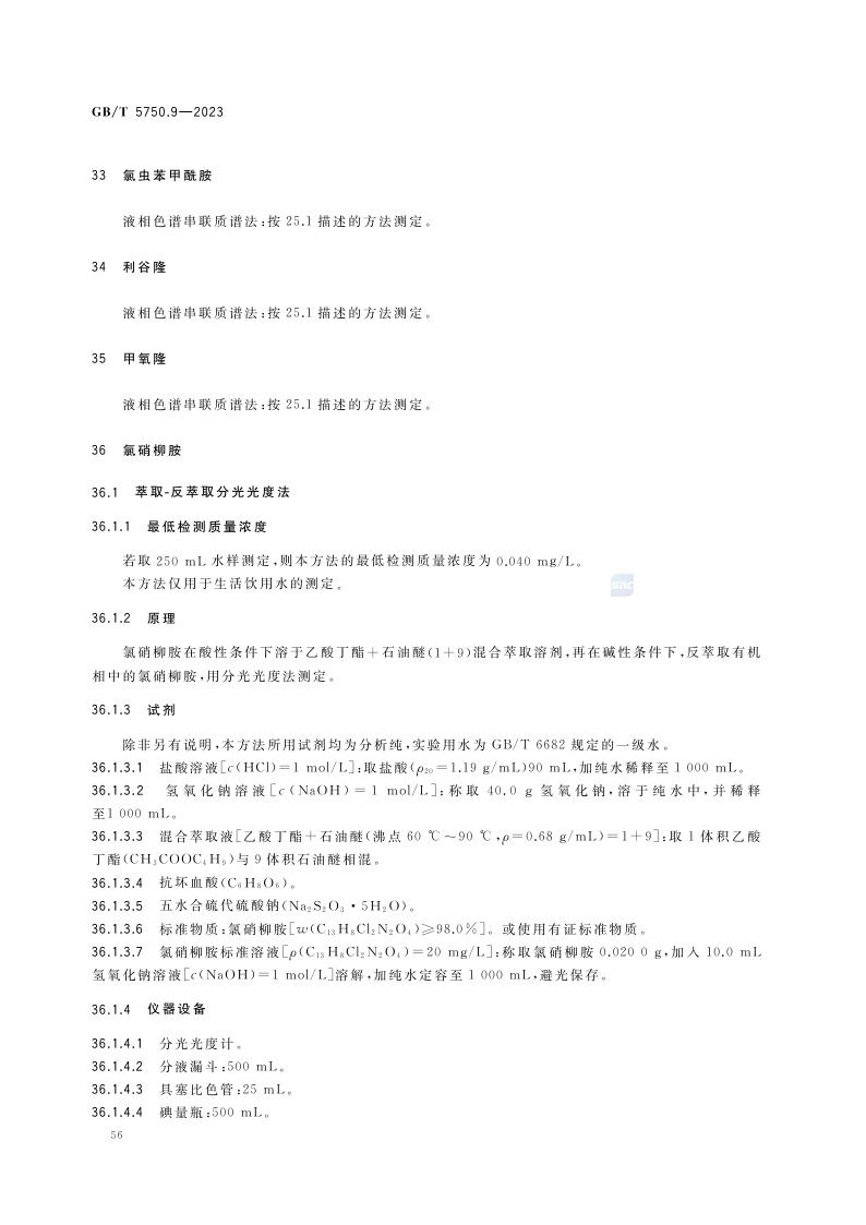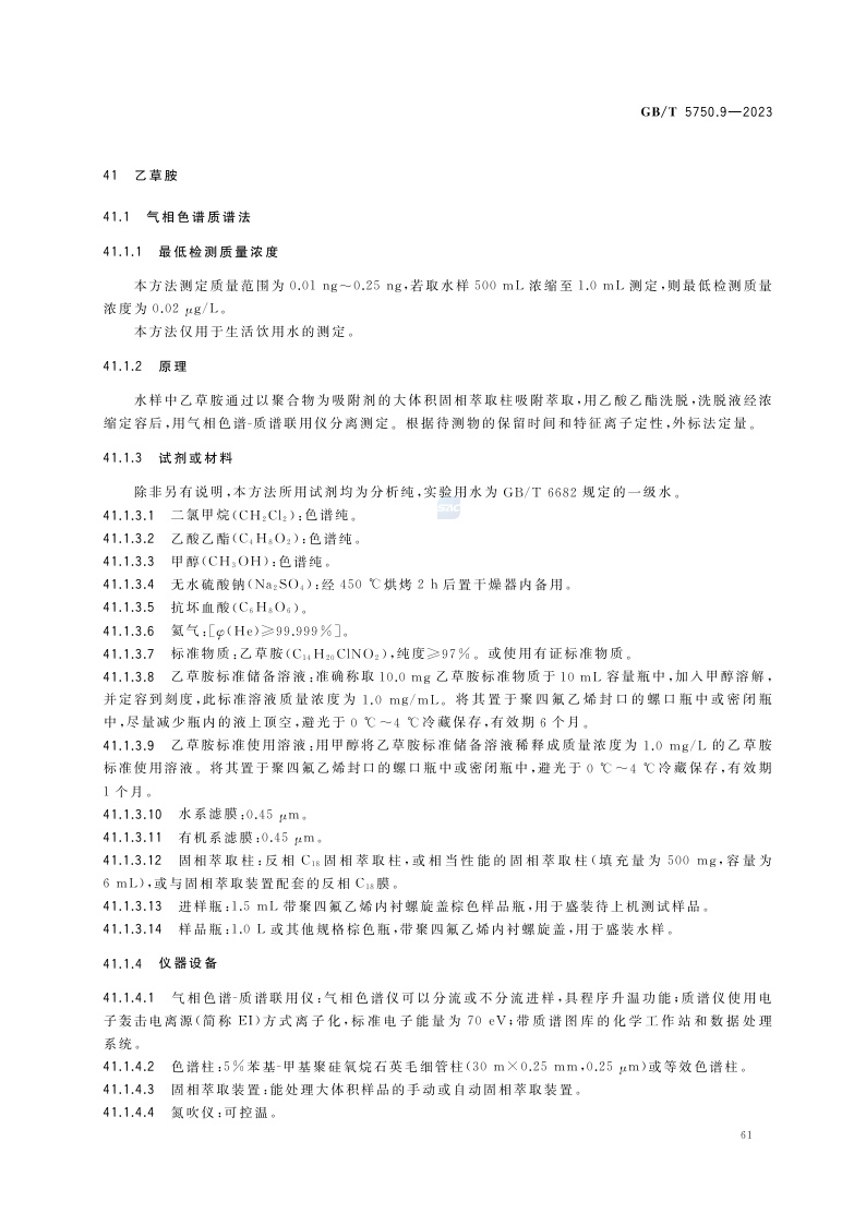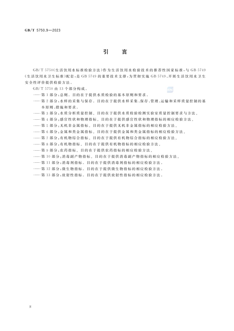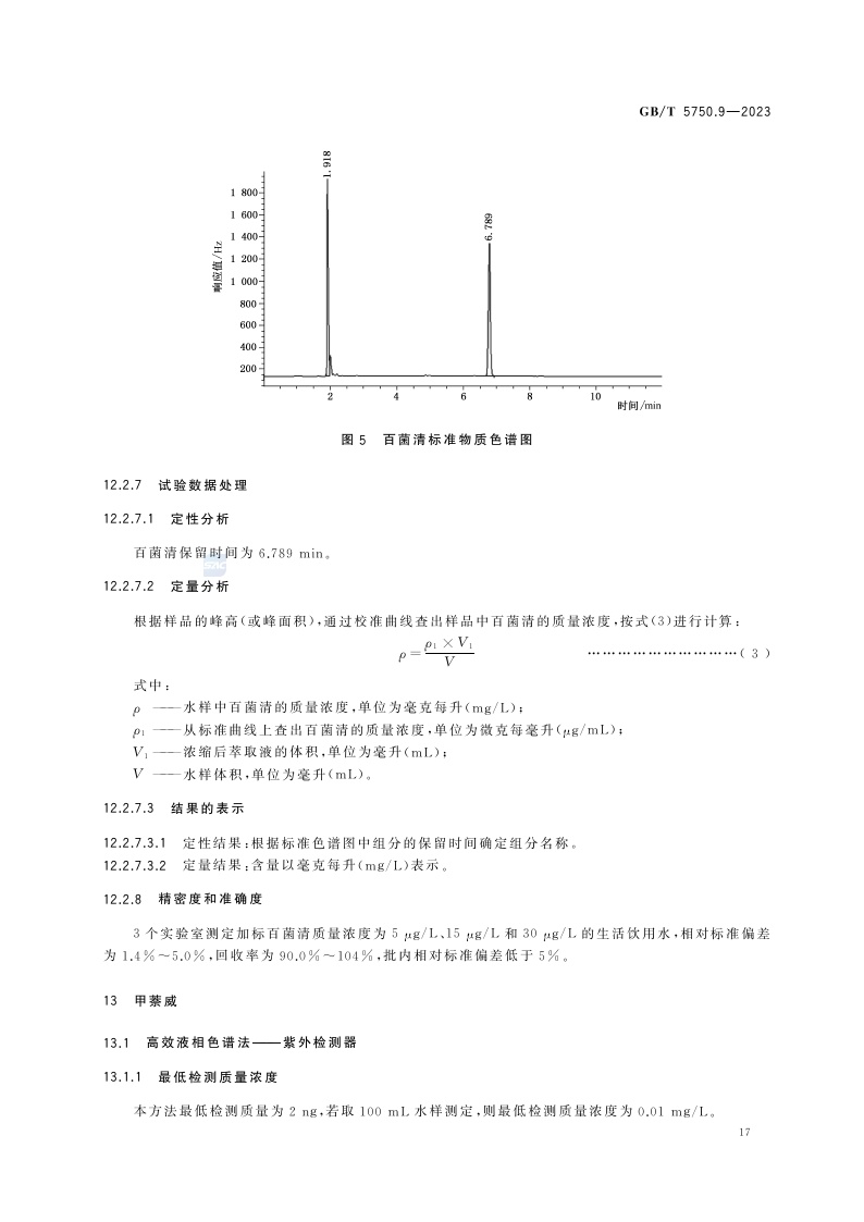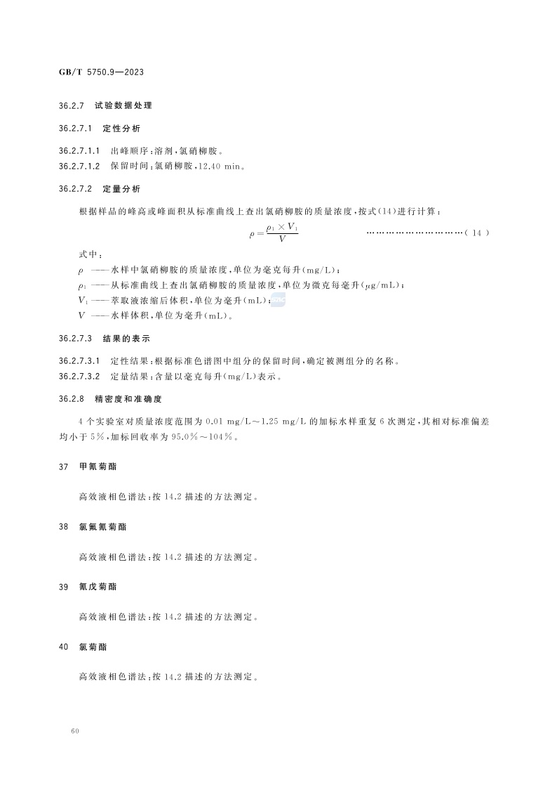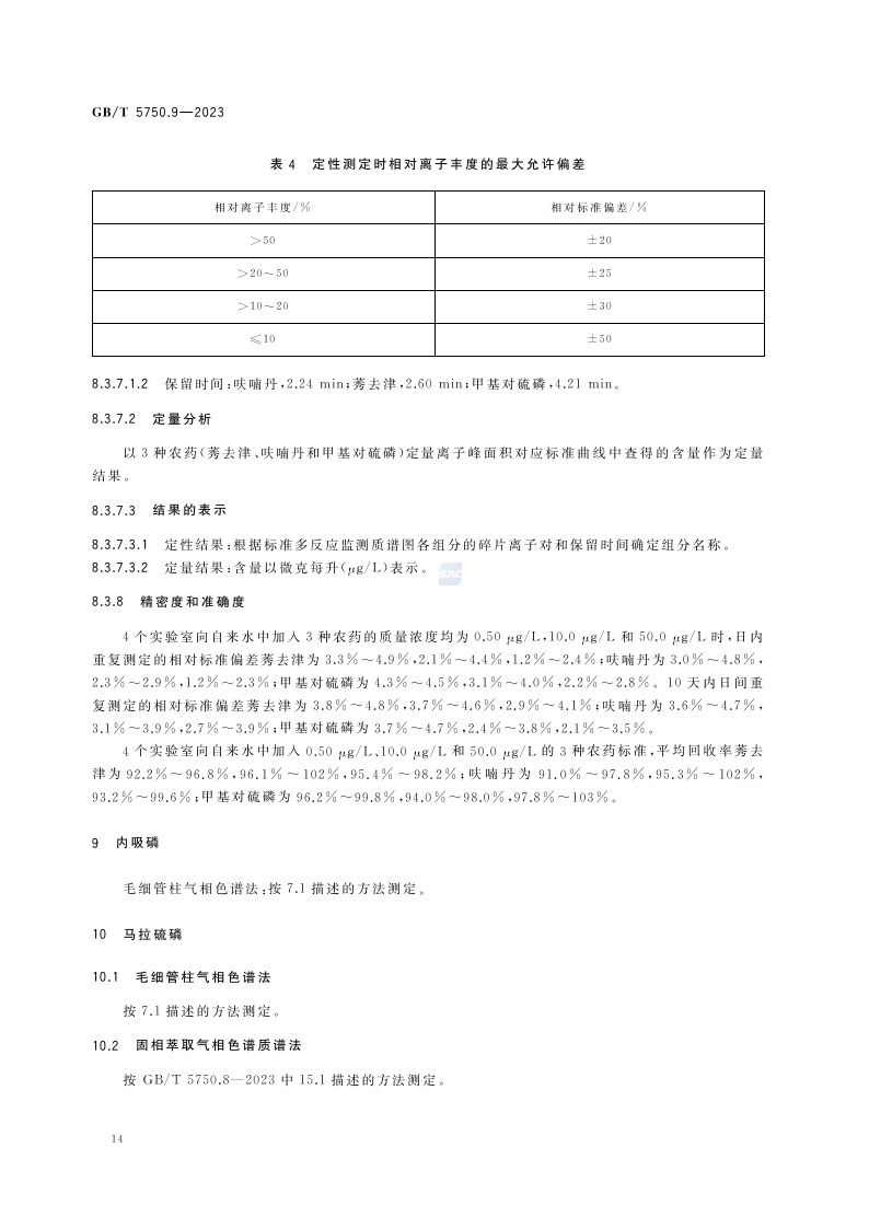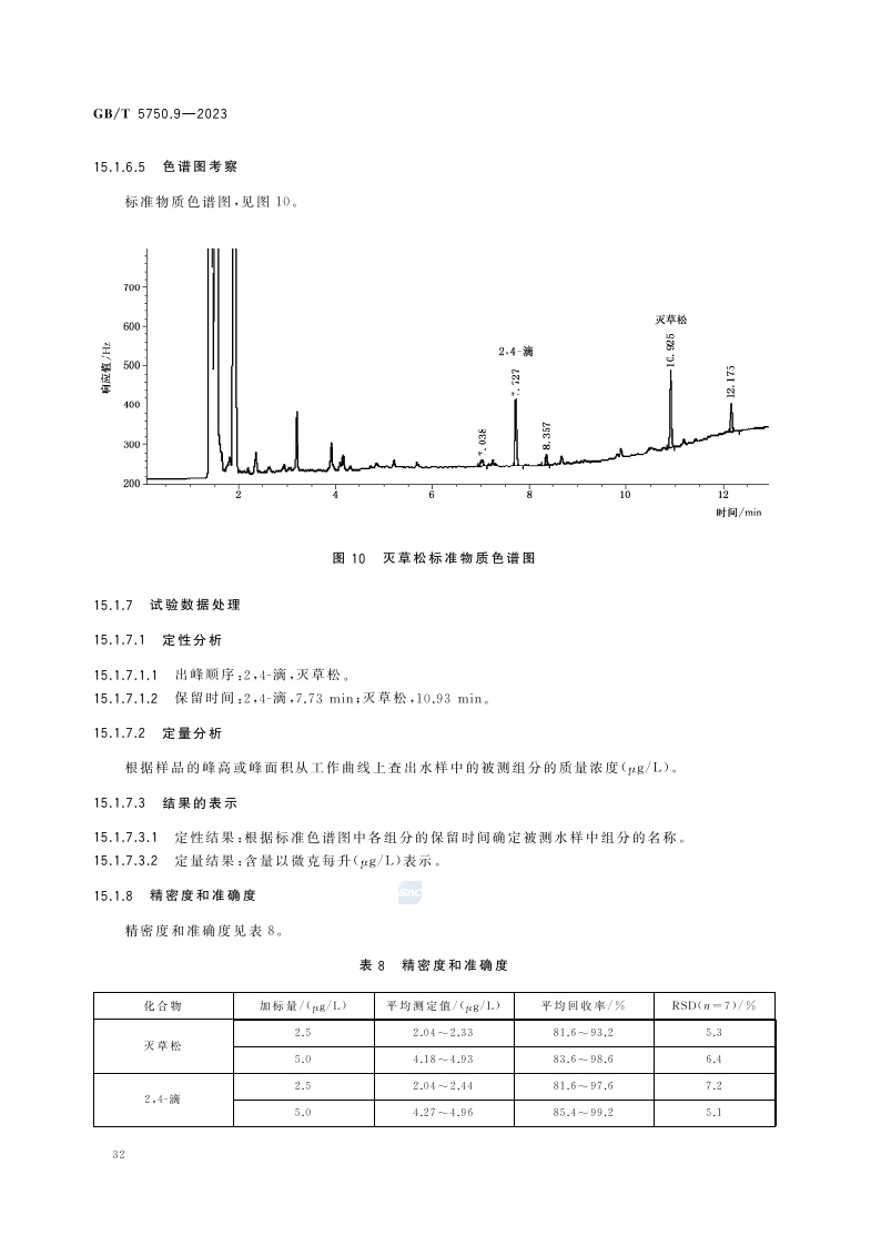 《生活饮用水标准检验方法 第9部分:农药指标》(GB/T 5750.9-2023)