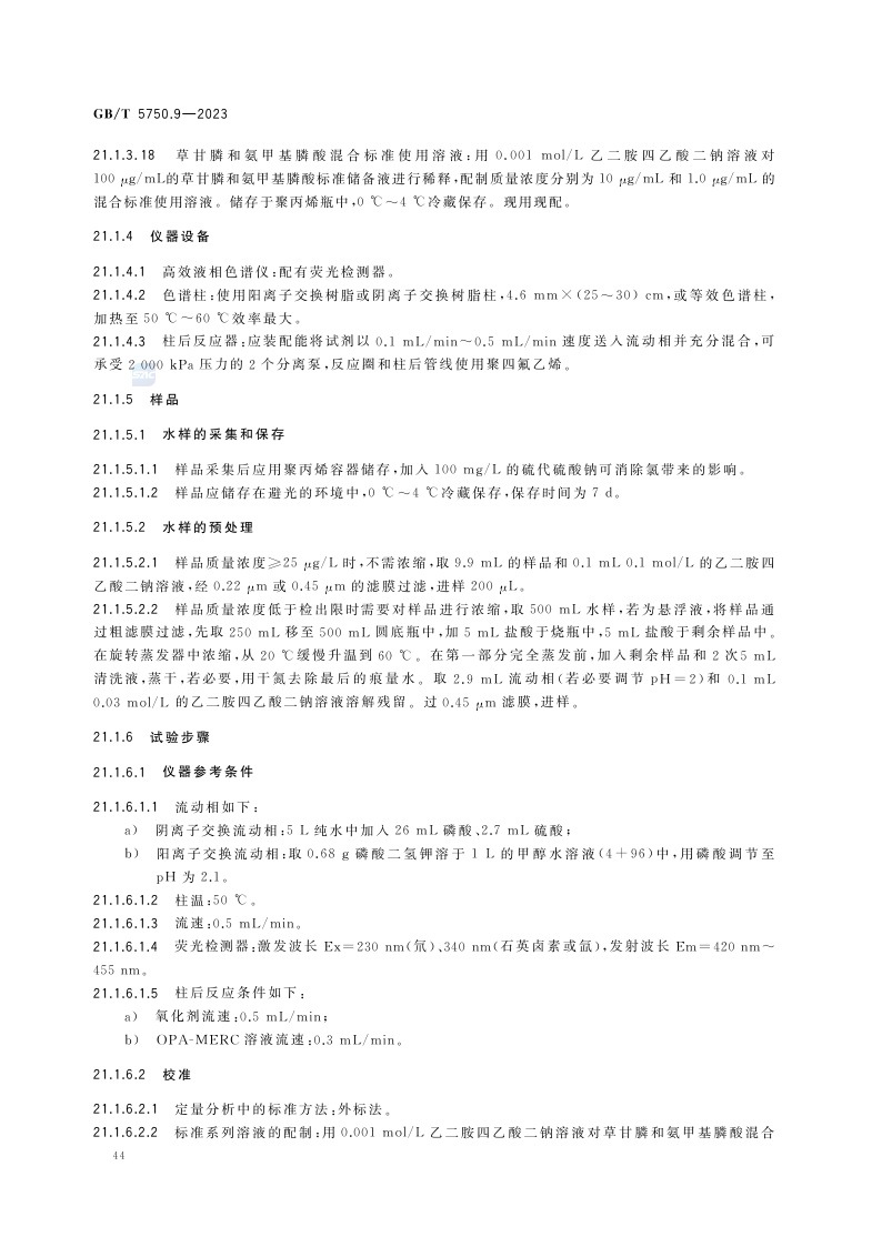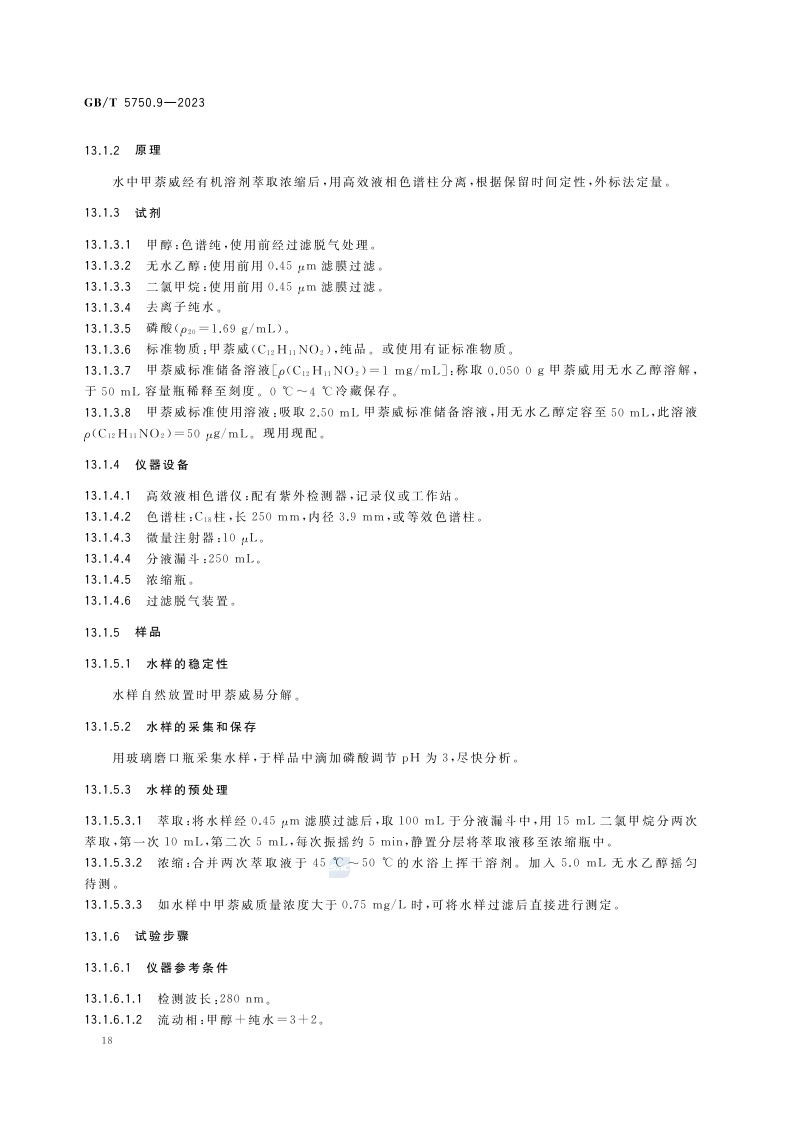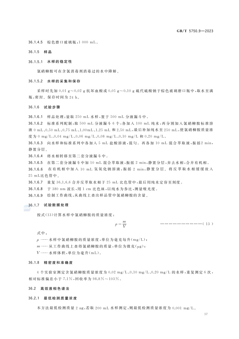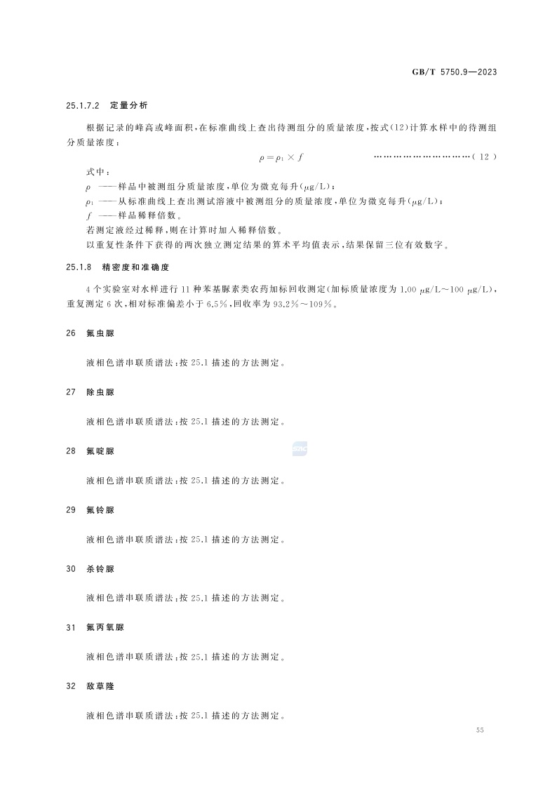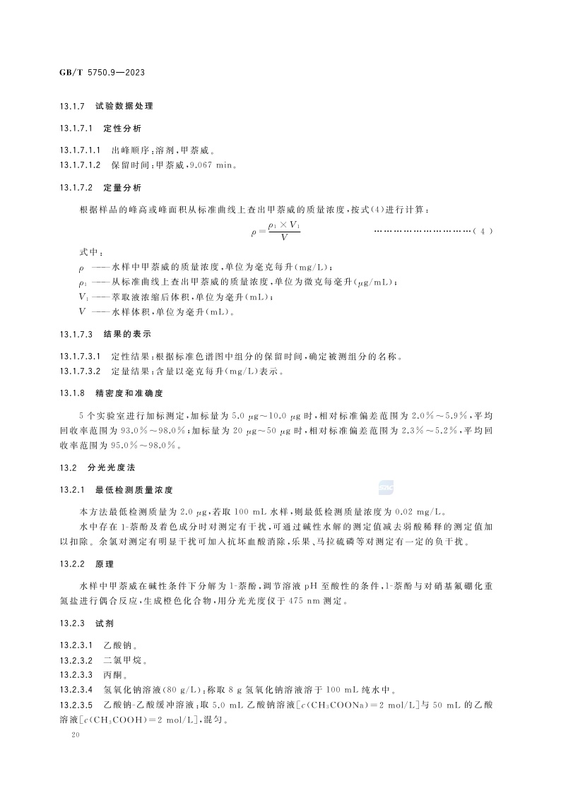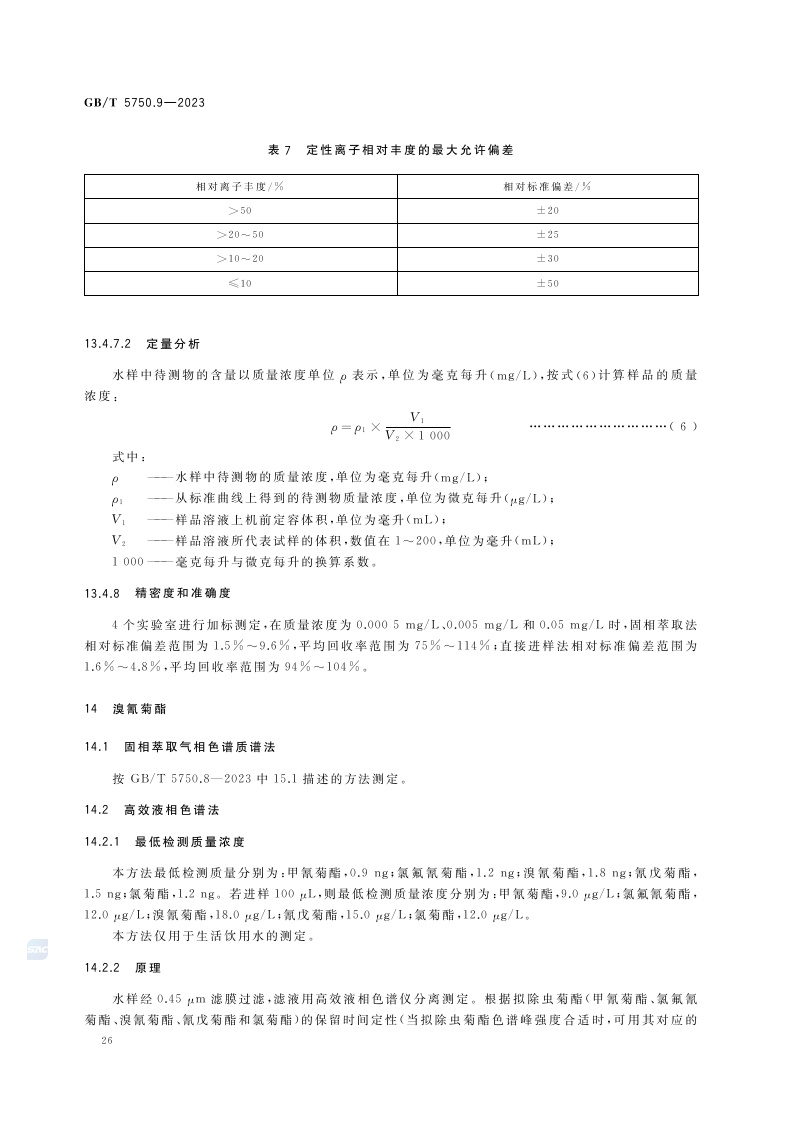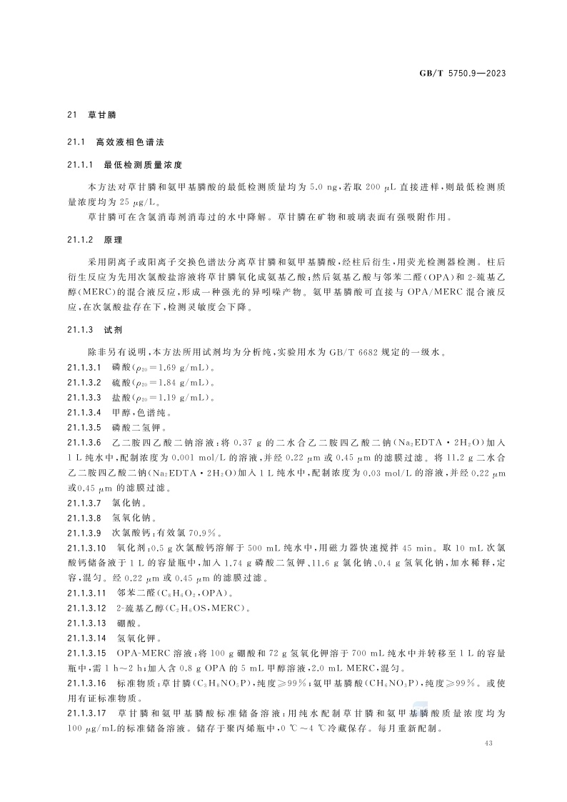 《生活饮用水标准检验方法 第9部分:农药指标》(GB/T 5750.9-2023)