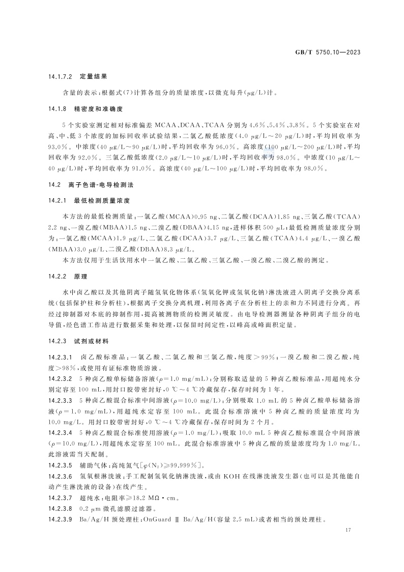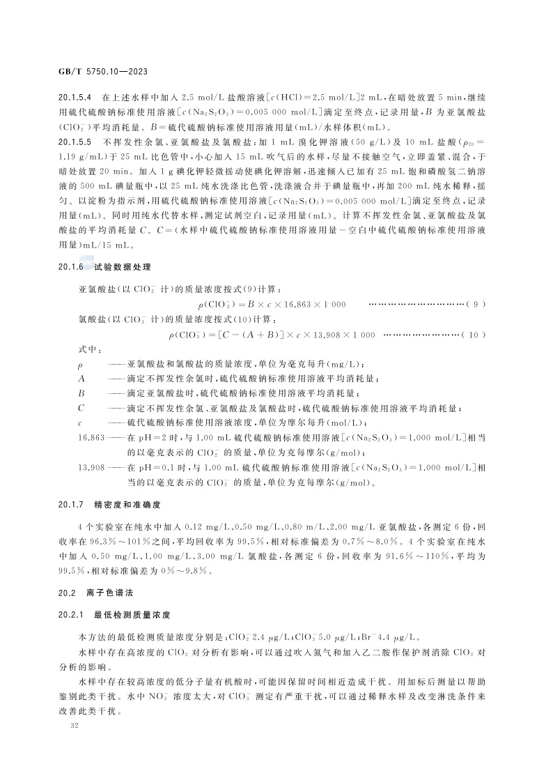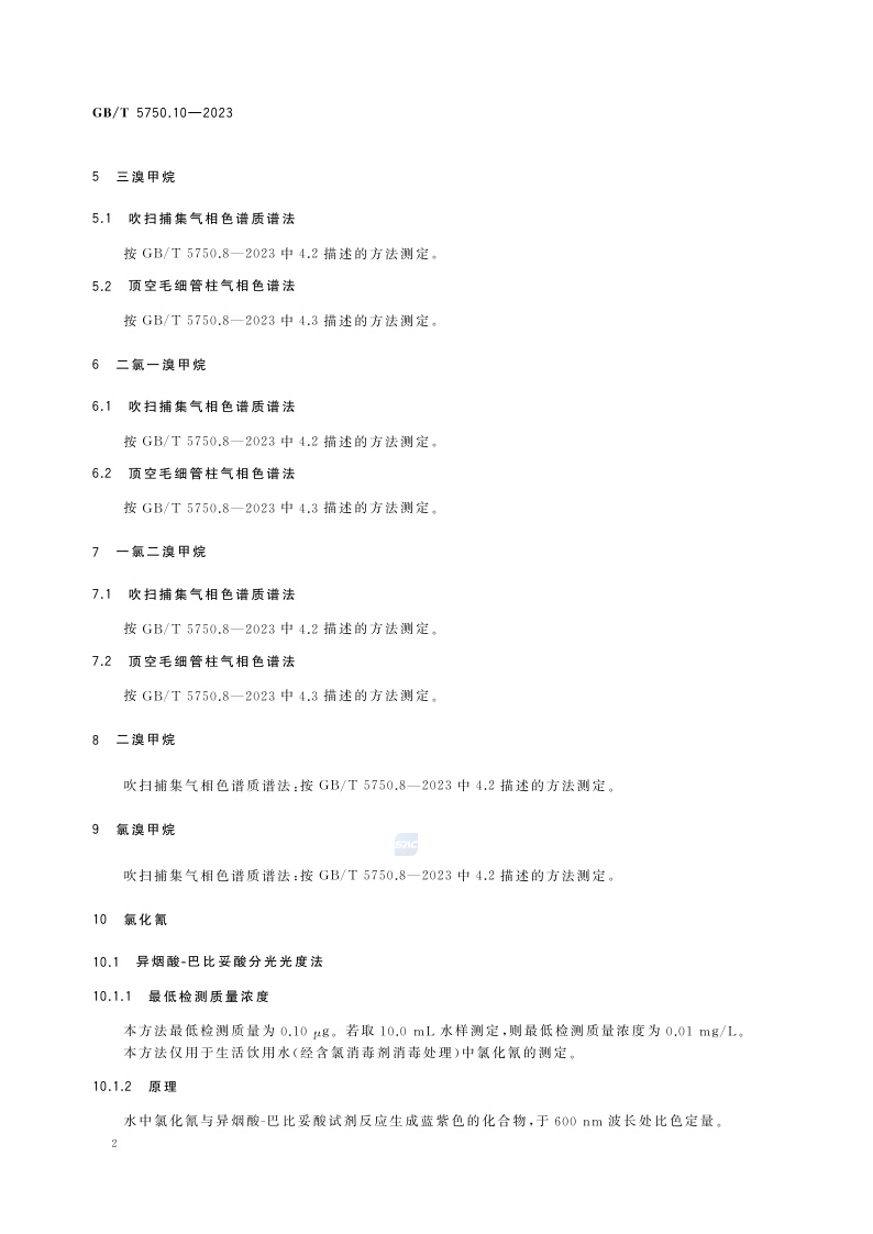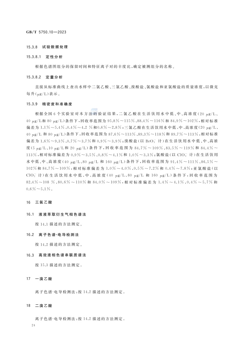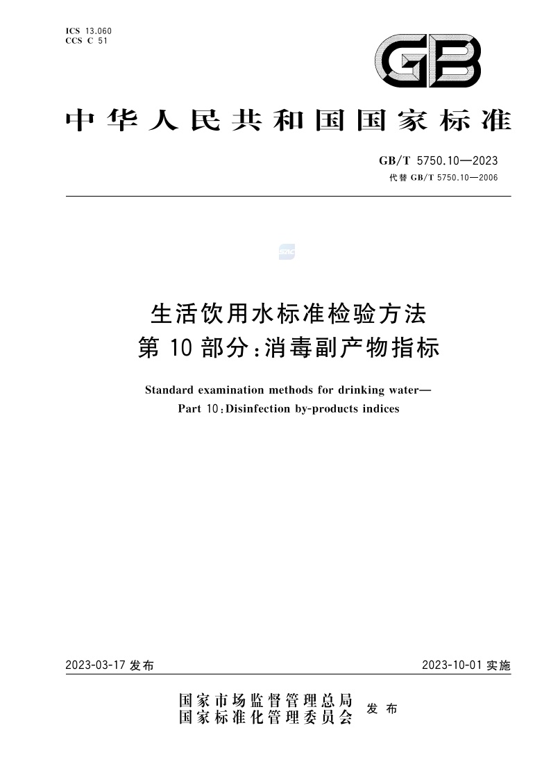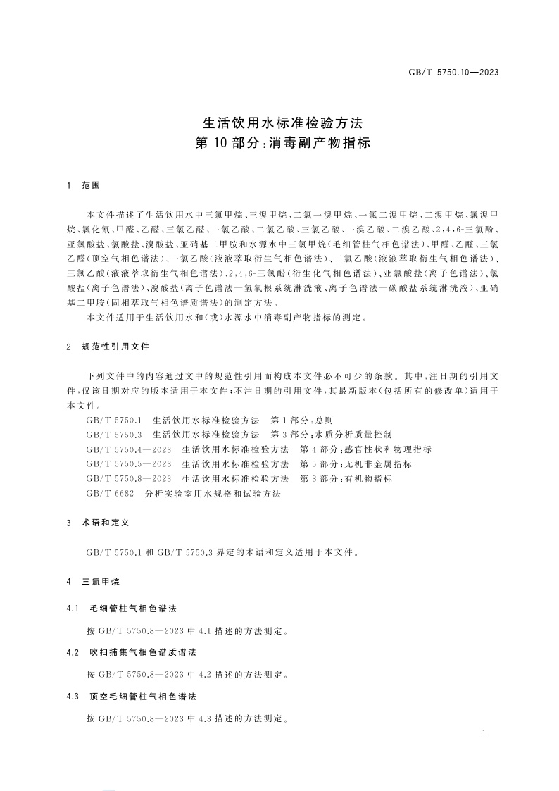 《生活饮用水标准检验方法 第10部分:消毒副产物指标》(GB/T 5750.10-2023)