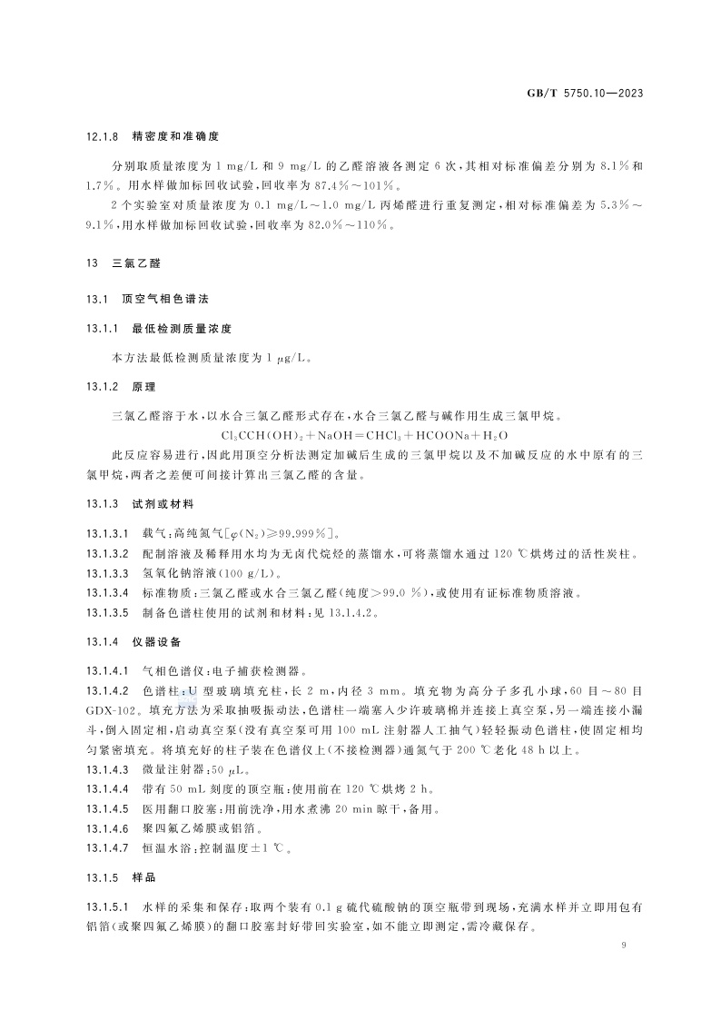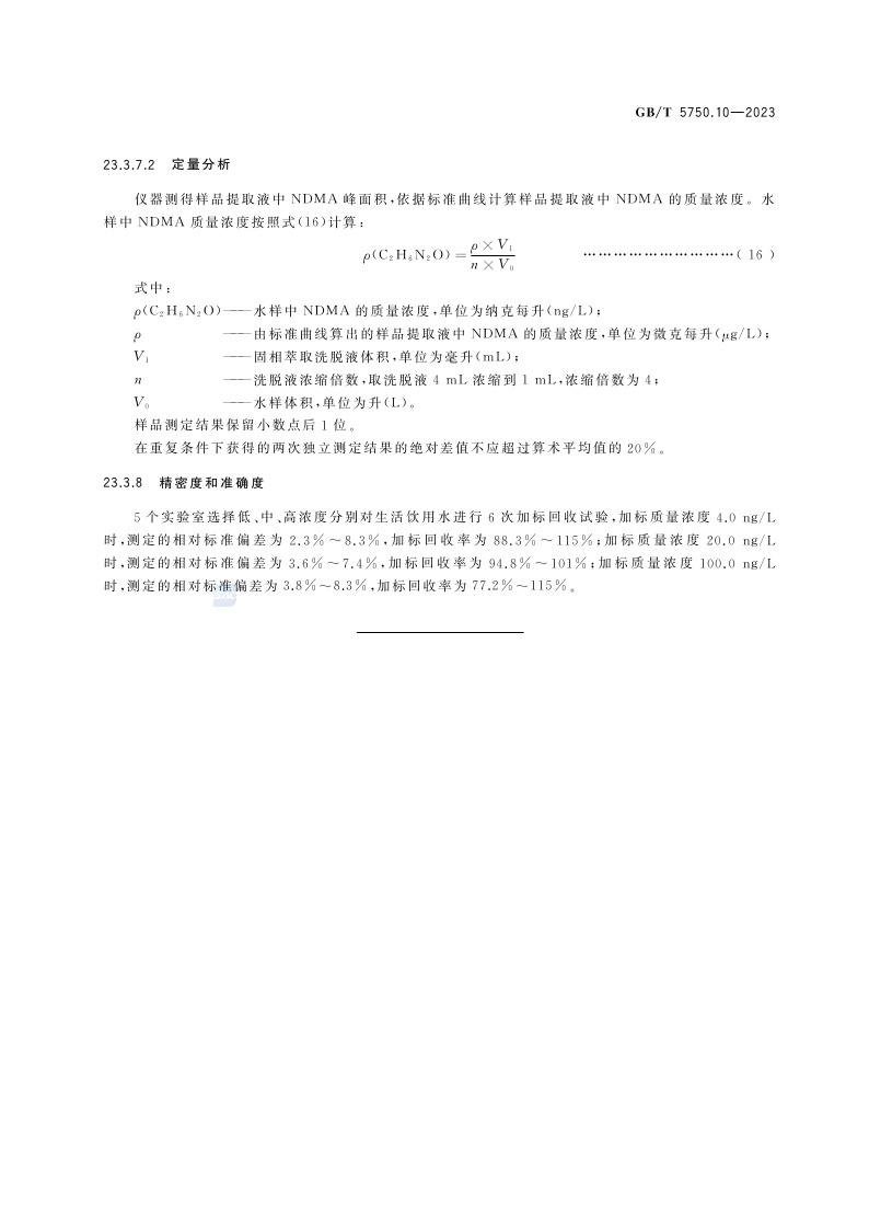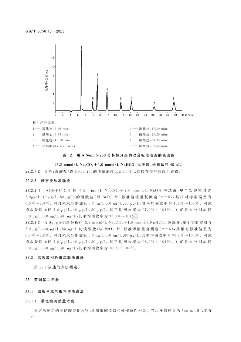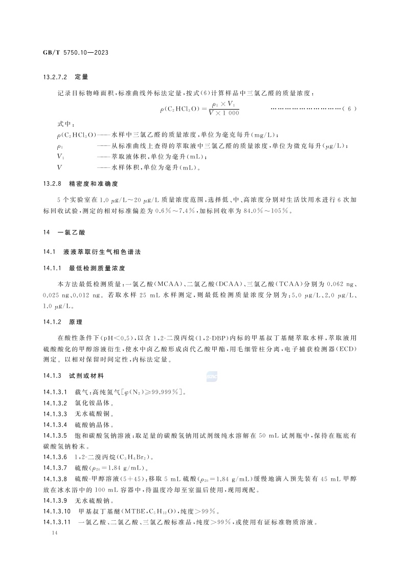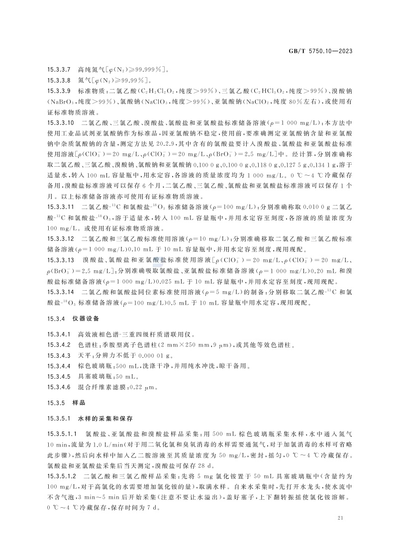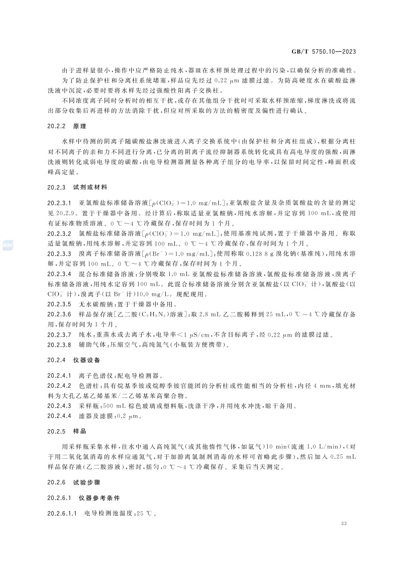 《生活饮用水标准检验方法 第10部分:消毒副产物指标》(GB/T 5750.10-2023)