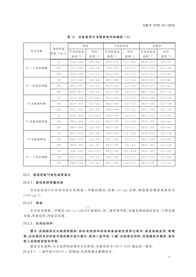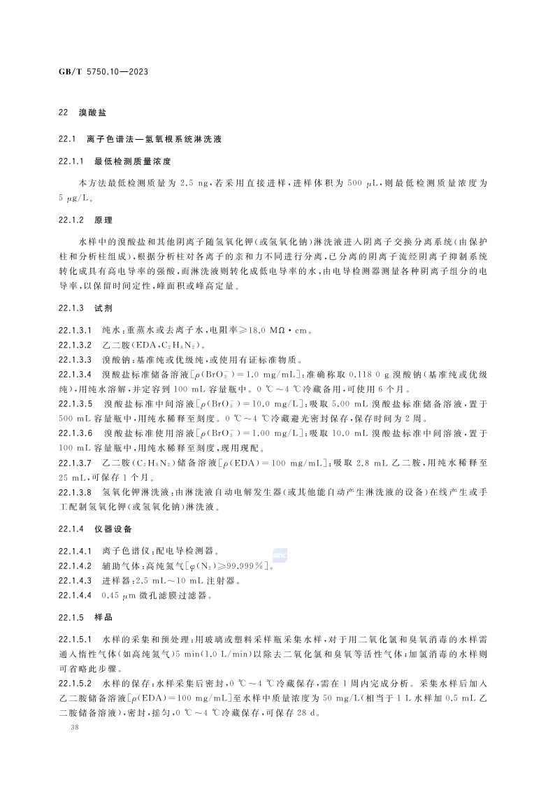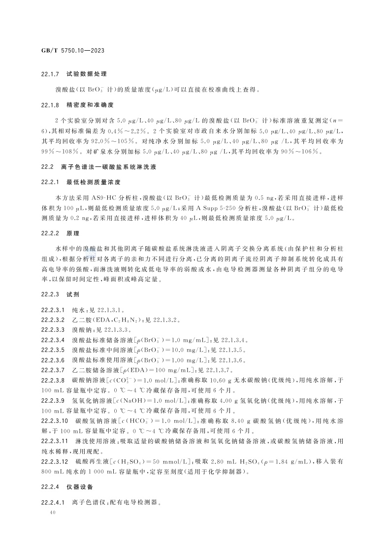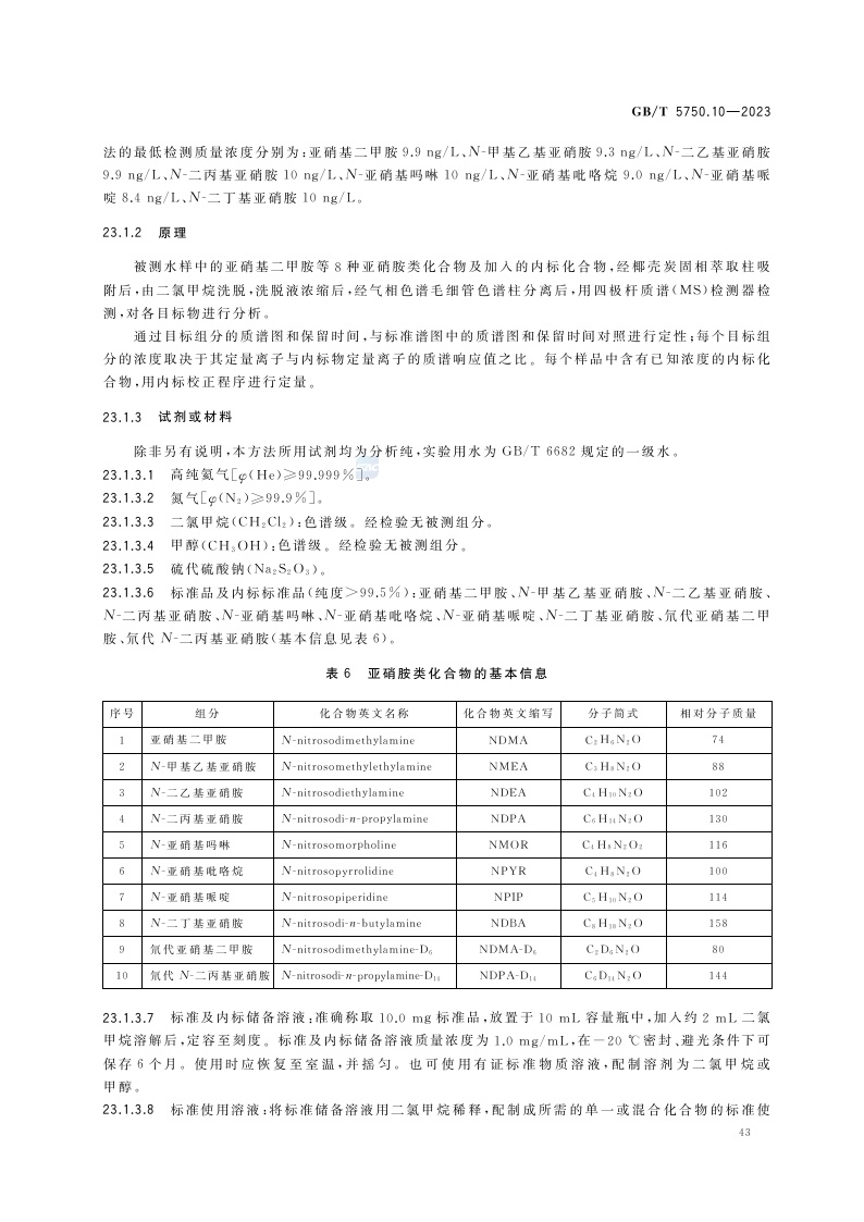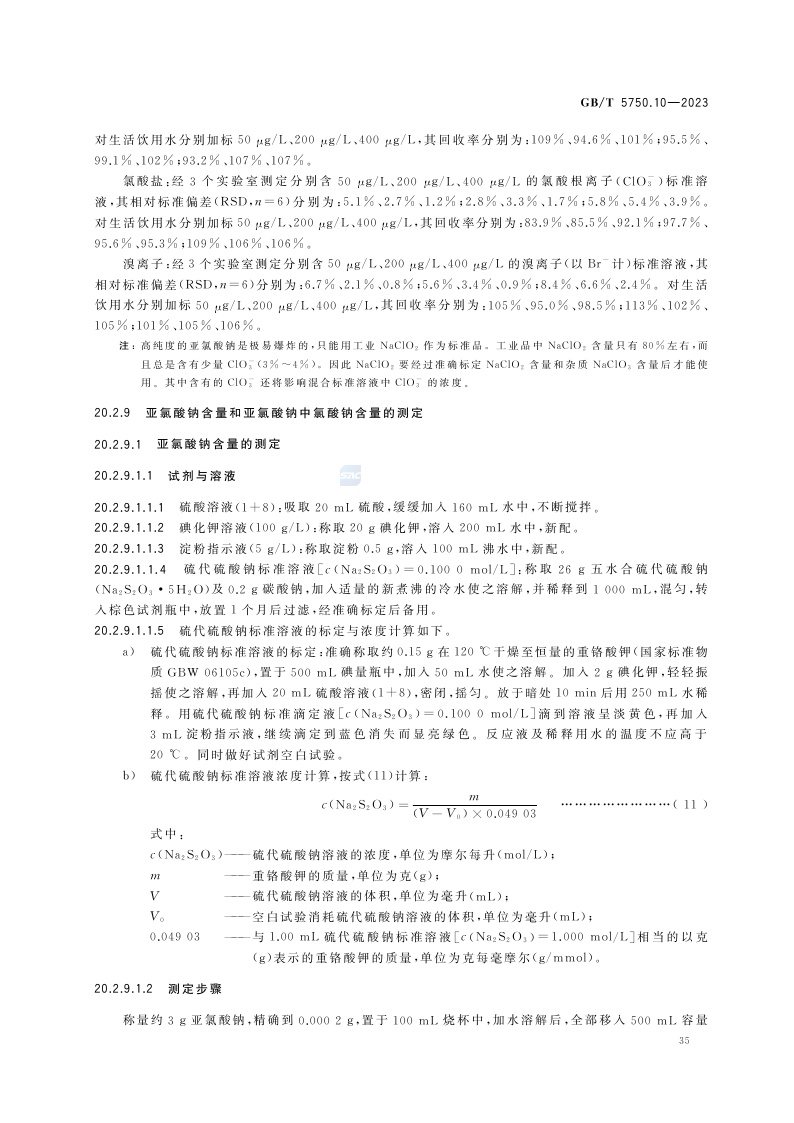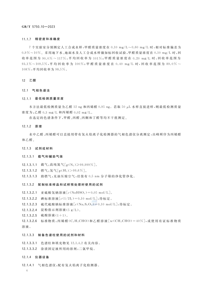 《生活饮用水标准检验方法 第10部分:消毒副产物指标》(GB/T 5750.10-2023)