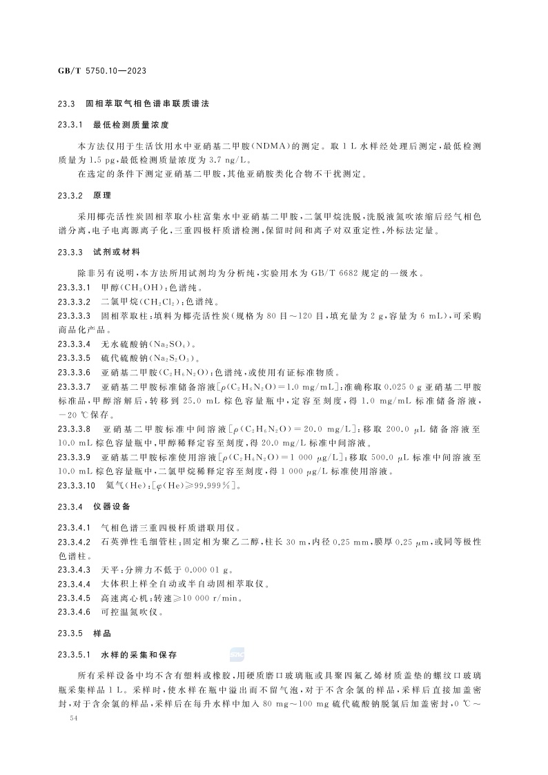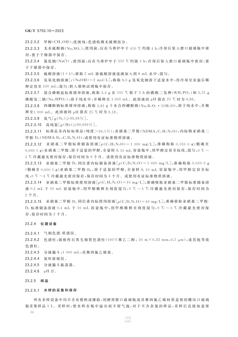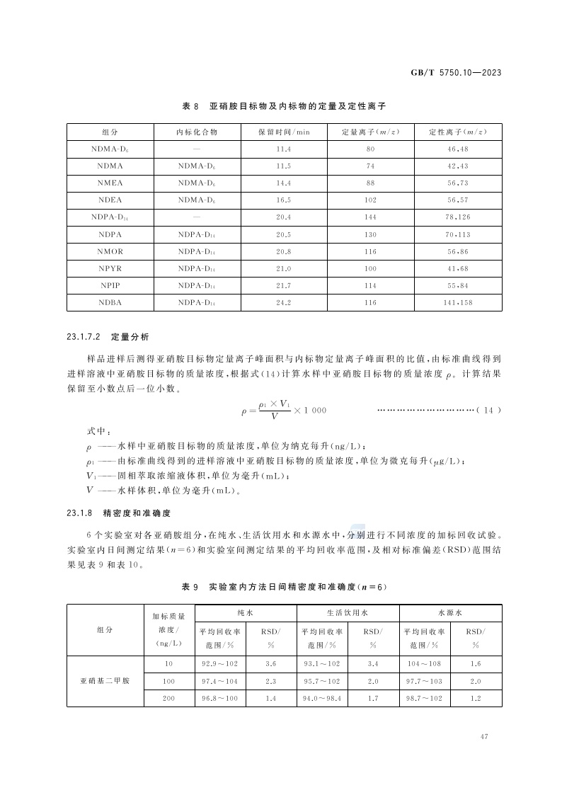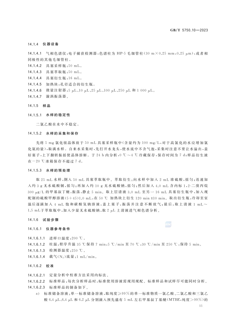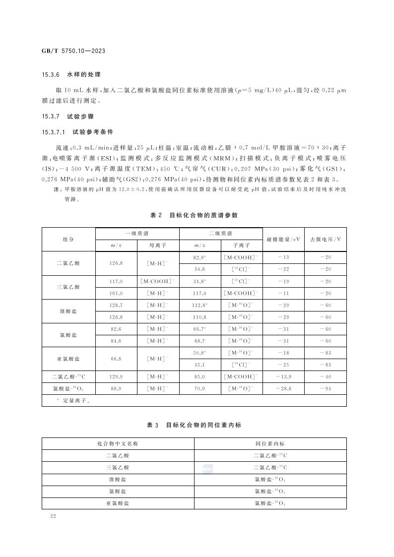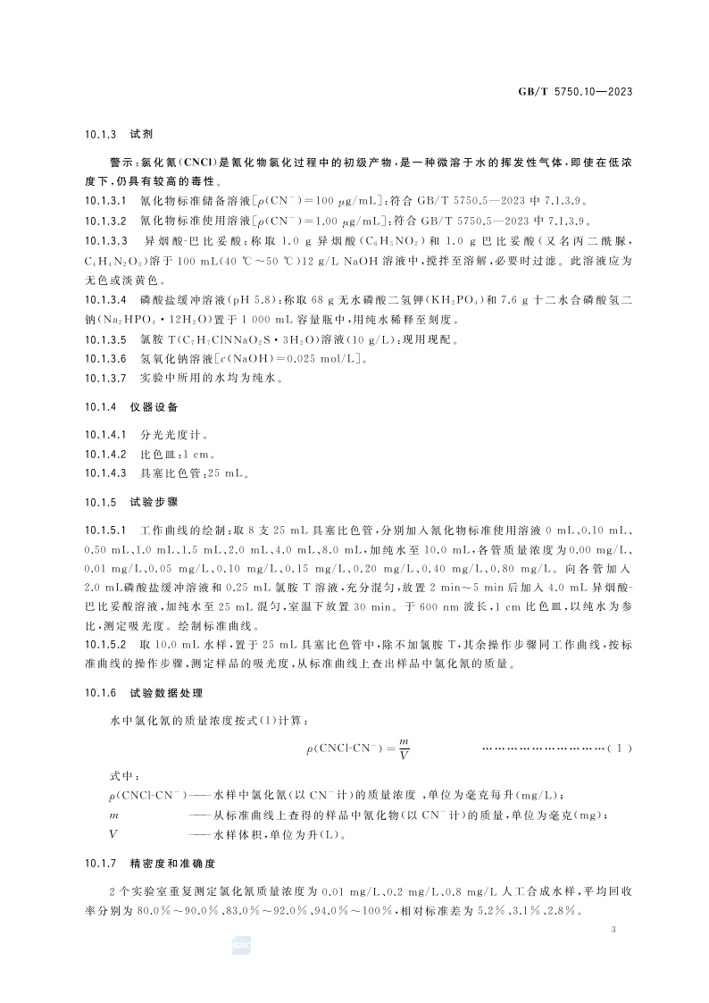 《生活饮用水标准检验方法 第10部分:消毒副产物指标》(GB/T 5750.10-2023)