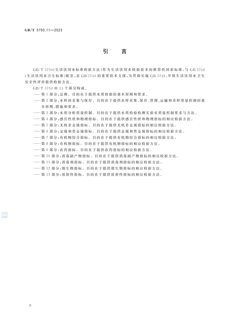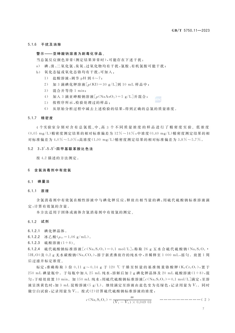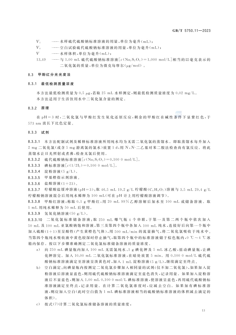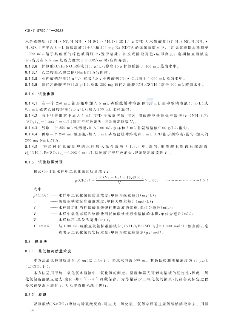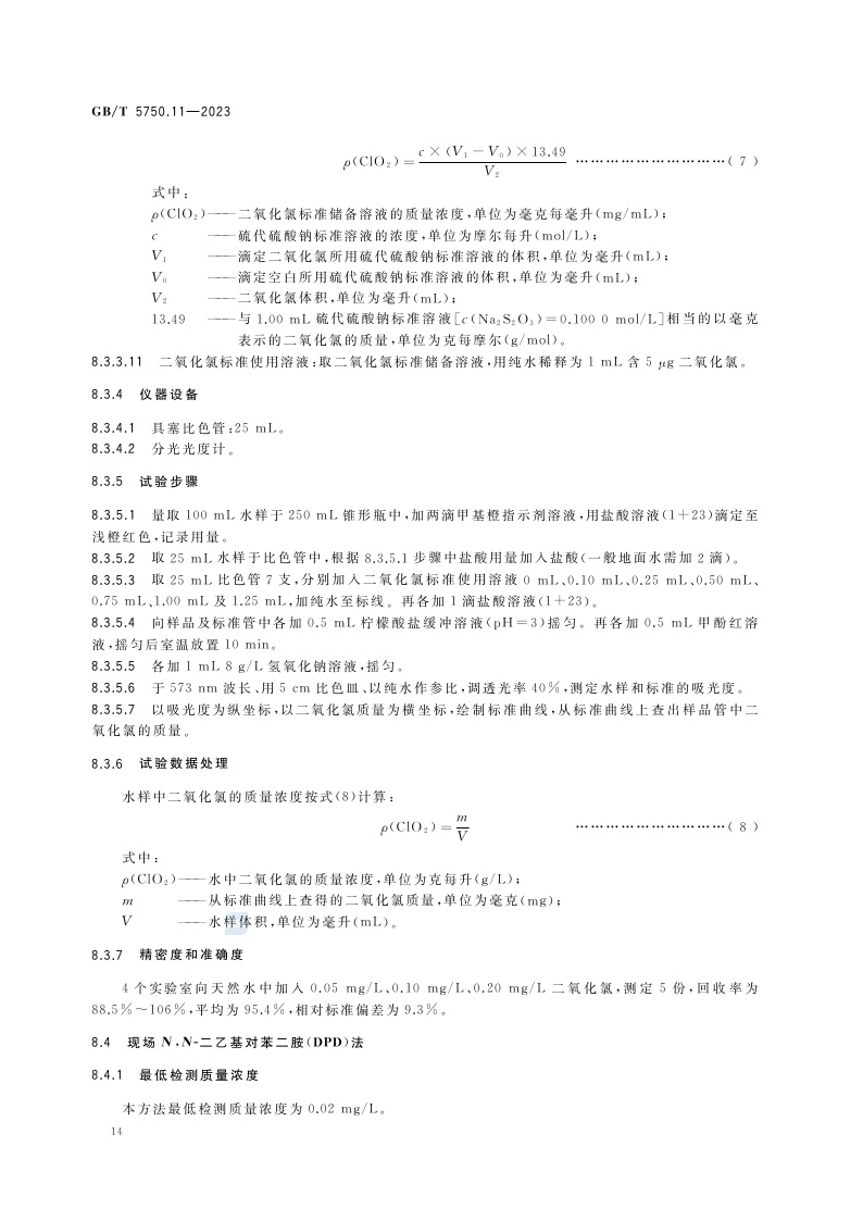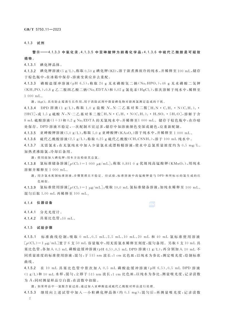 《生活饮用水标准检验方法 第11部分:消毒剂指标》(GB/T 5750.11-2023)