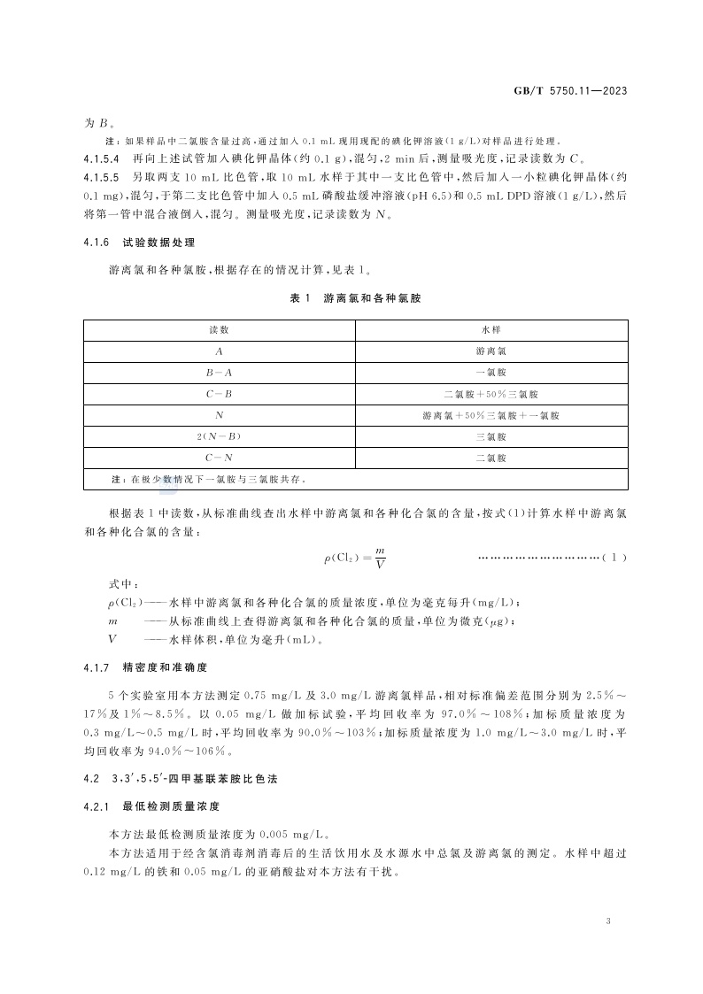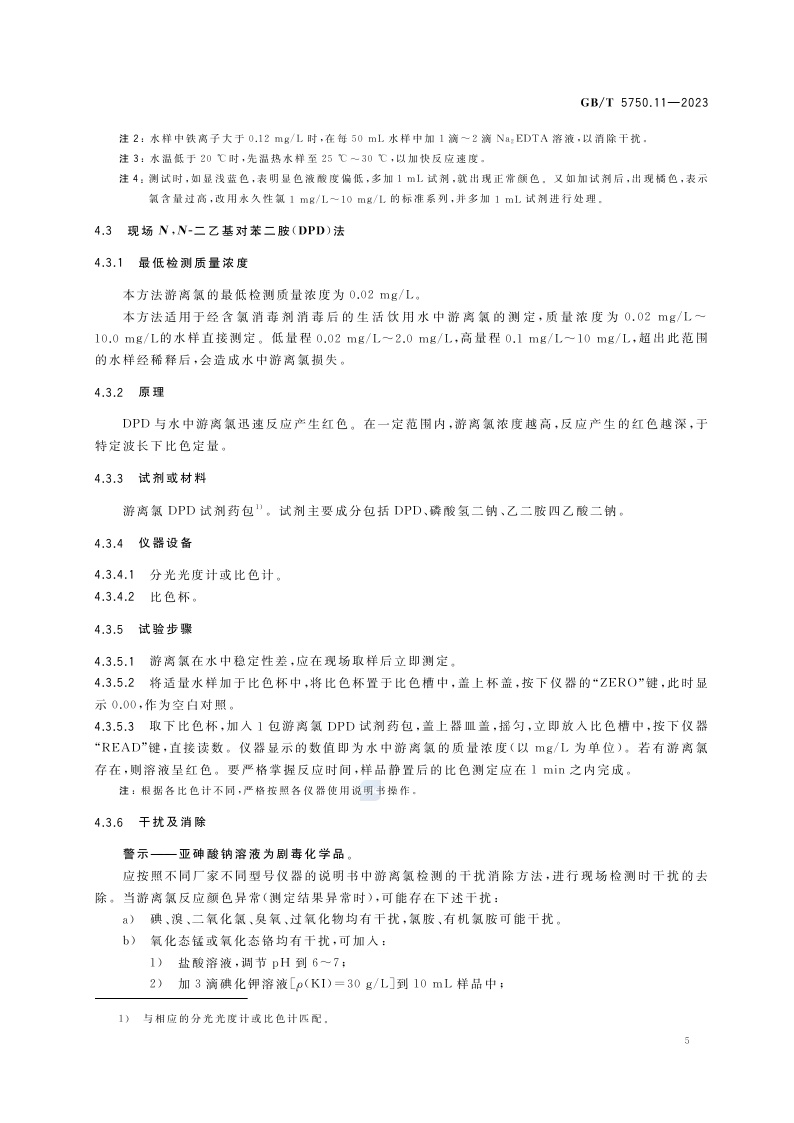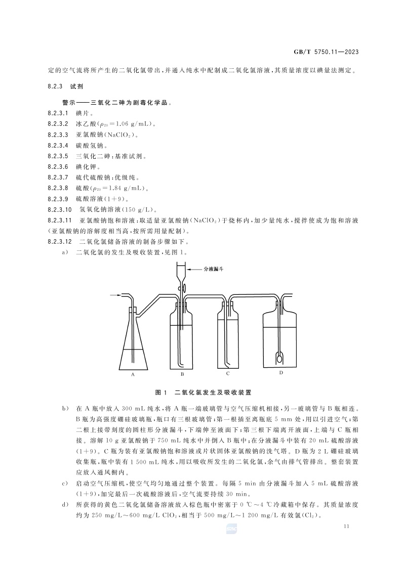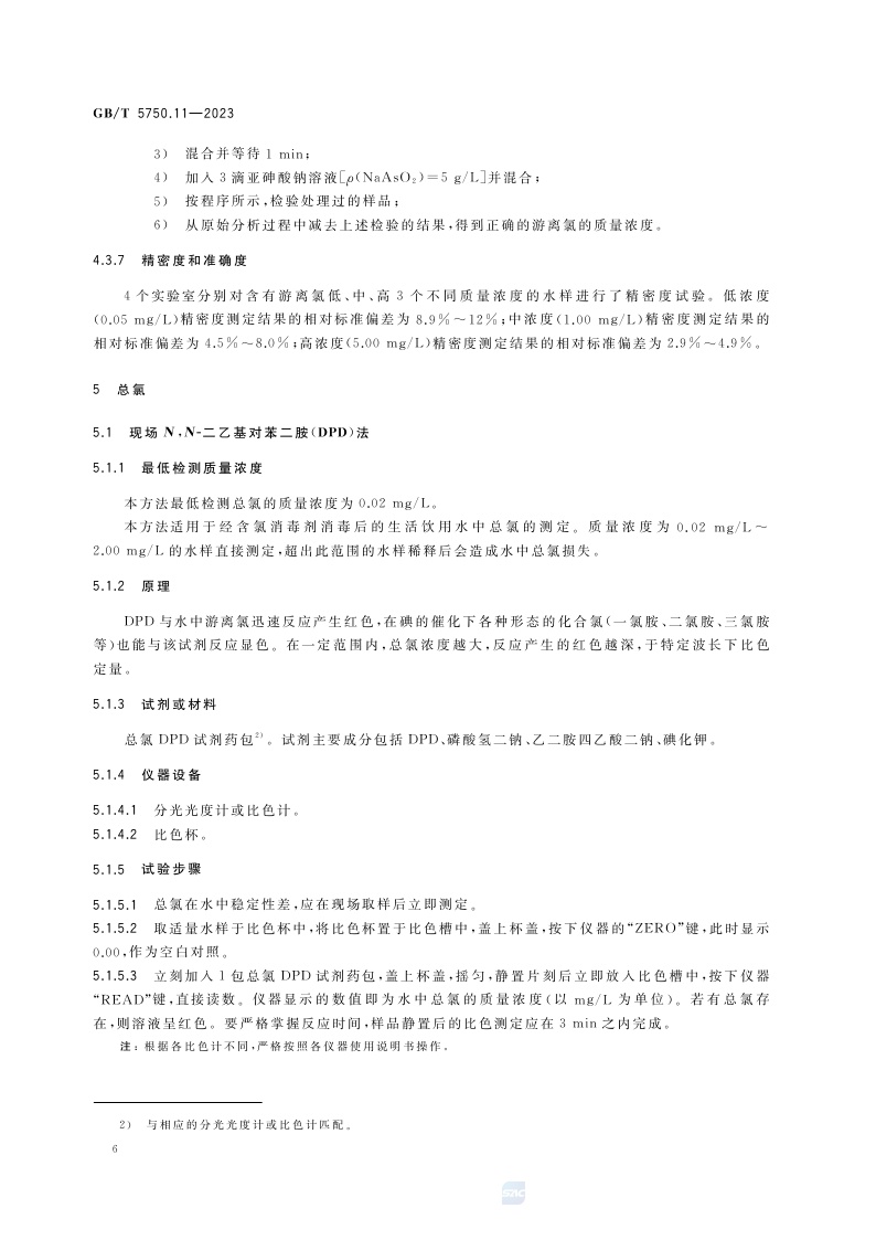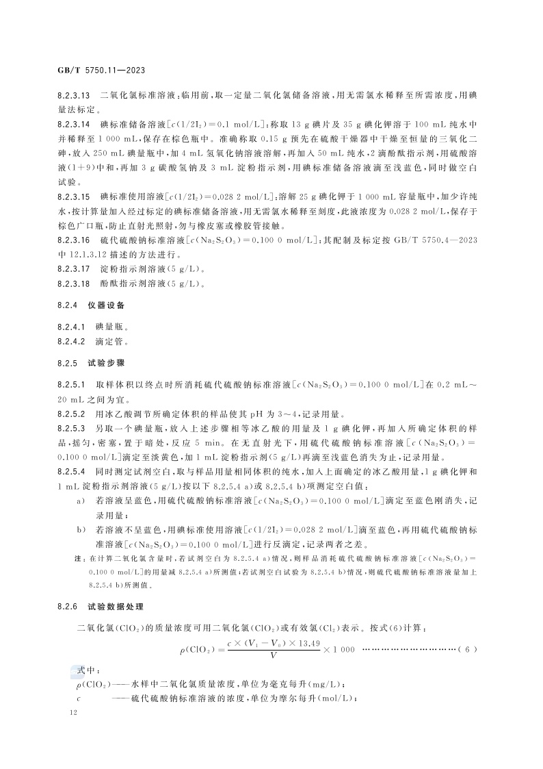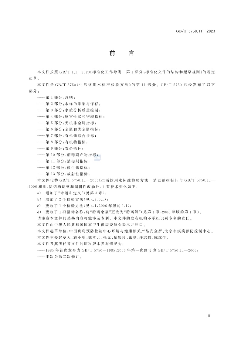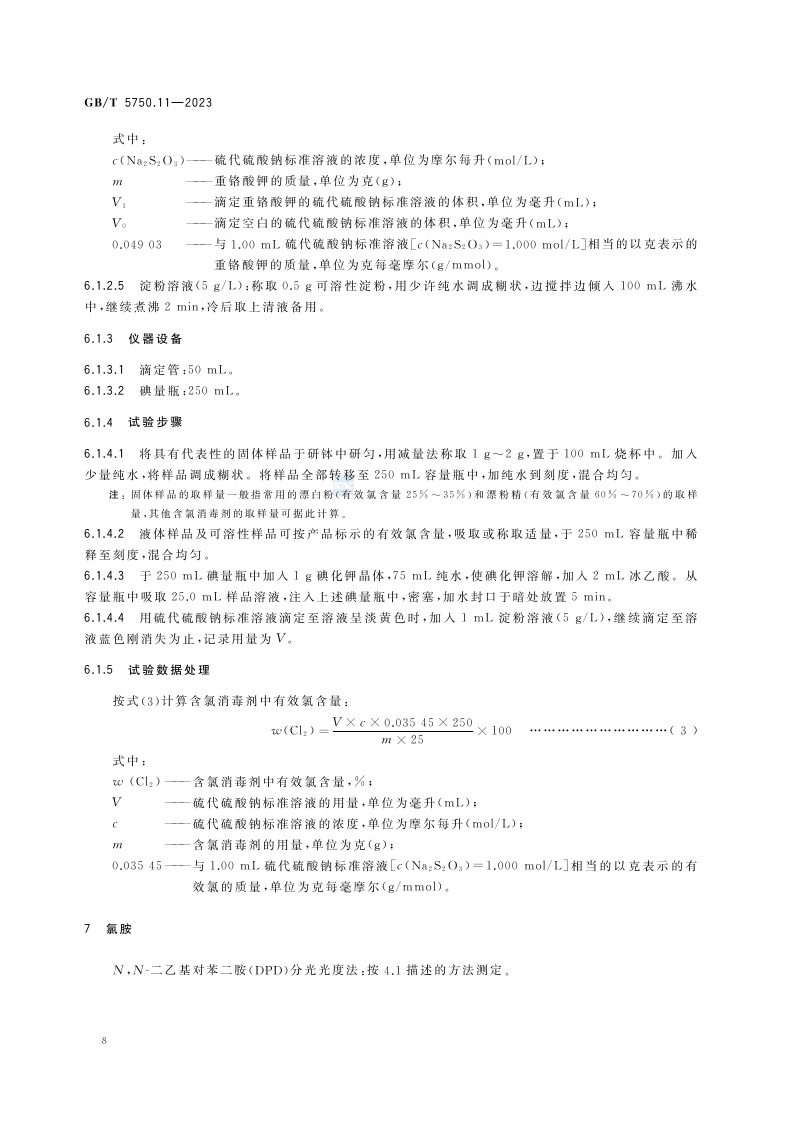 《生活饮用水标准检验方法 第11部分:消毒剂指标》(GB/T 5750.11-2023)