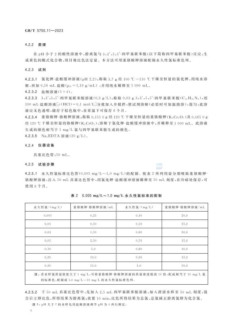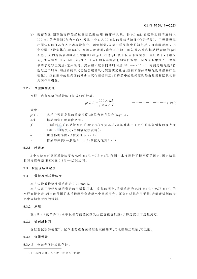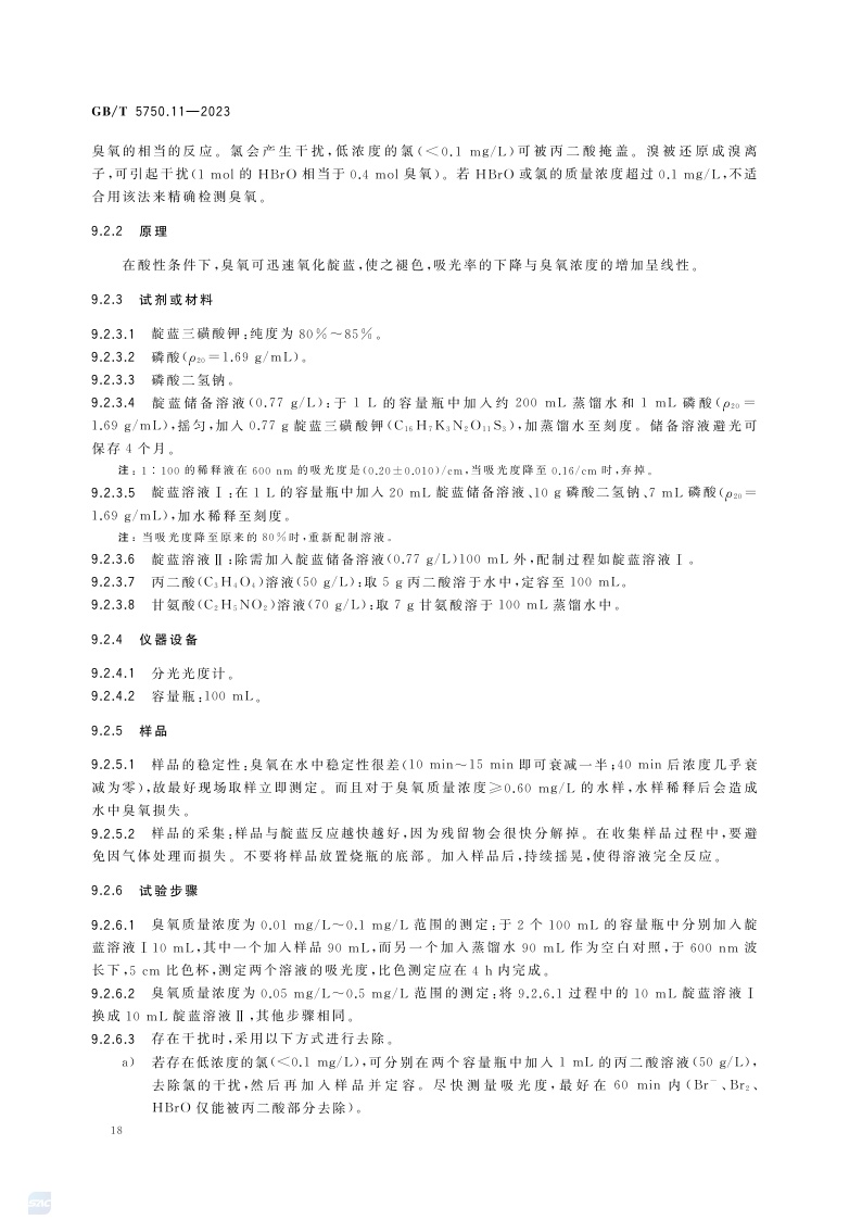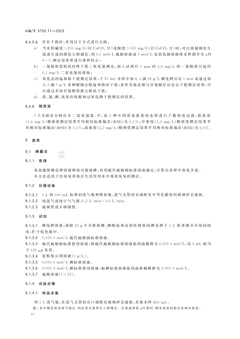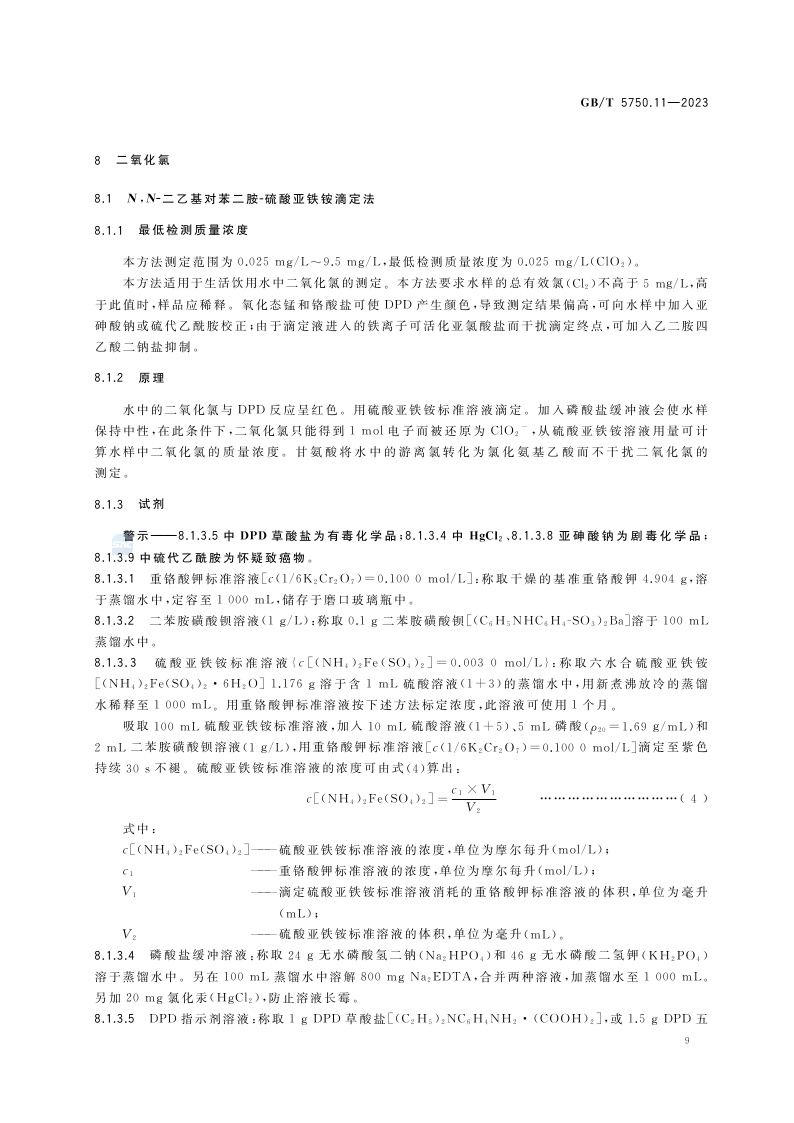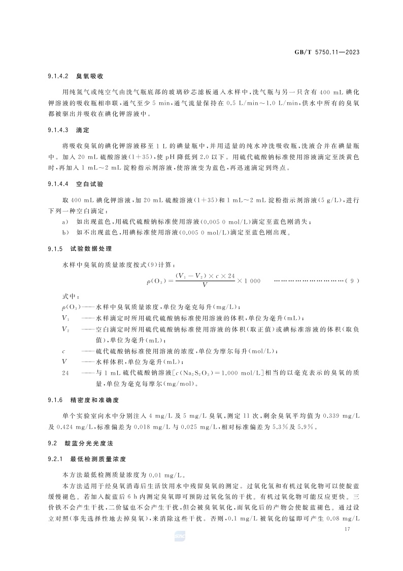 《生活饮用水标准检验方法 第11部分:消毒剂指标》(GB/T 5750.11-2023)
