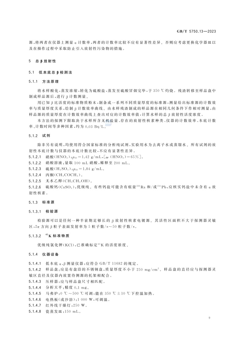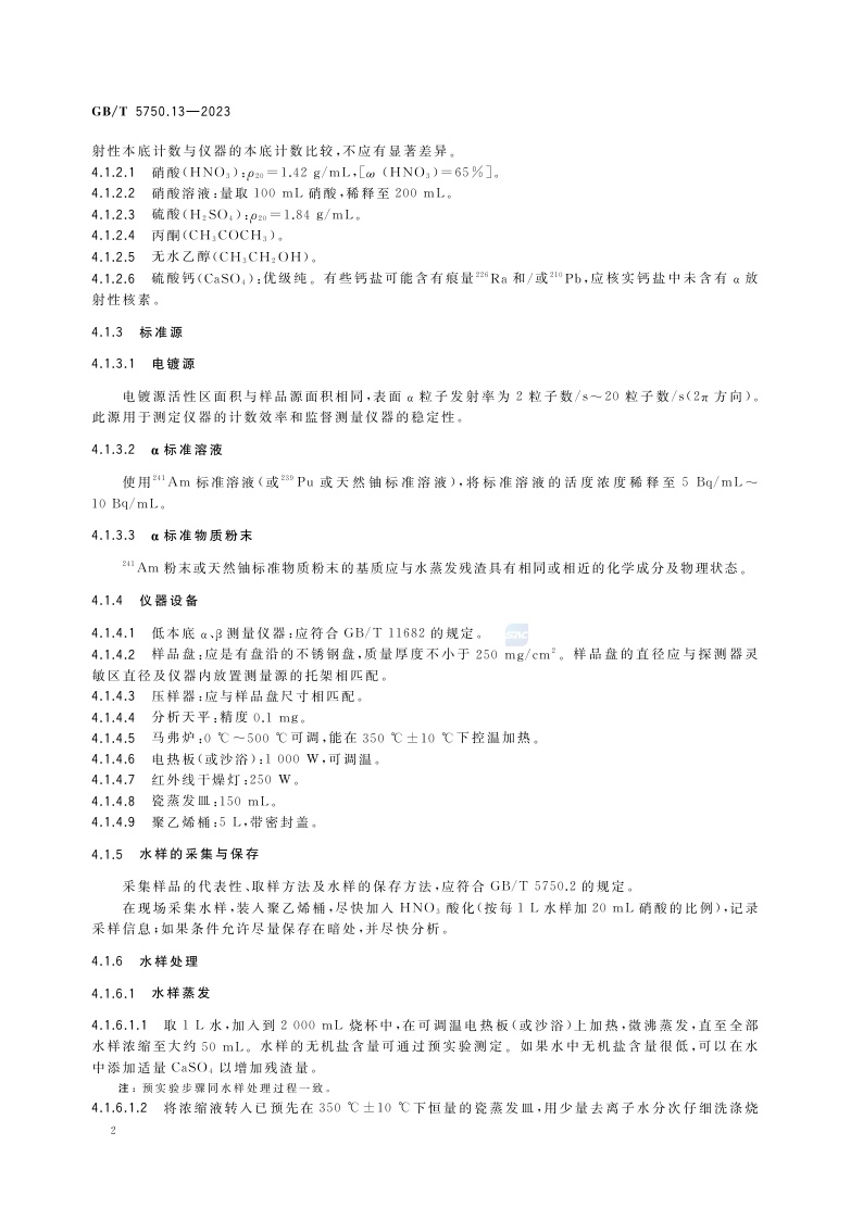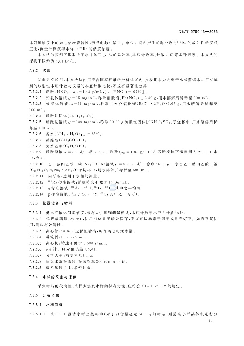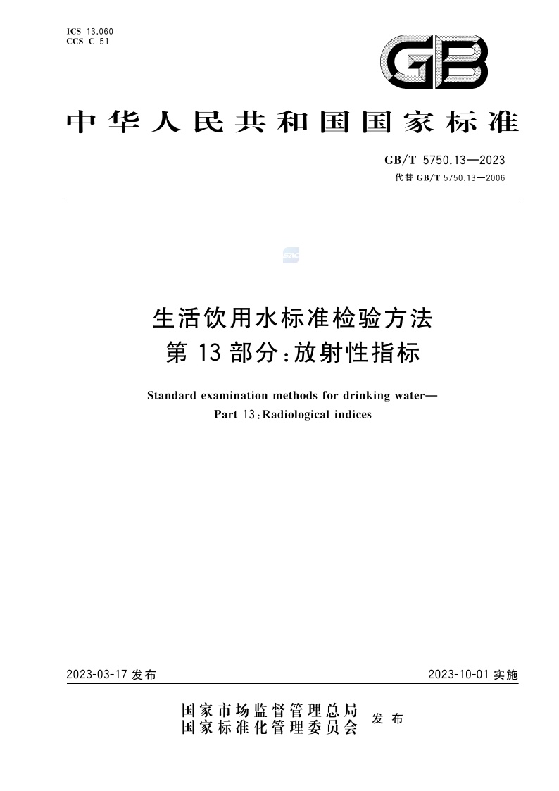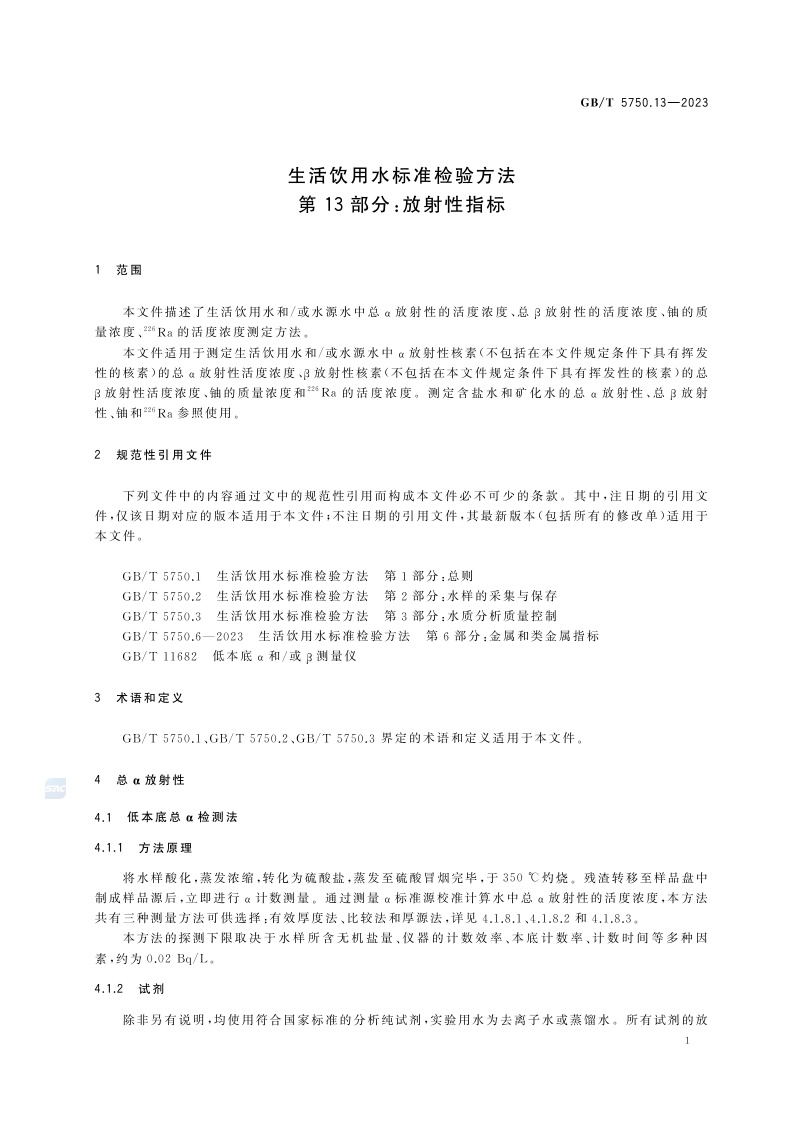 《生活饮用水标准检验方法 第13部分:放射性指标》(GB/T 5750.13-2023)