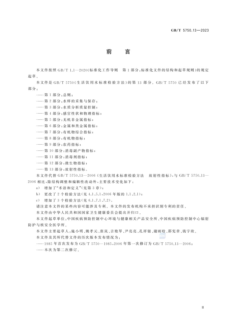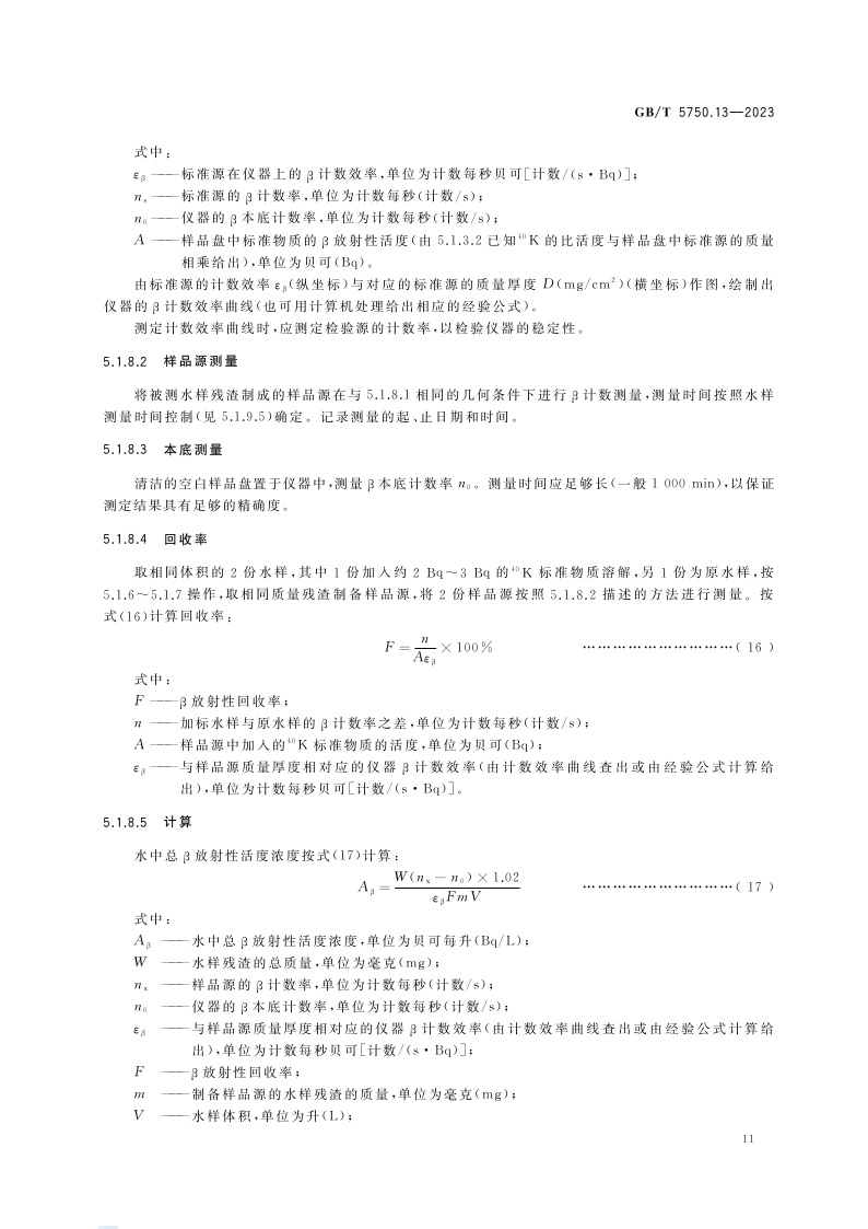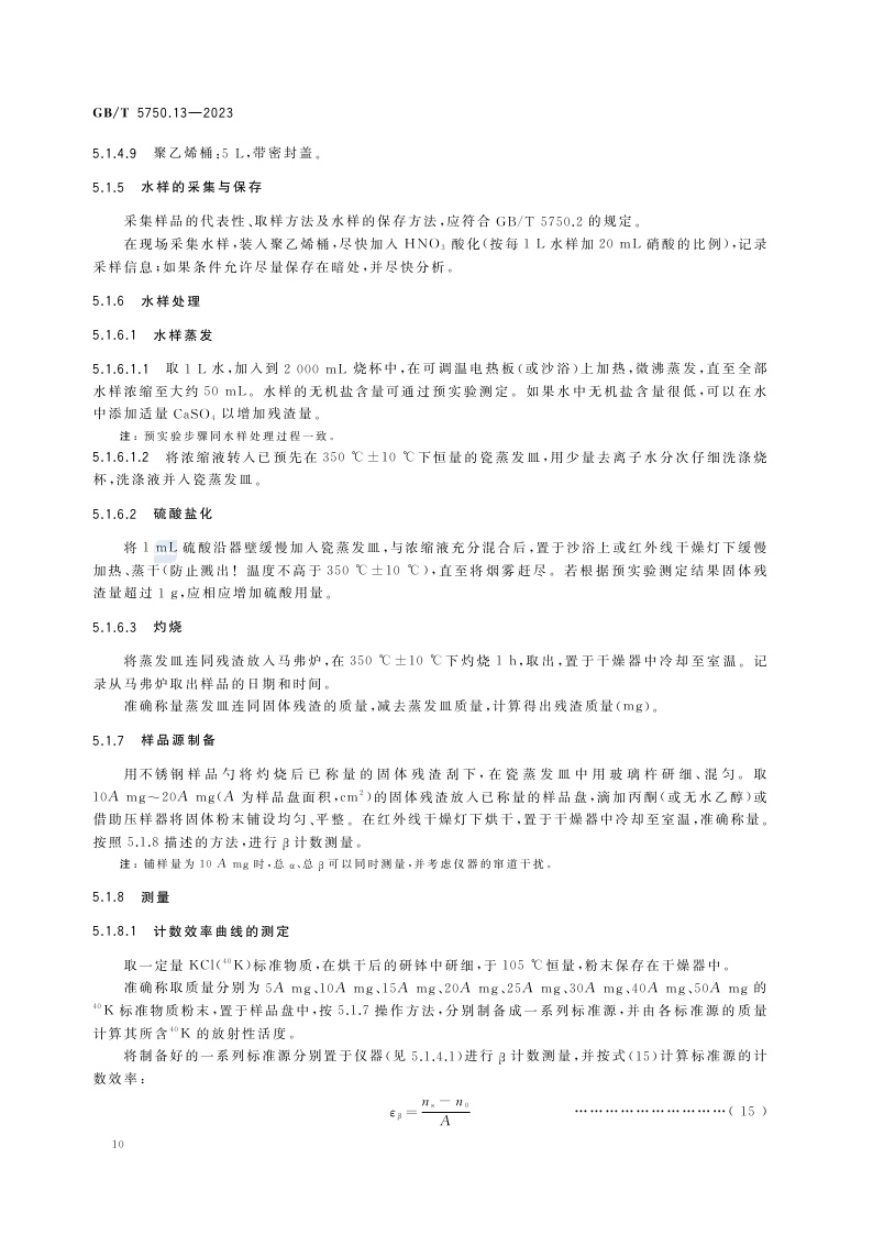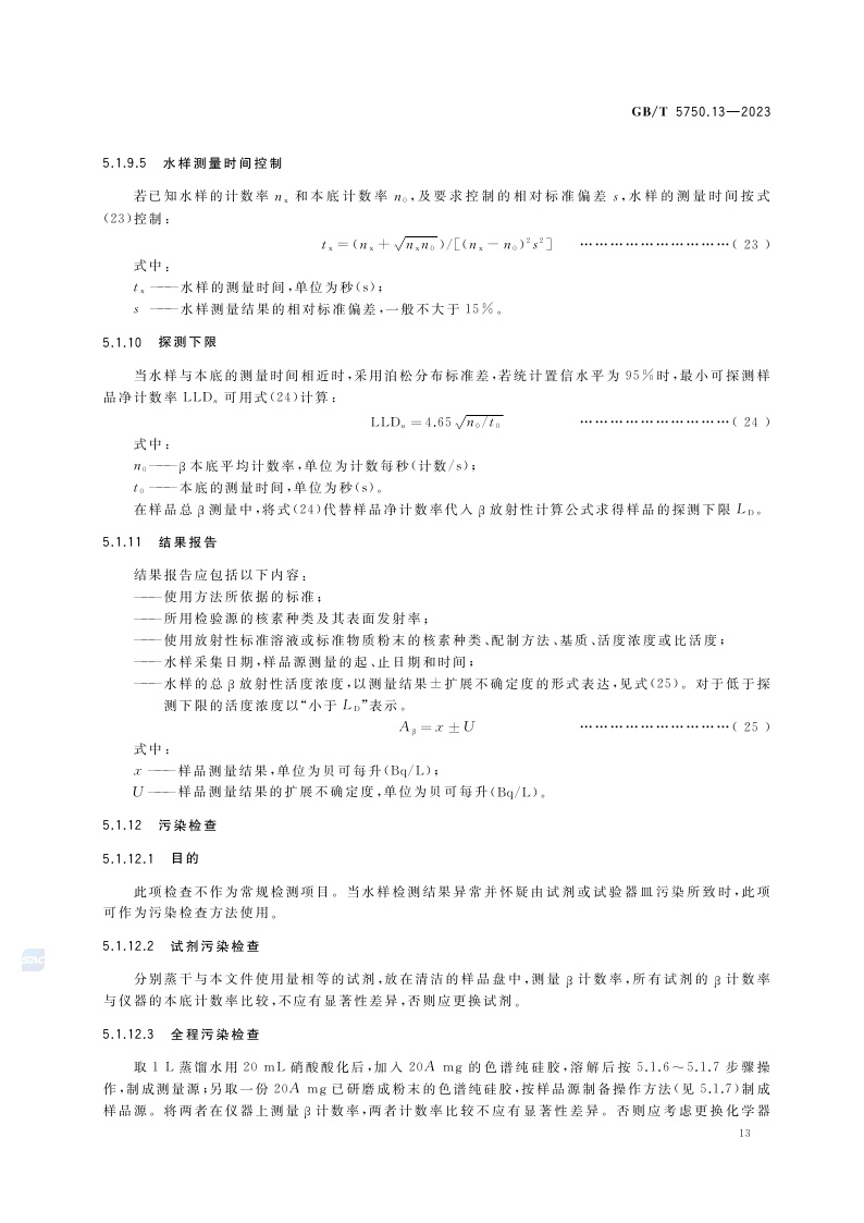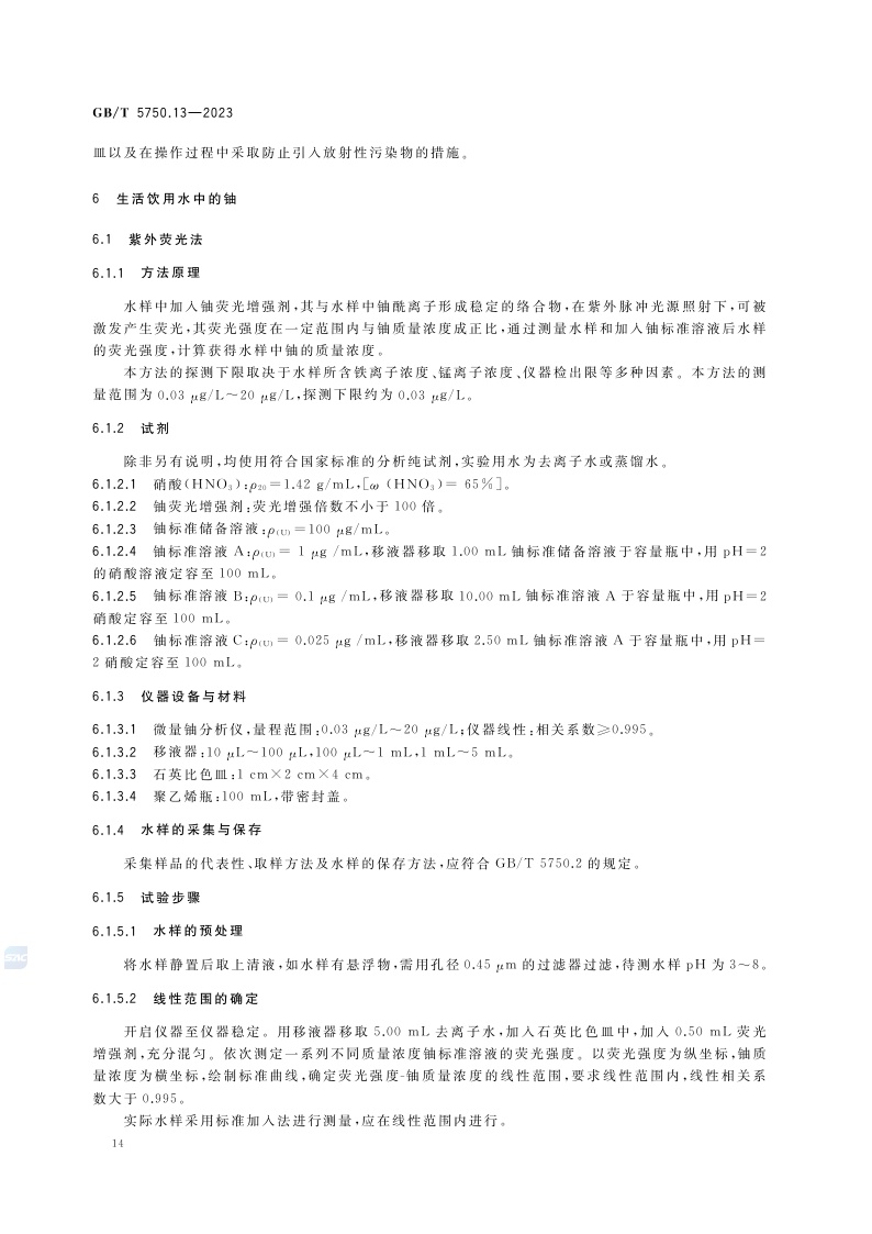 《生活饮用水标准检验方法 第13部分:放射性指标》(GB/T 5750.13-2023)