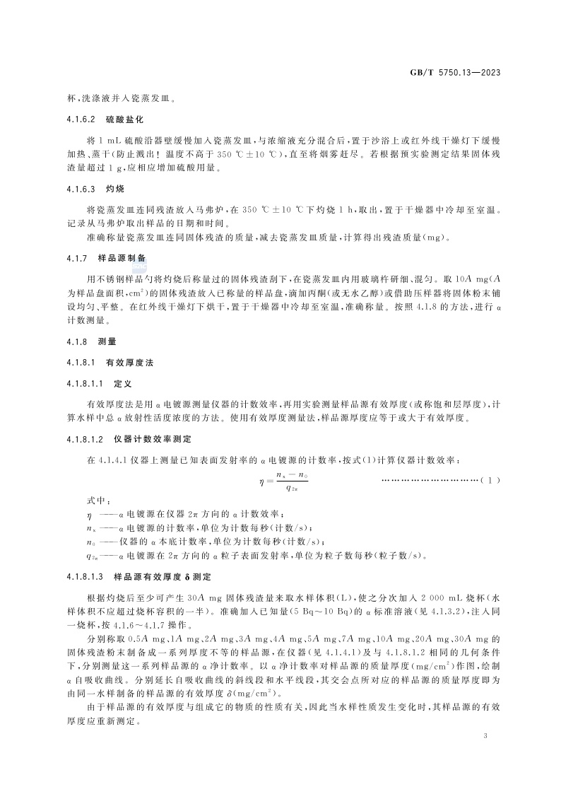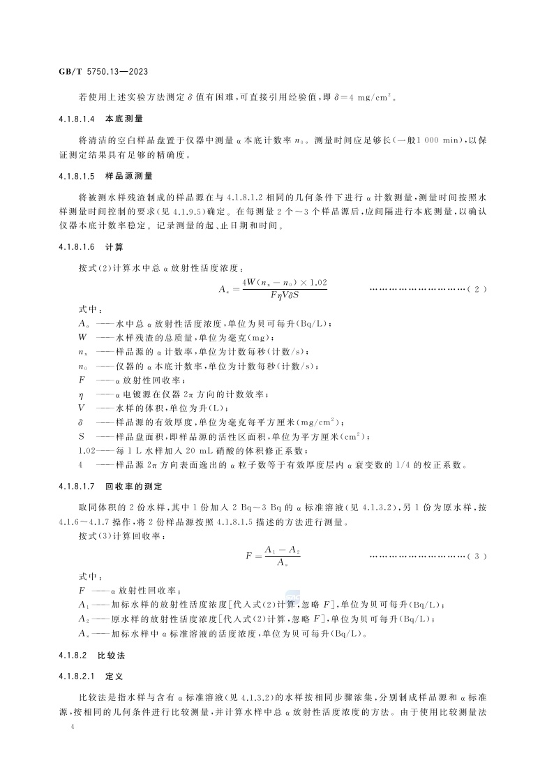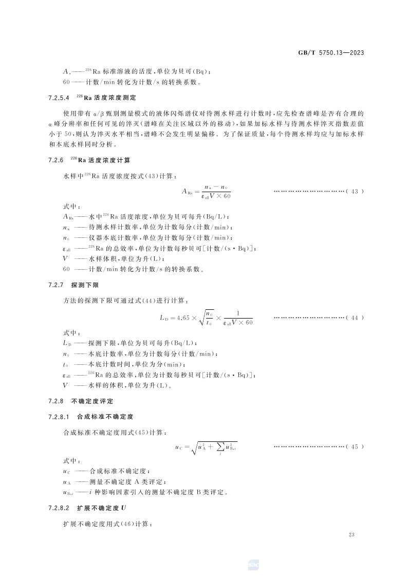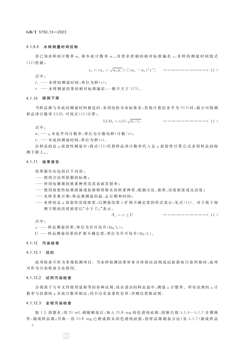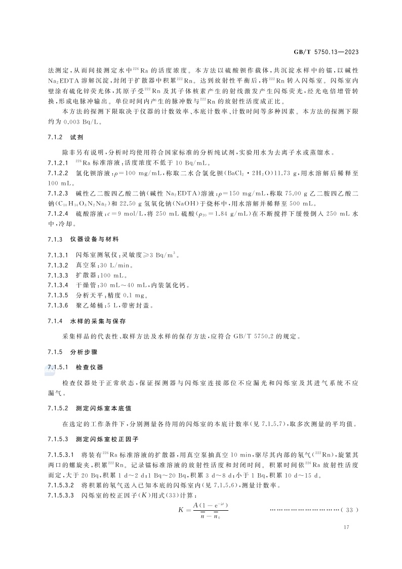 《生活饮用水标准检验方法 第13部分:放射性指标》(GB/T 5750.13-2023)