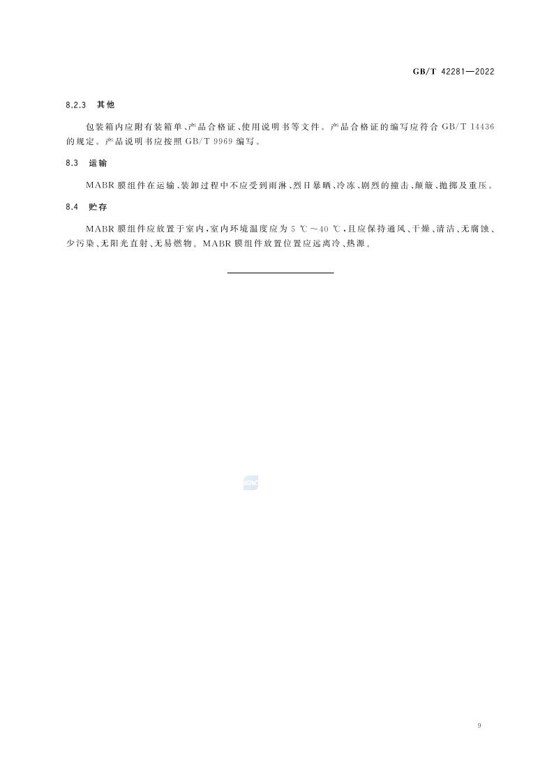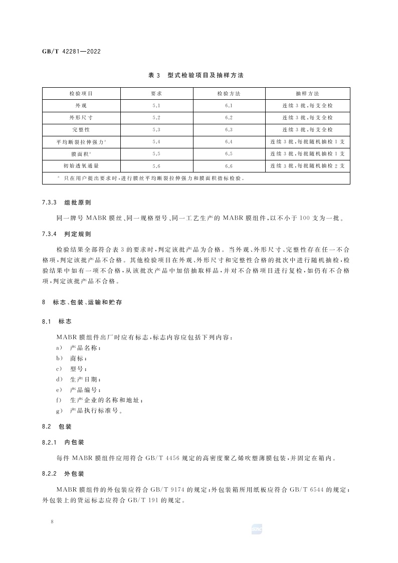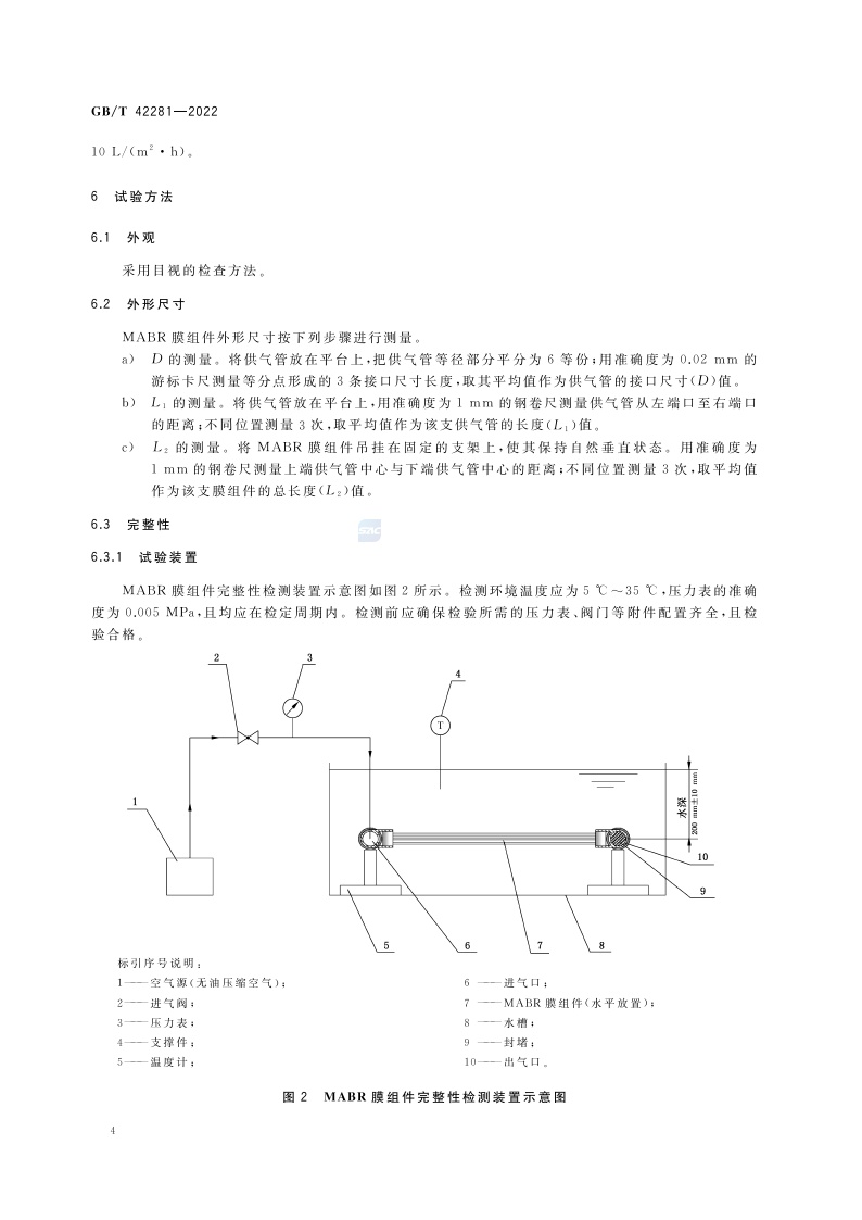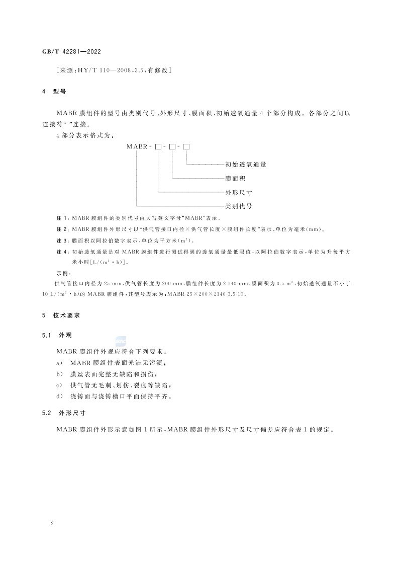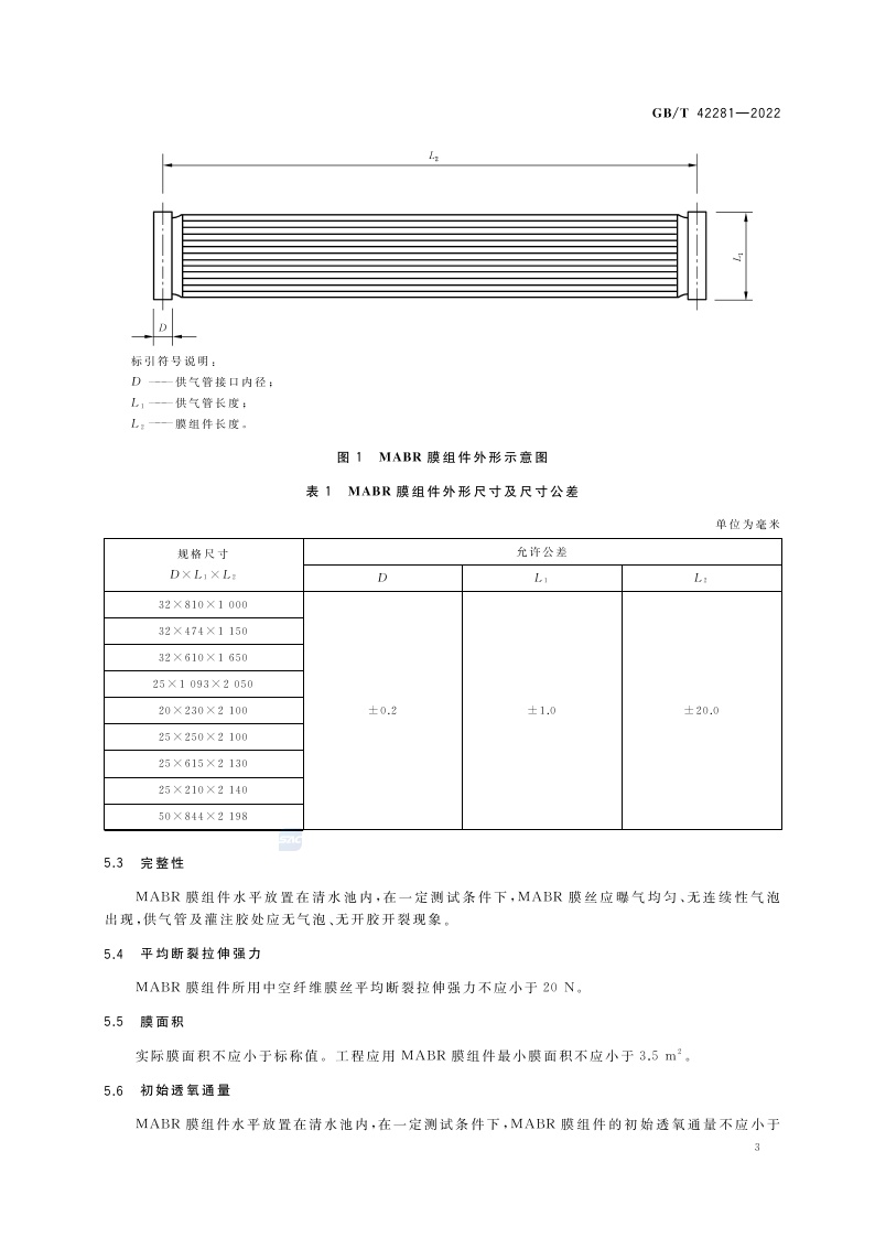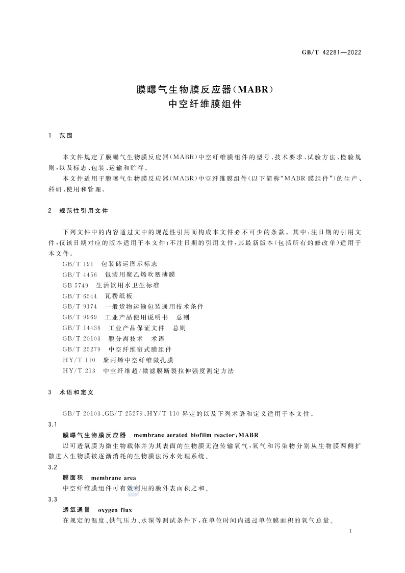 《膜曝气生物膜反应器(MABR)中空纤维膜组件》(GB/T 42281-2022)
