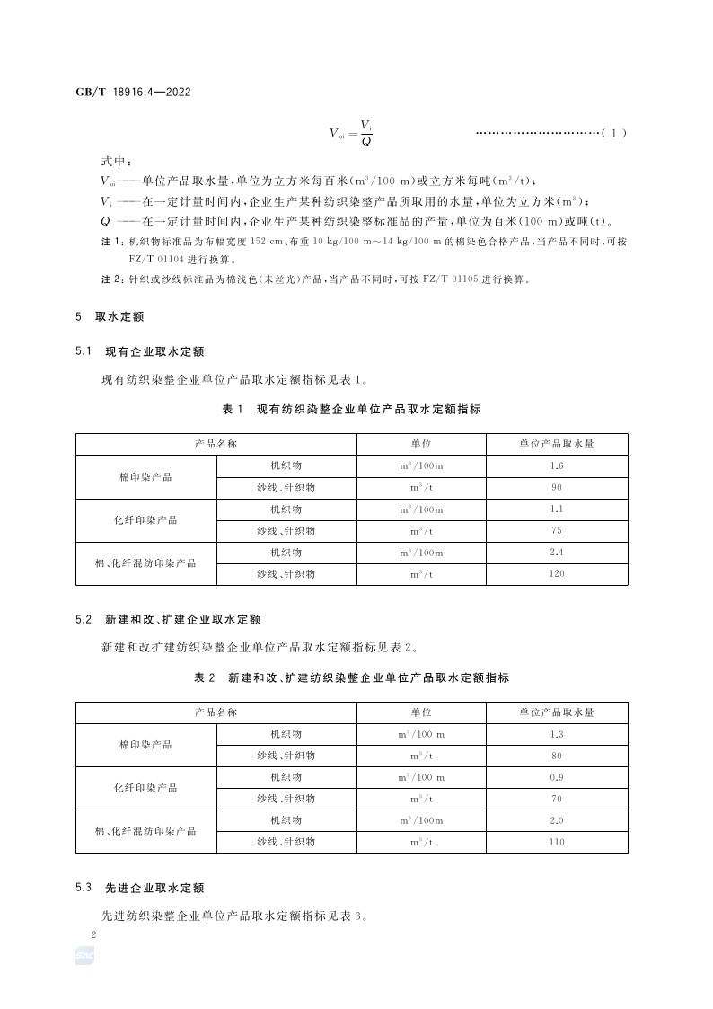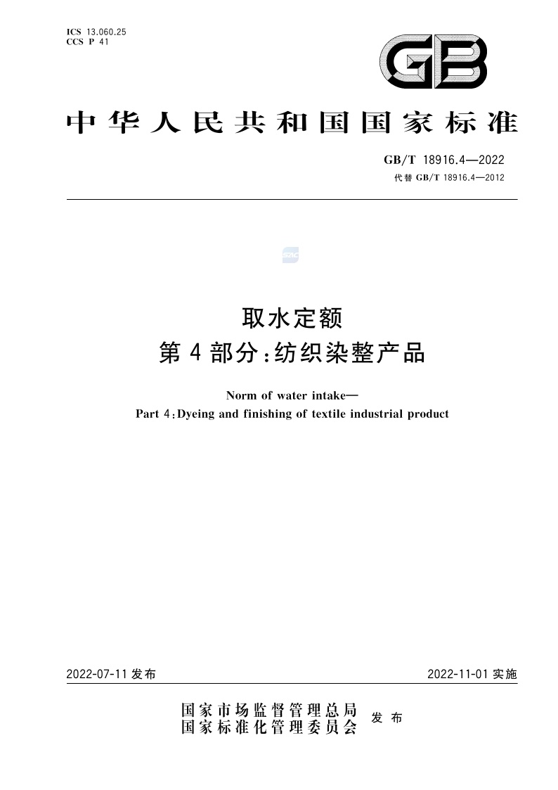 《取水定额 第4部分:纺织染整产品》(GB/T 18916.4-2022)