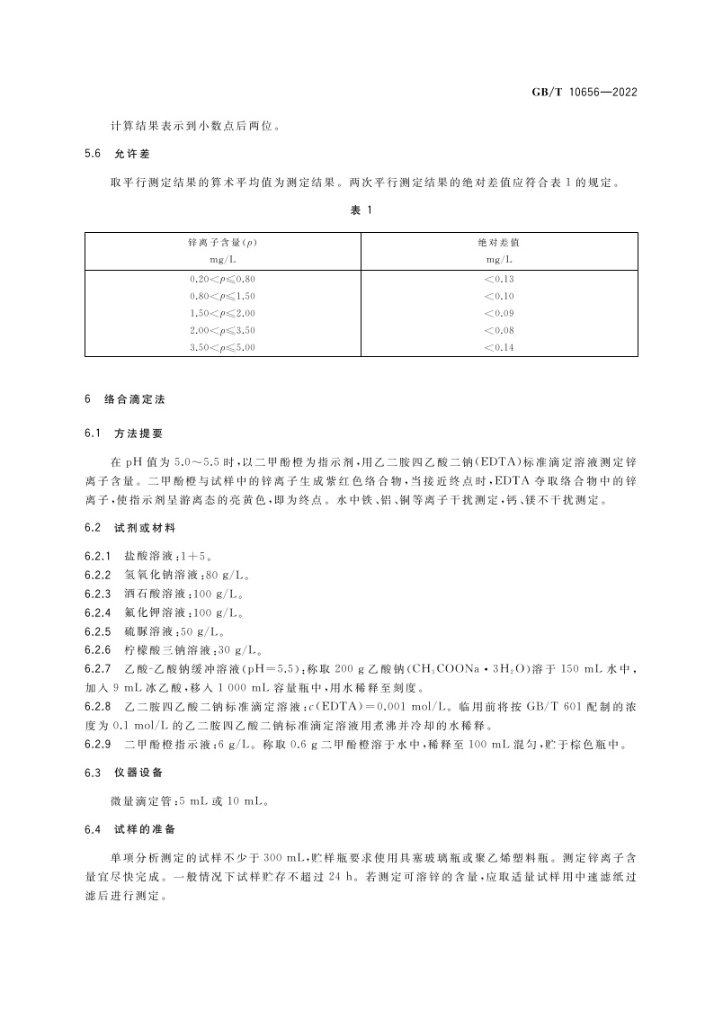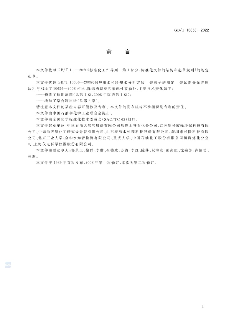《锅炉用水和冷却水分析方法 锌离子的测定》(GB/T 10656-2022)