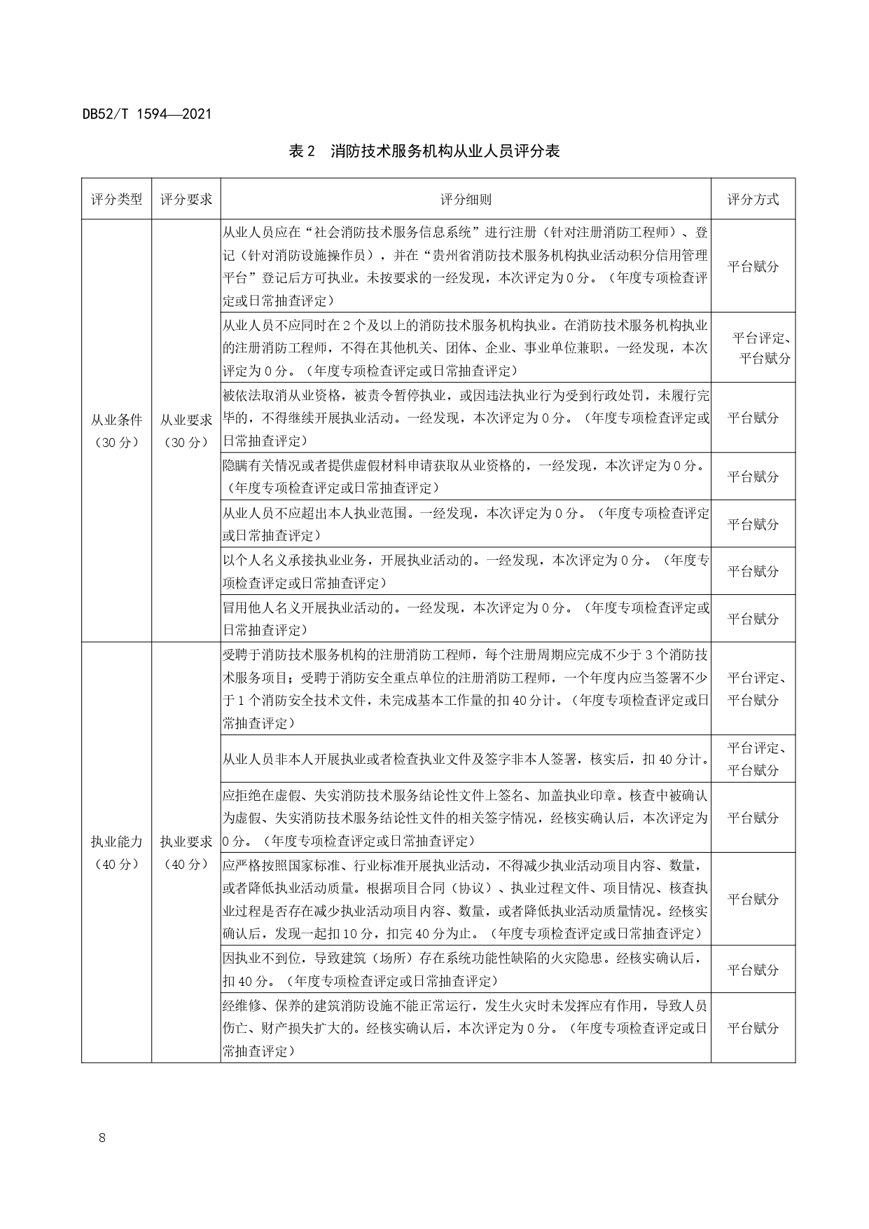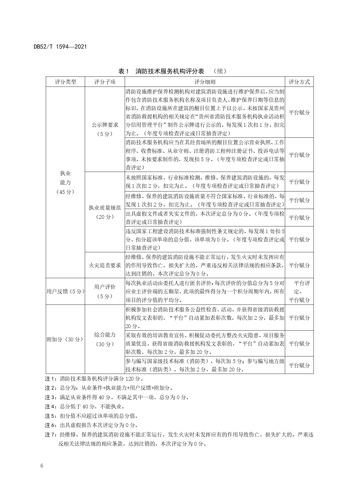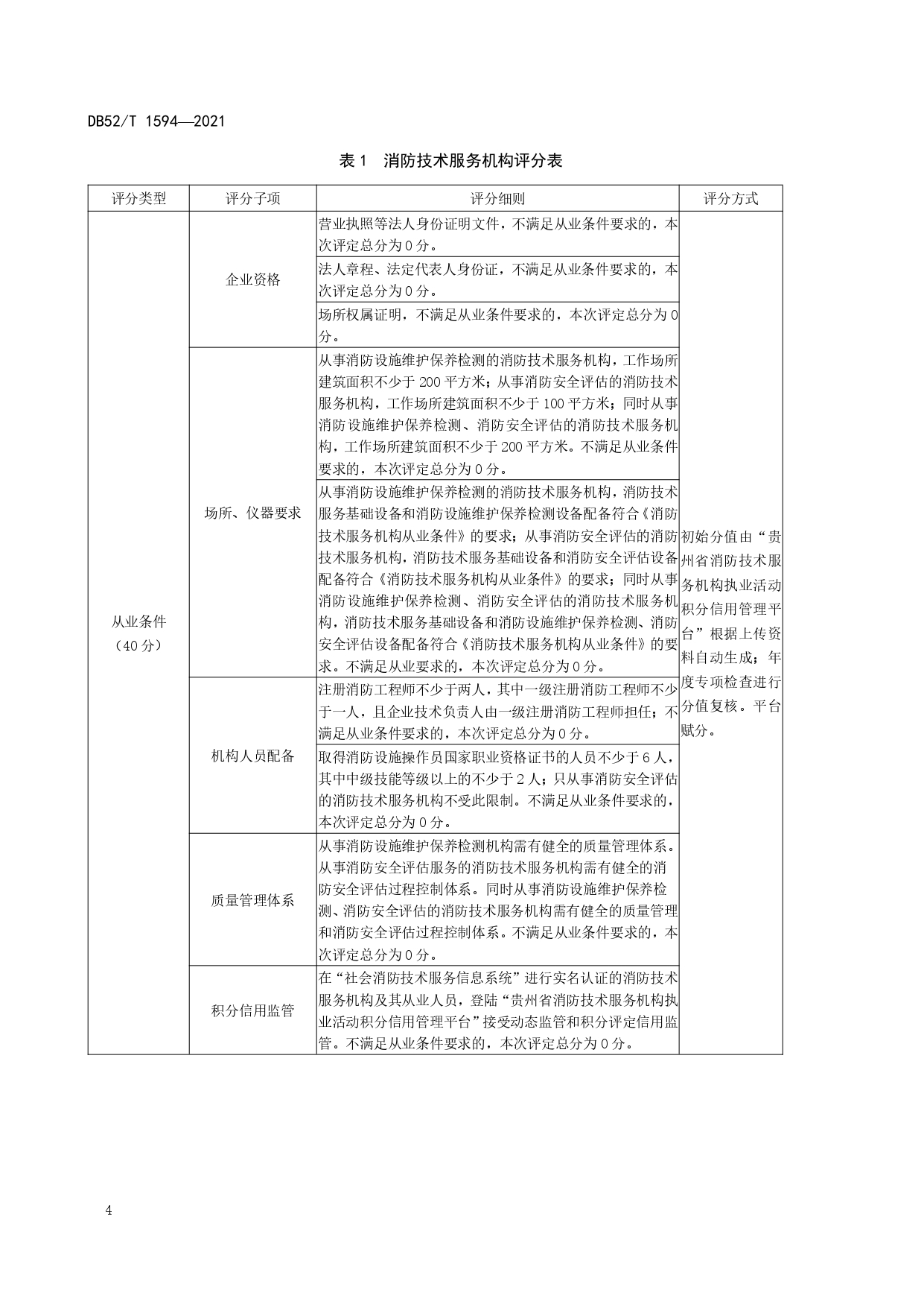 消防技术服务机构及从业人员积分评定规程DB52/T 1594-2021