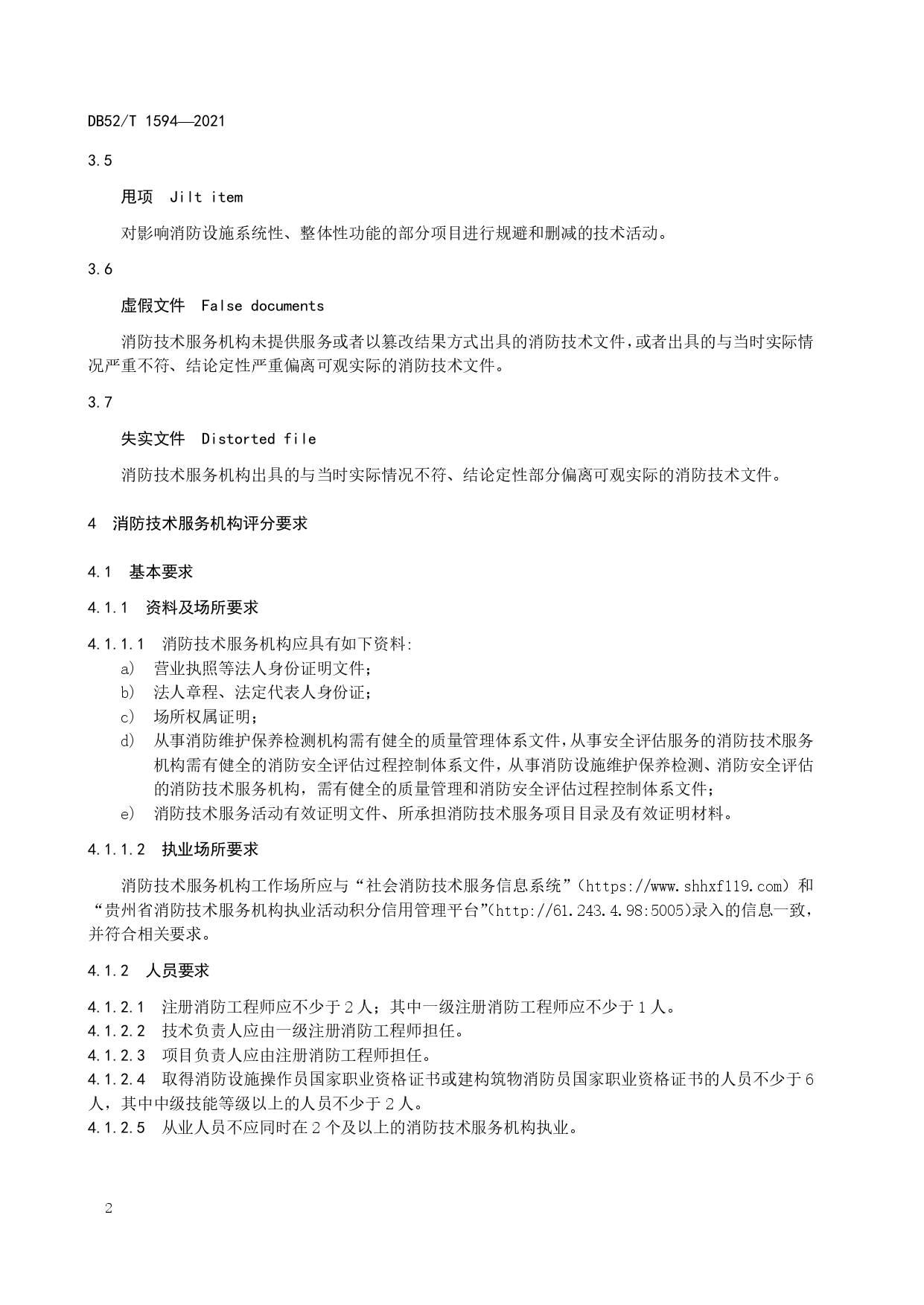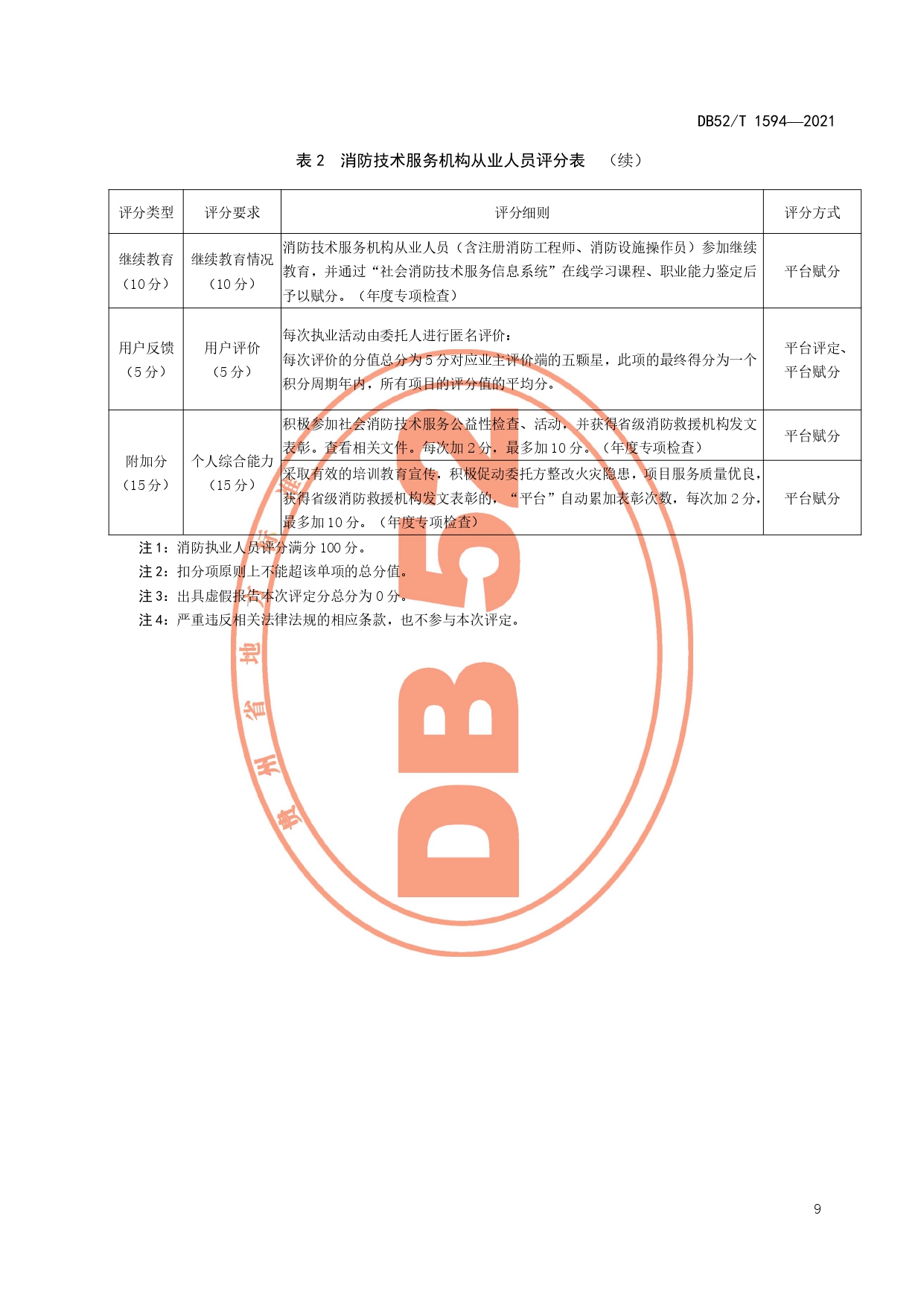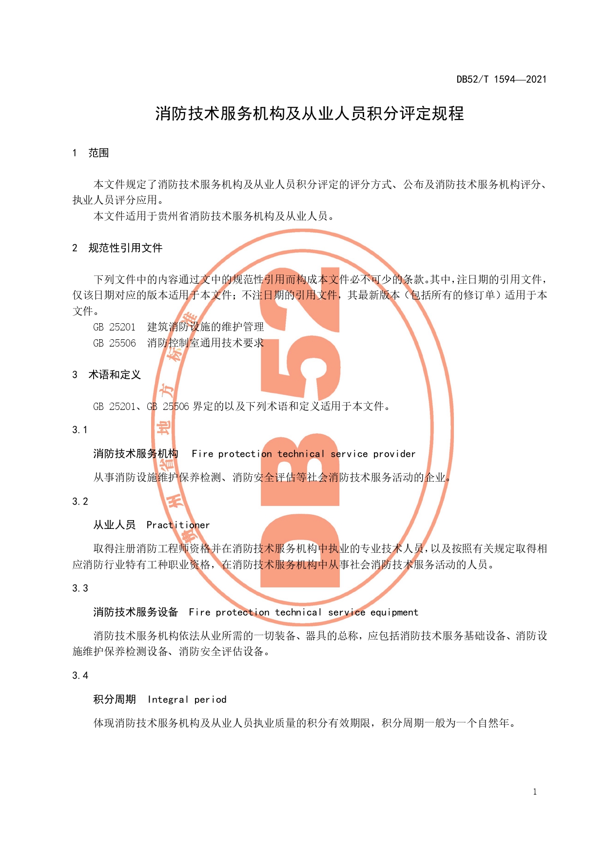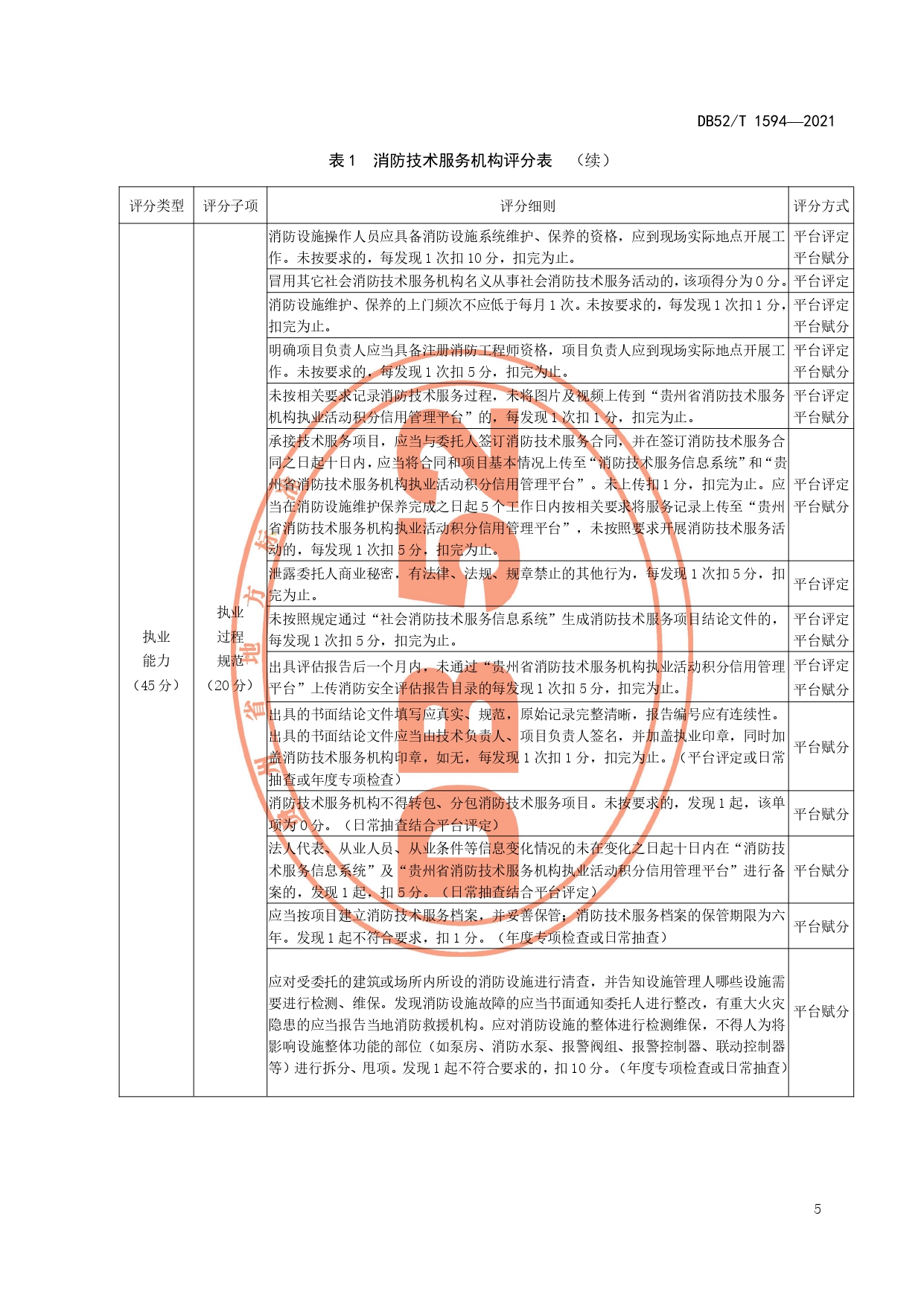 消防技术服务机构及从业人员积分评定规程DB52/T 1594-2021