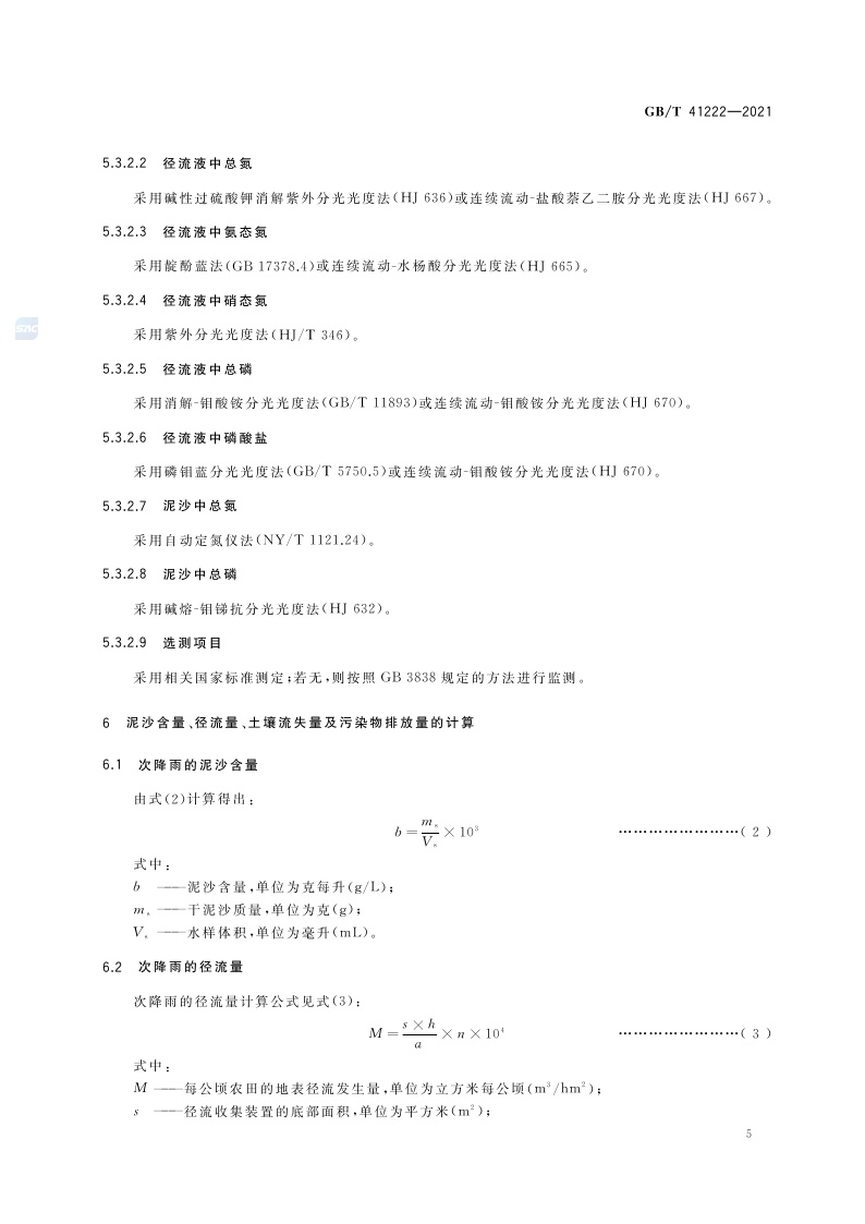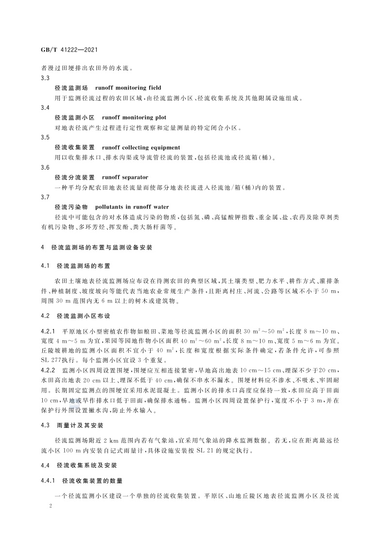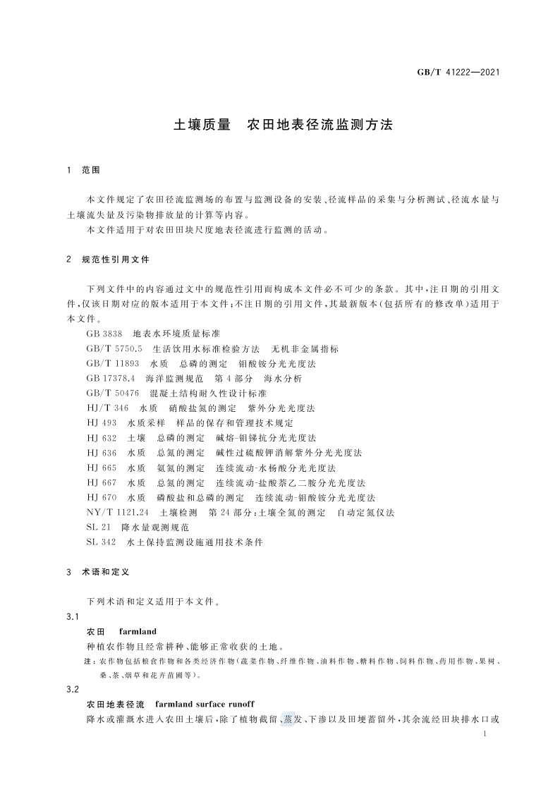 《土壤质量 农田地表径流监测方法》(GB/T 41222-2021)