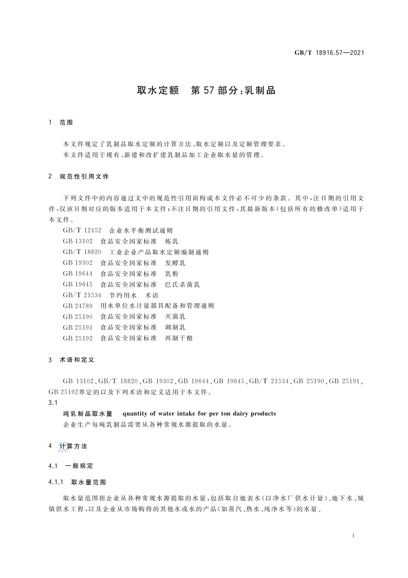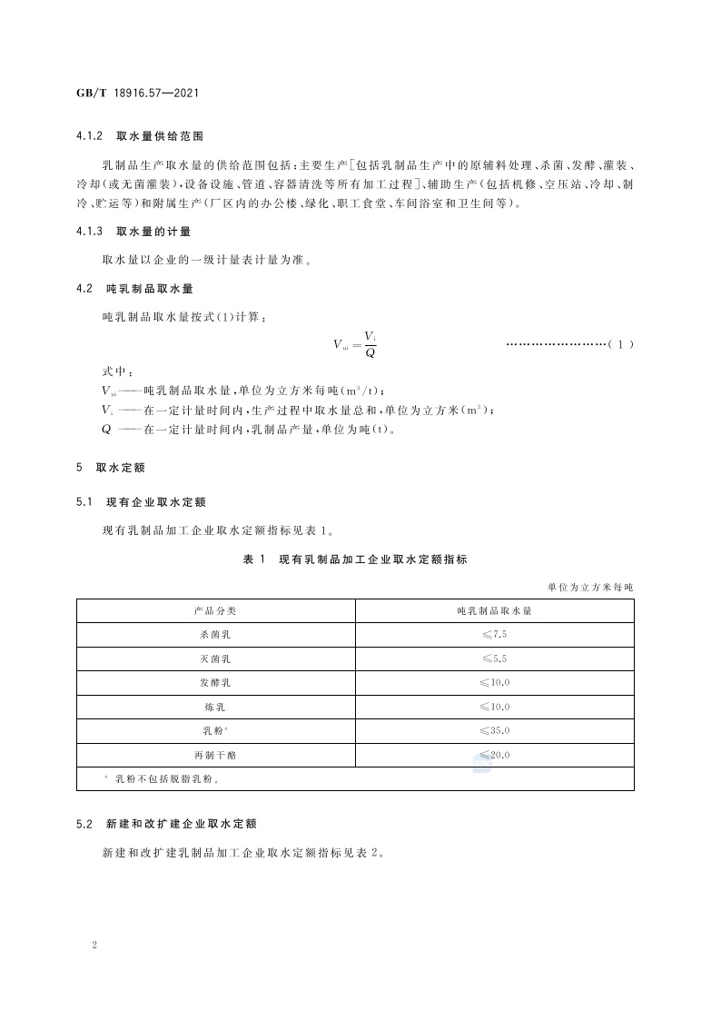 《取水定额 第57部分:乳制品》(GB/T 18916.57-2021)