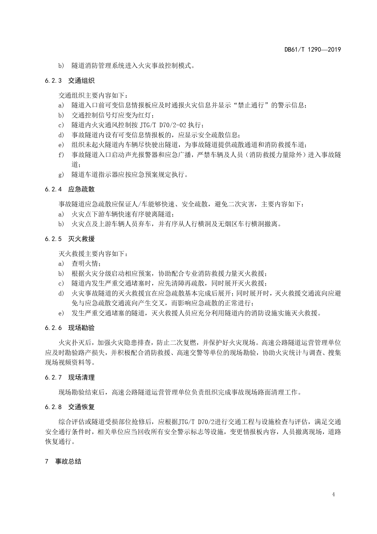 高速公路隧道消防现场管理秩序规范DB61/T 1290-2019