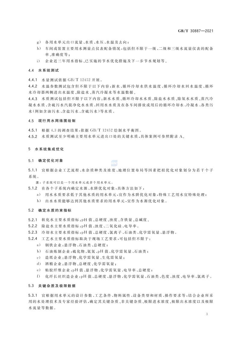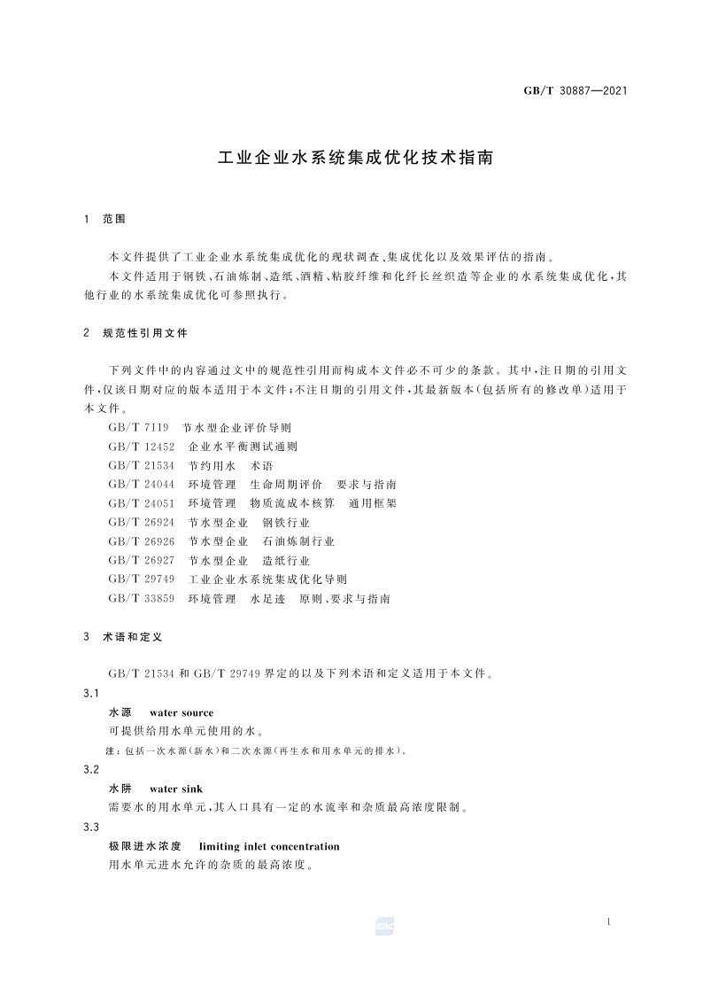 《工业企业水系统集成优化技术指南》(GB/T 30887-2021)