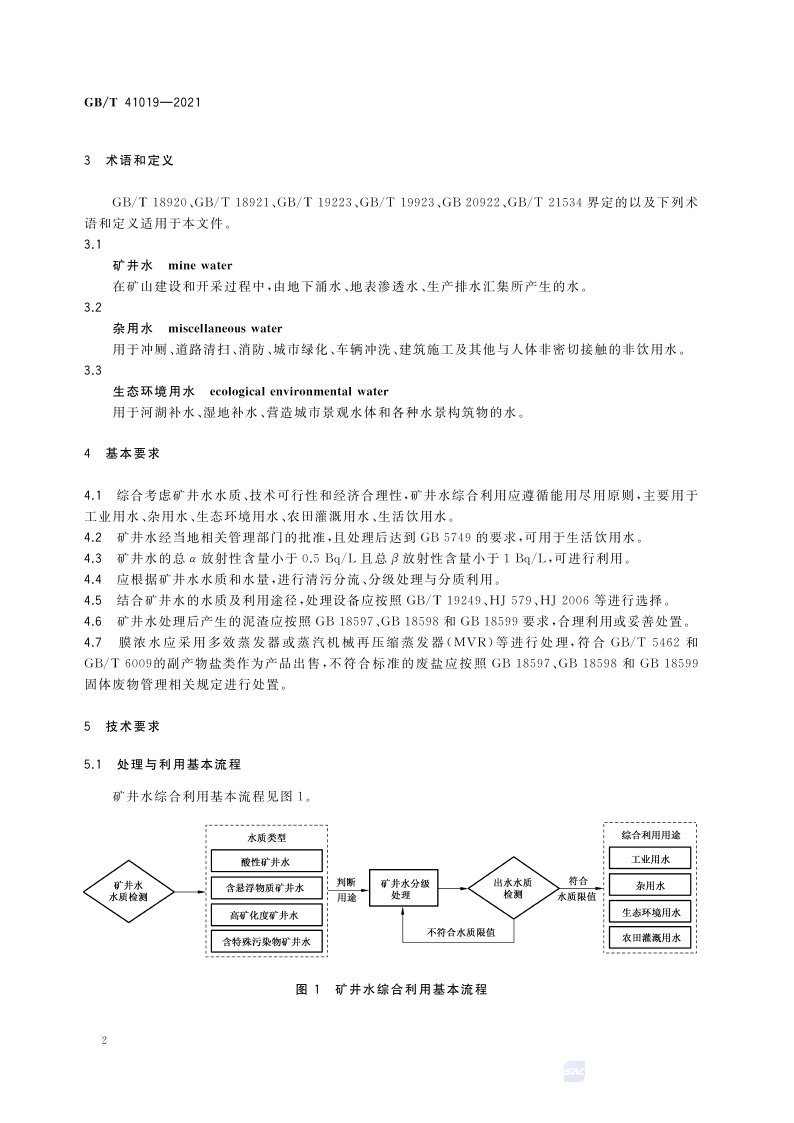 《矿井水综合利用技术导则》(GB/T 41019-2021)