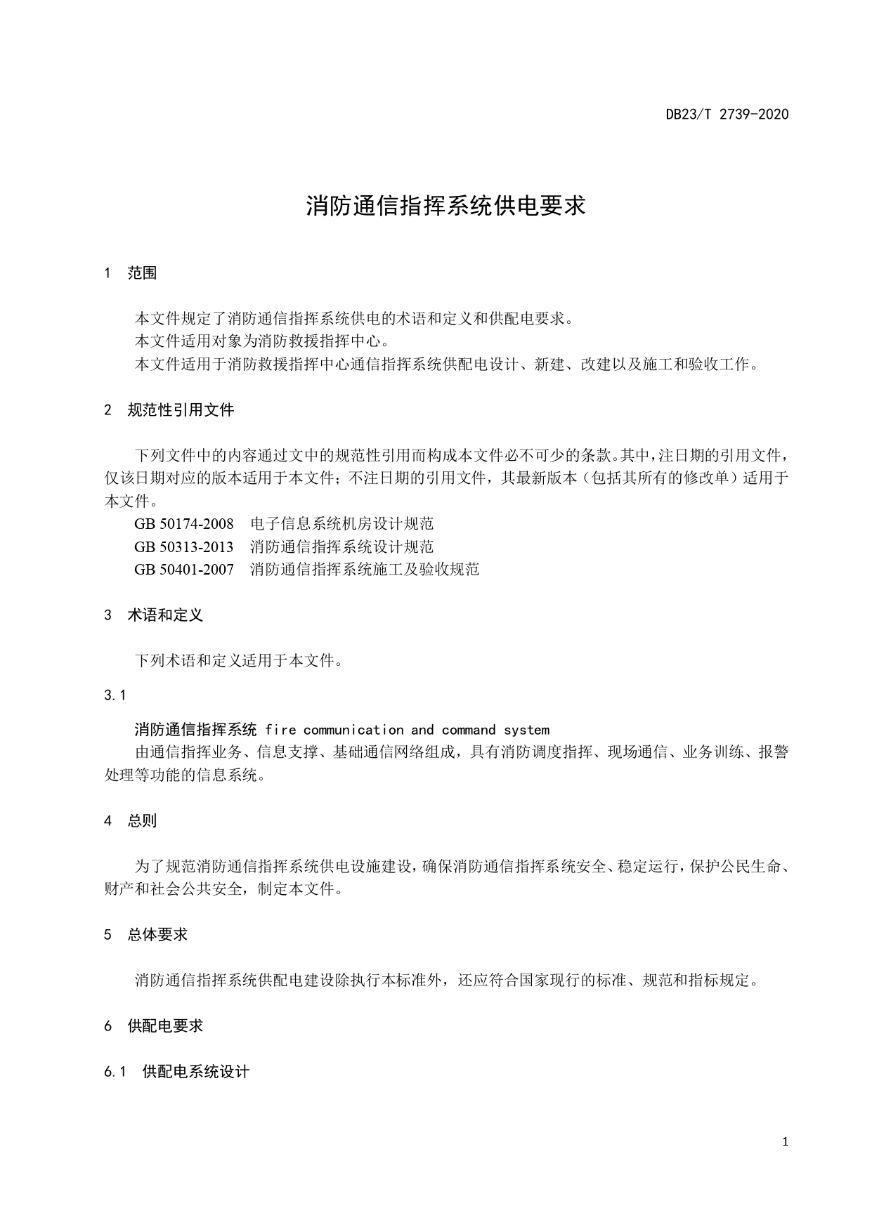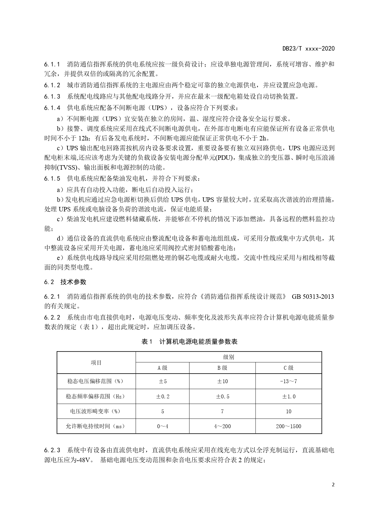 消防通信指挥系统供电要求DB23/T 2739—2020