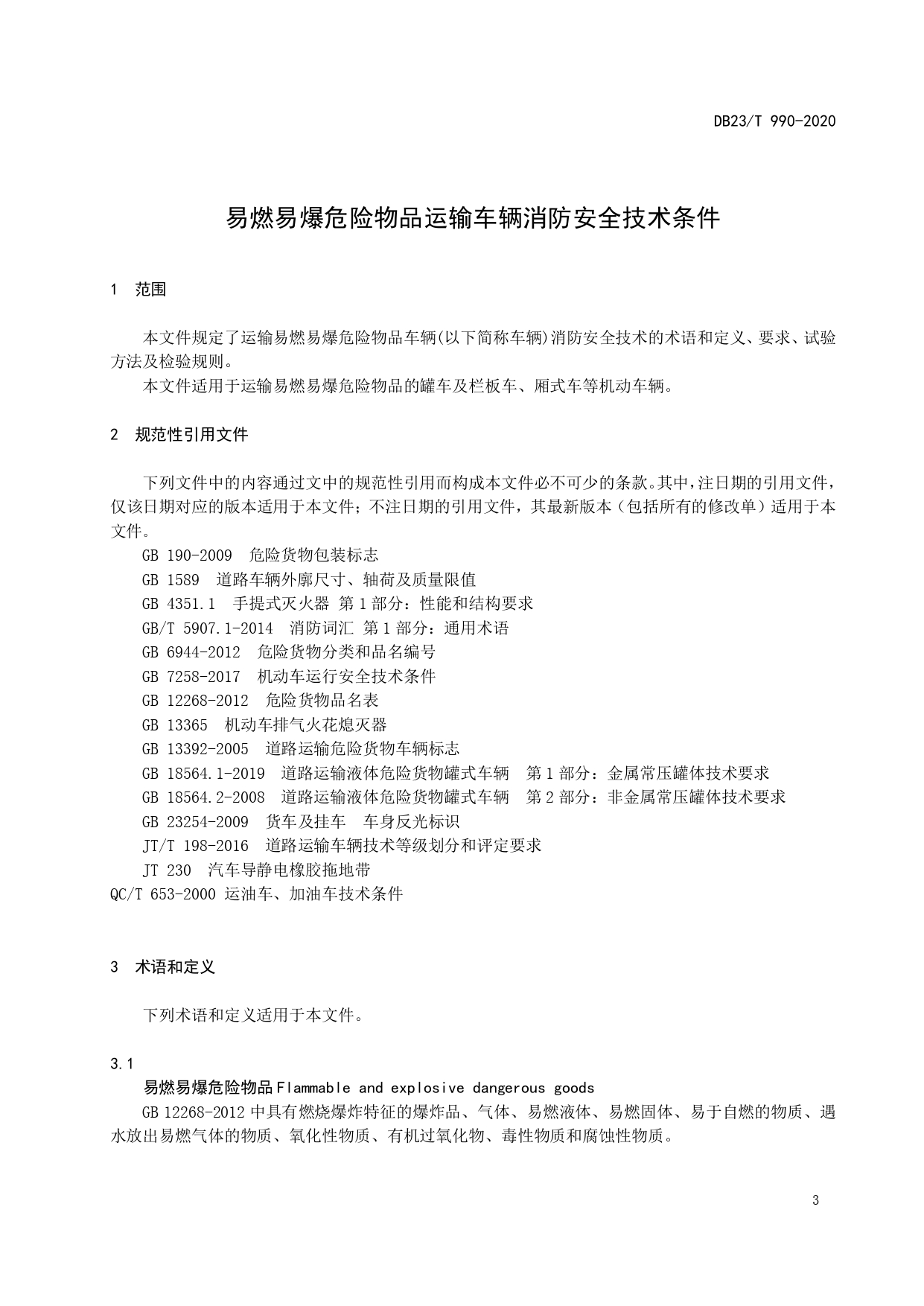 易燃易爆化学物品运输车辆消防安全技术条件DB23/T 990—2020