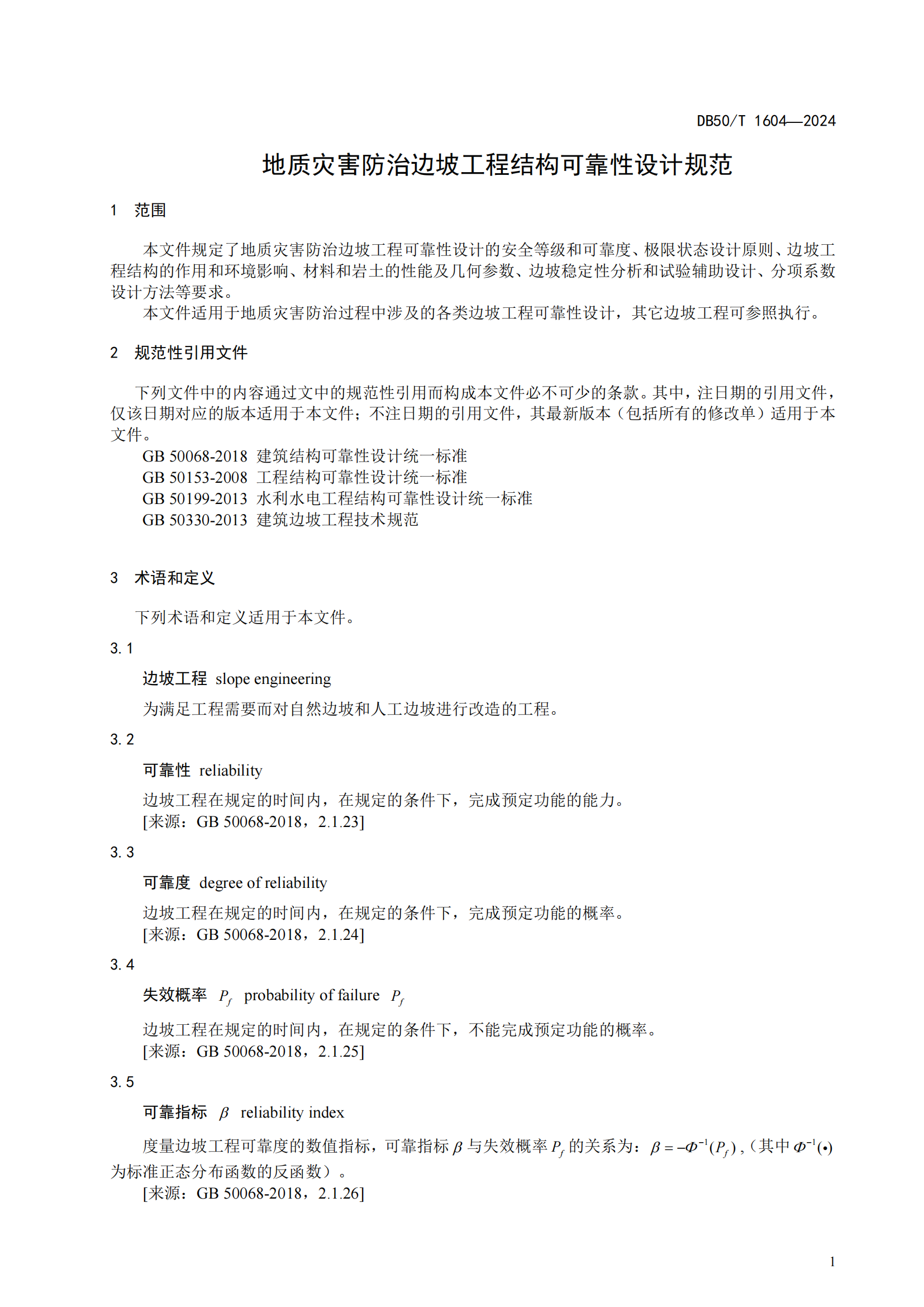 地质灾害防治边坡工程结构可靠性设计规范