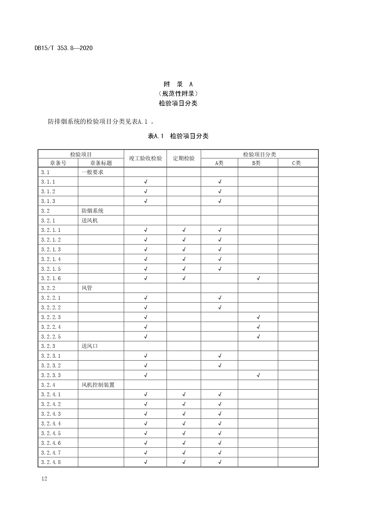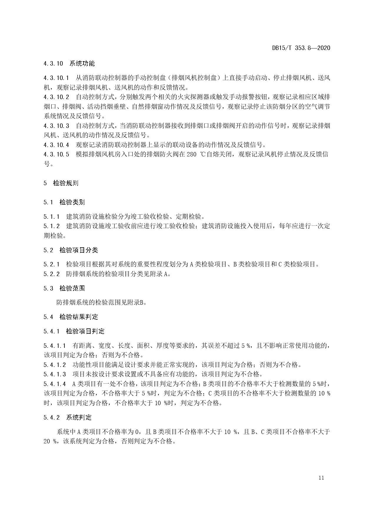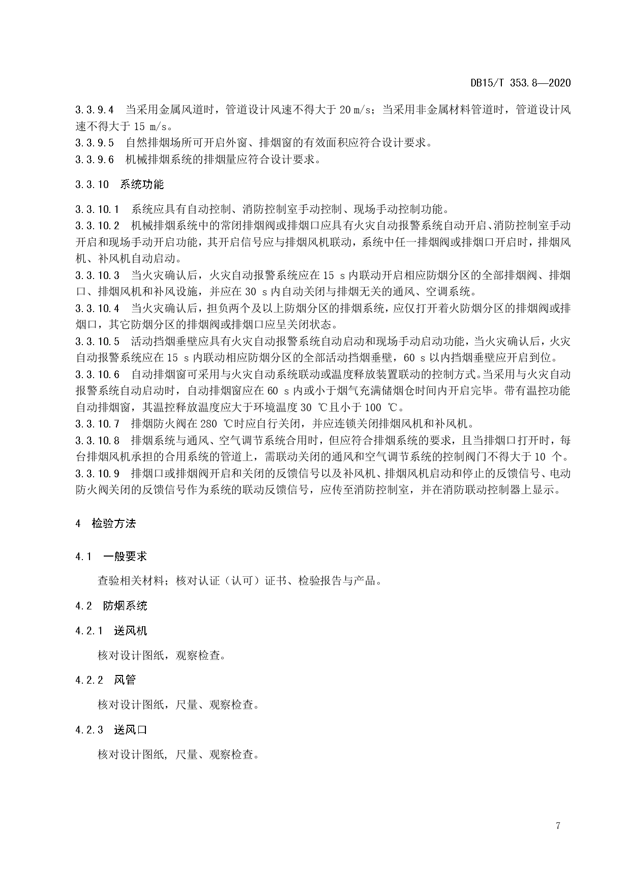 建筑消防设施检验规程 第8部分:防排烟系统DB15/T 353.8—2020