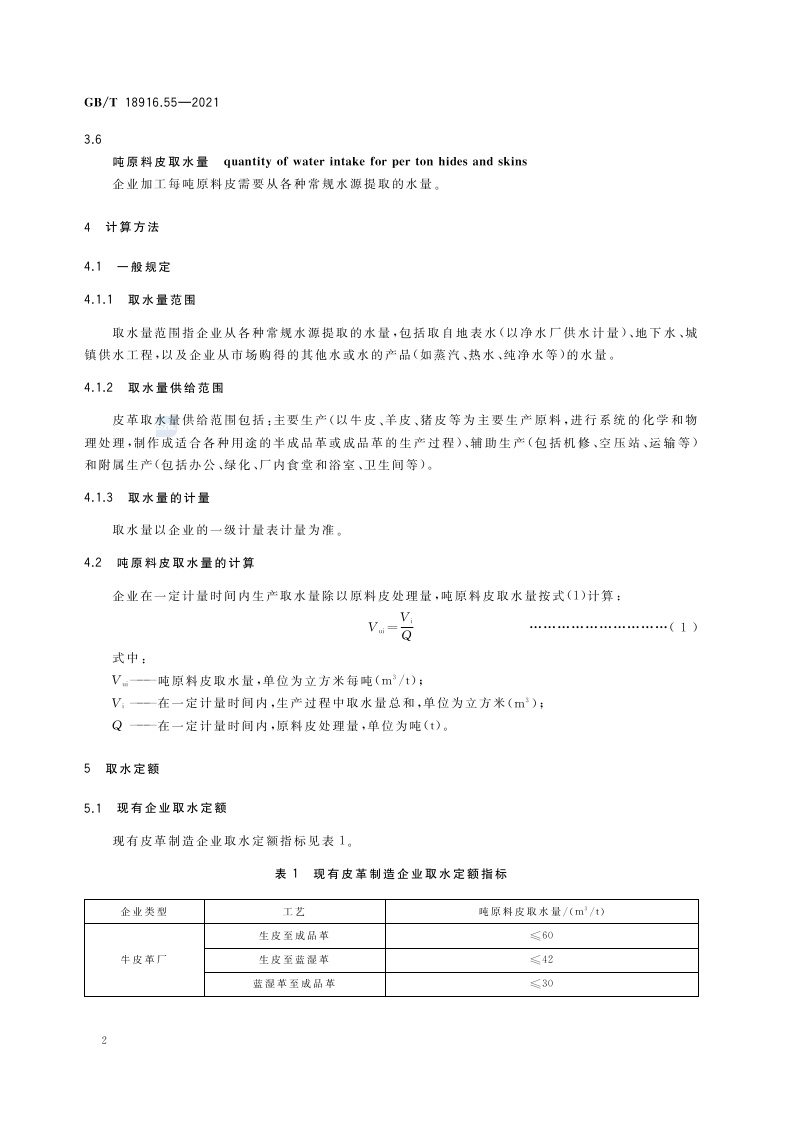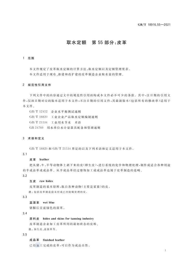 《取水定额 第55部分:皮革》(GB/T 18916.55-2021)