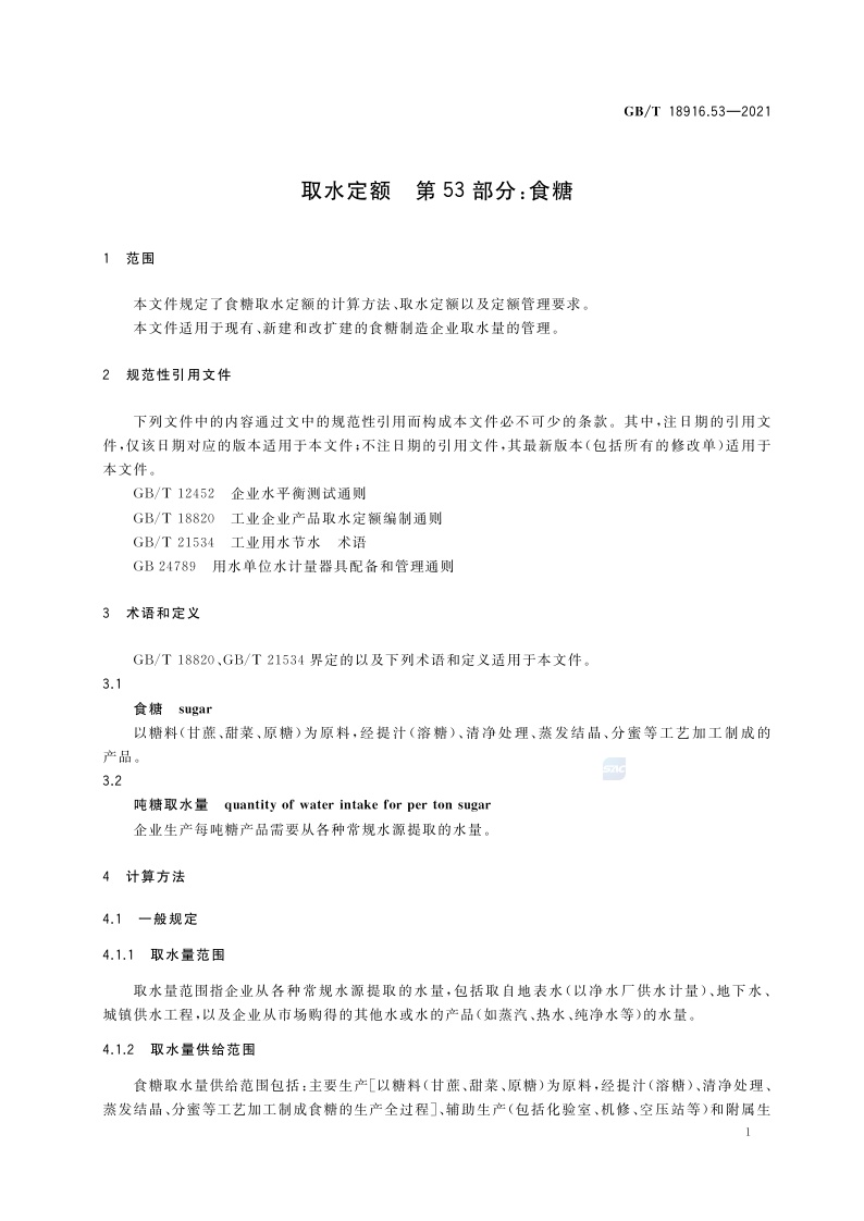 《取水定额 第53部分:食糖》(GB/T 18916.53-2021)