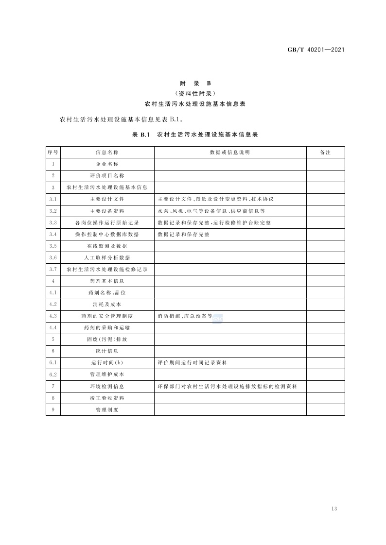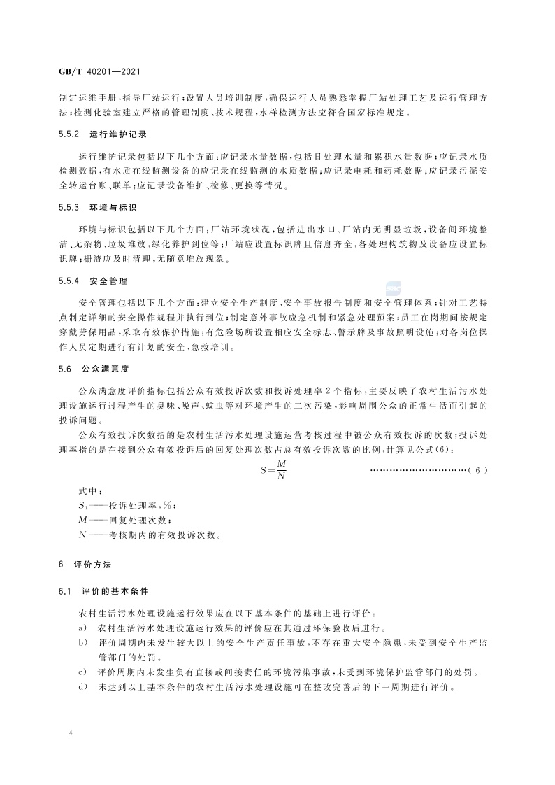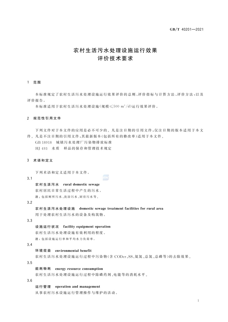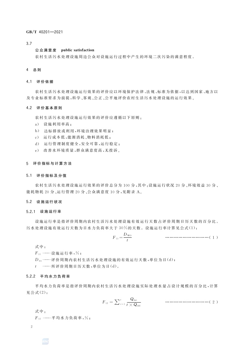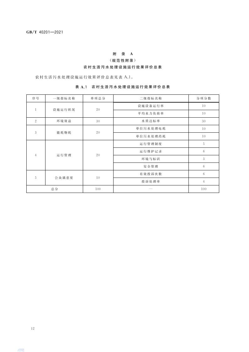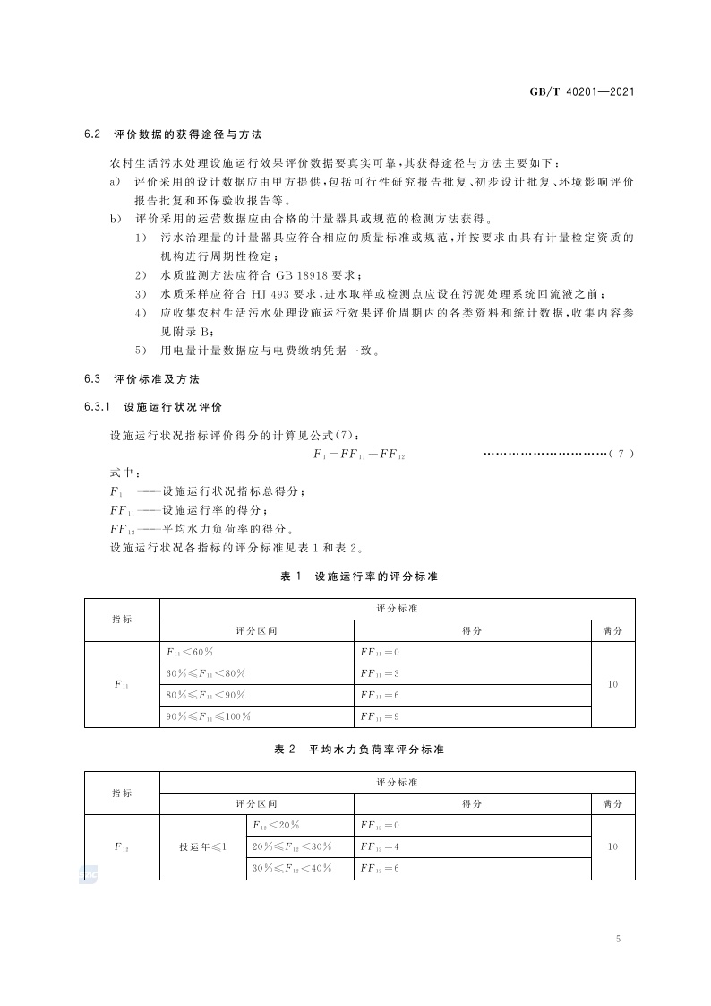 《农村生活污水处理设施运行效果评价技术要求》(GB/T 40201-2021)