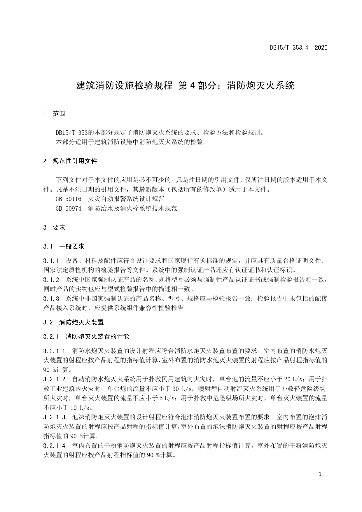 建筑消防设施检验规程 第4部分:消防炮灭火系统DB15/T 353.4—2020