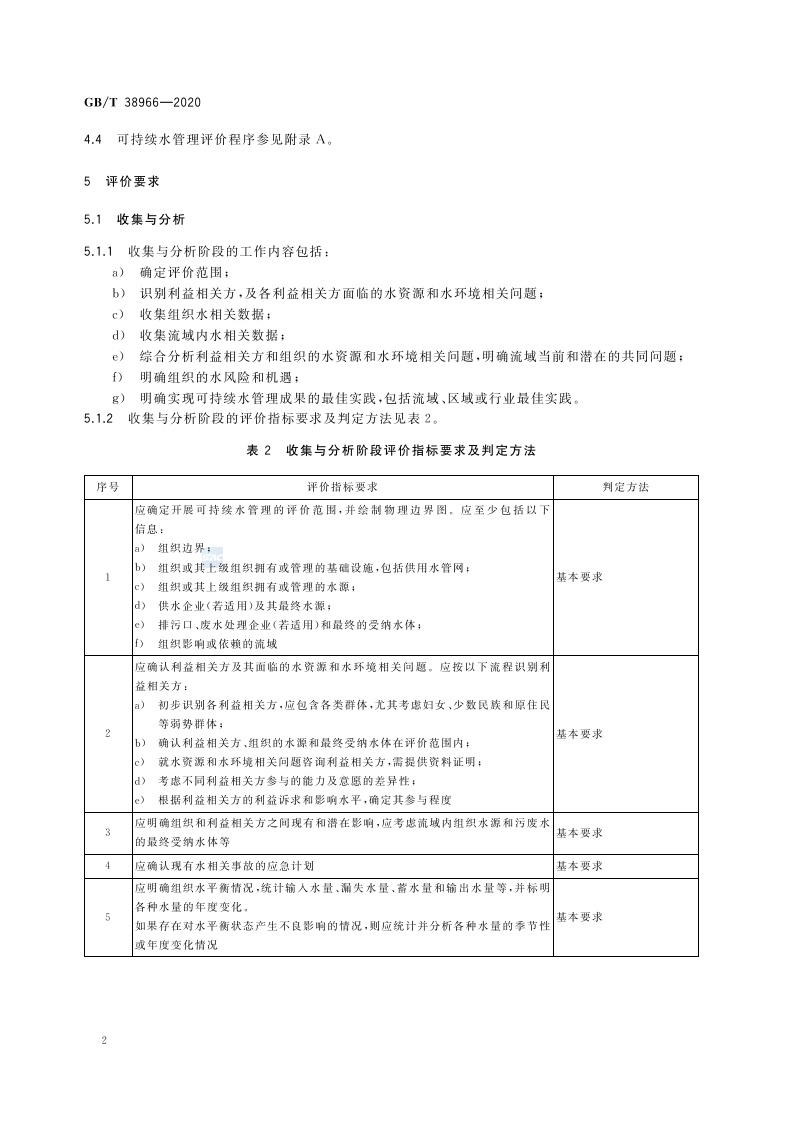 《可持续水管理评价要求》(GB/T 38966-2020)