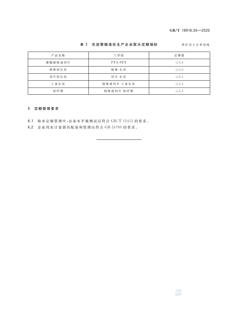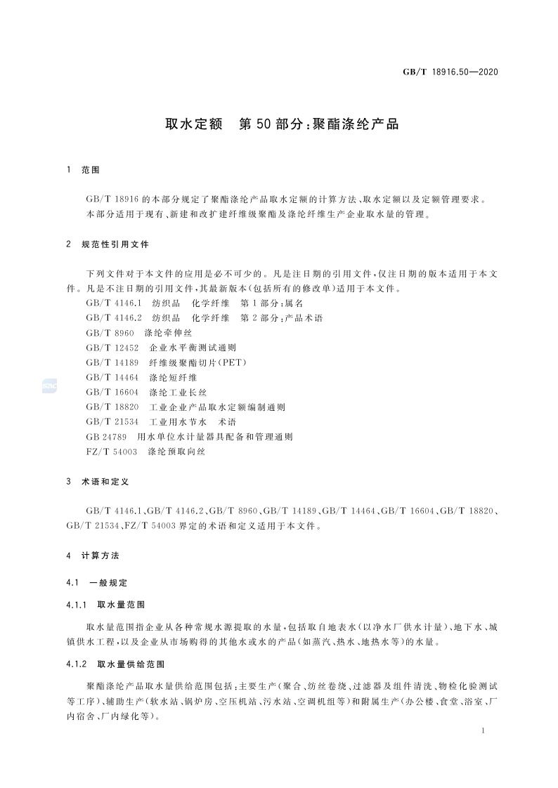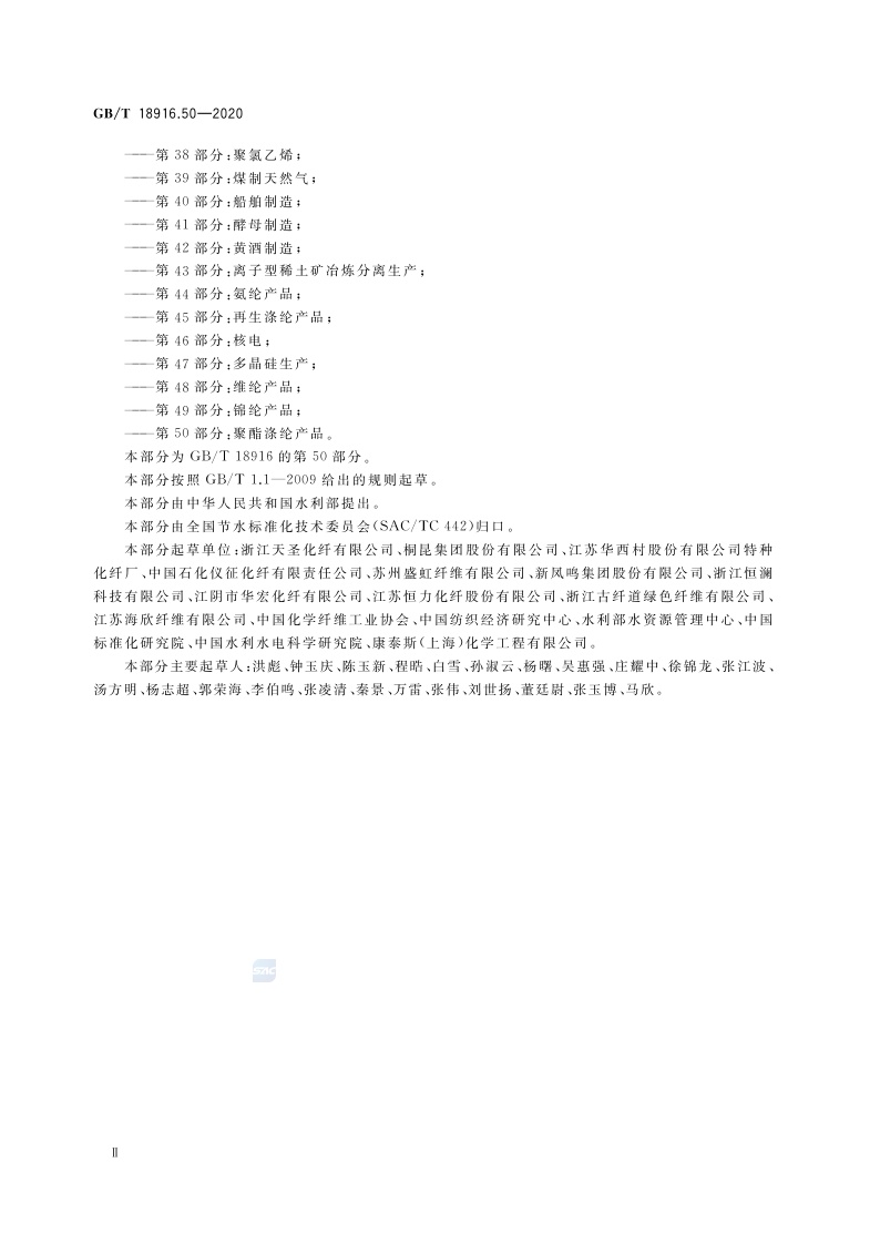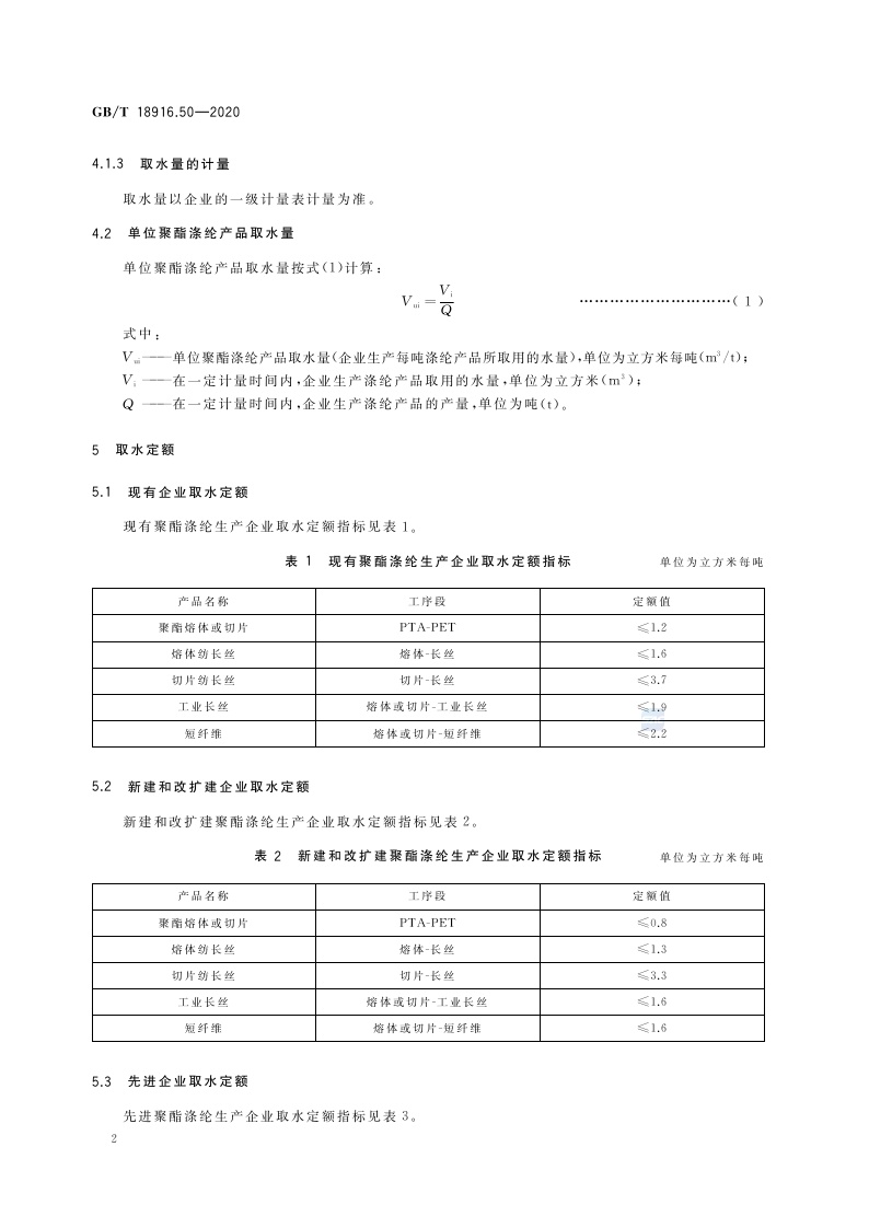 《取水定额 第50部分:聚酯涤纶产品》(GB/T 18916.50-2020)