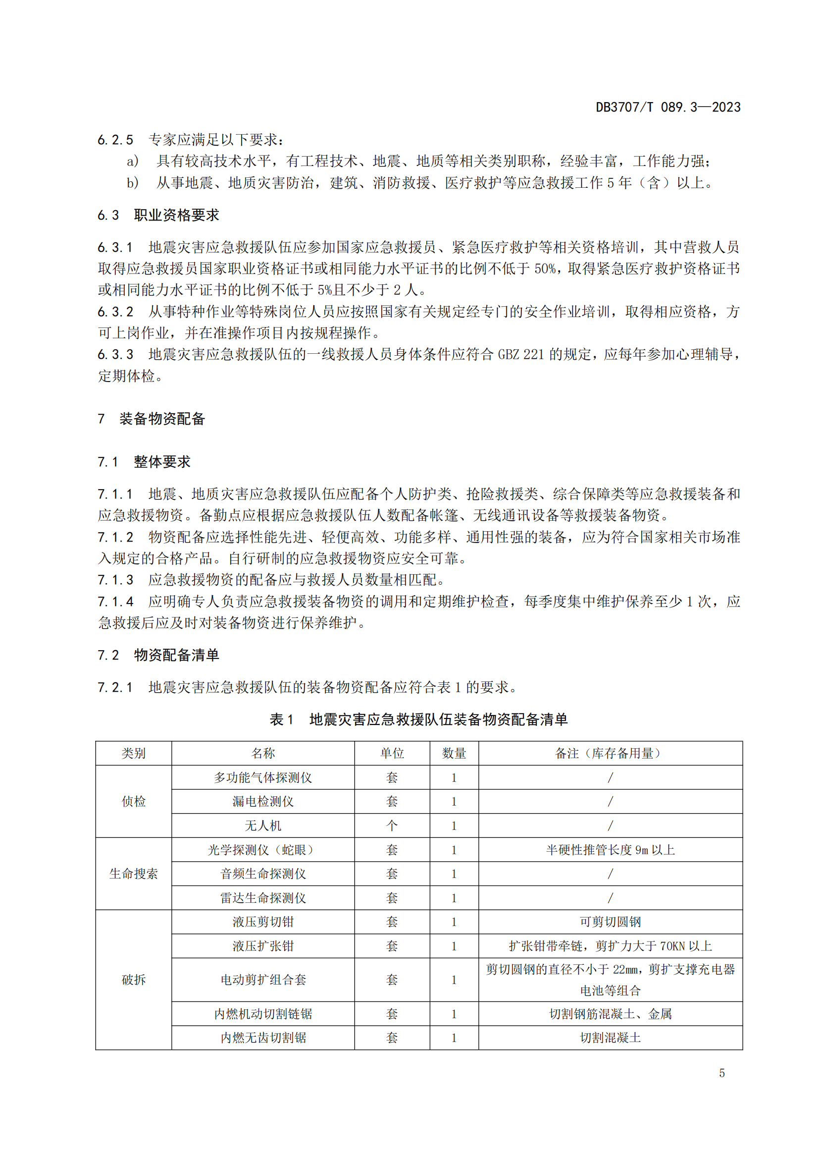 应急救援队伍建设规范 第3部分:地震地质灾害