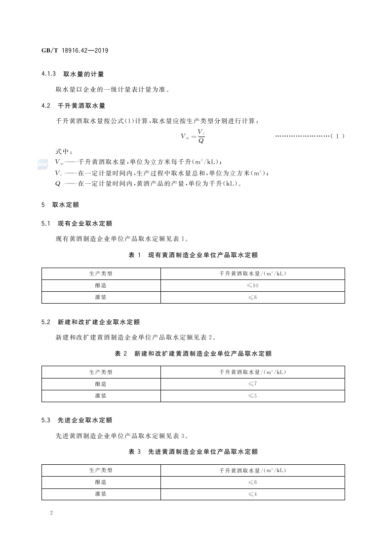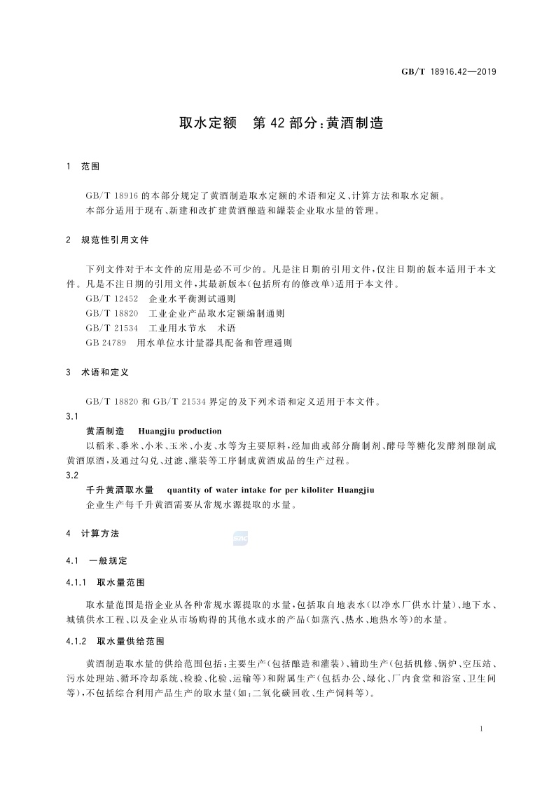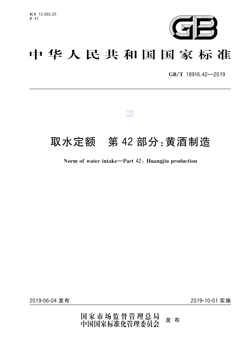 《取水定额 第42部分:黄酒制造》(GB/T 18916.42-2019)