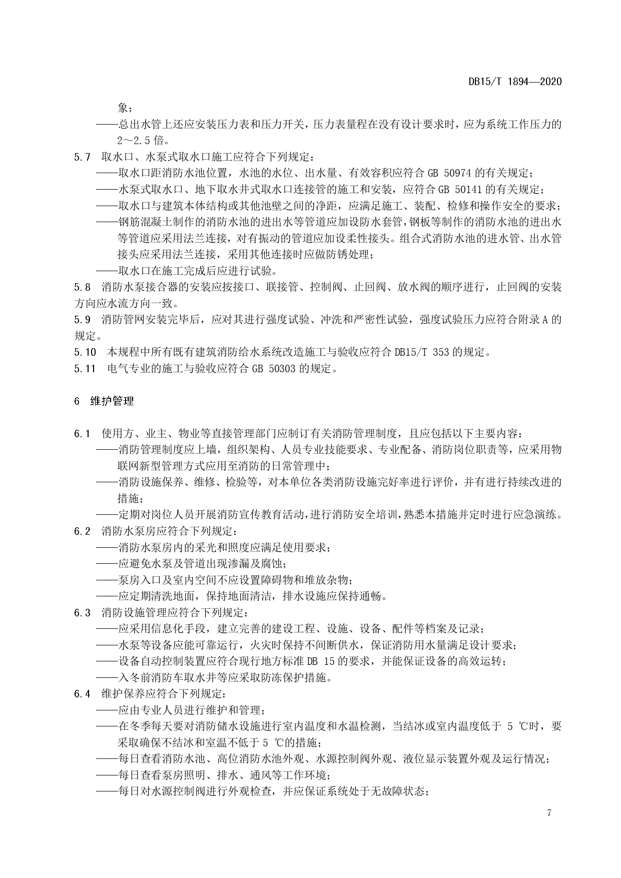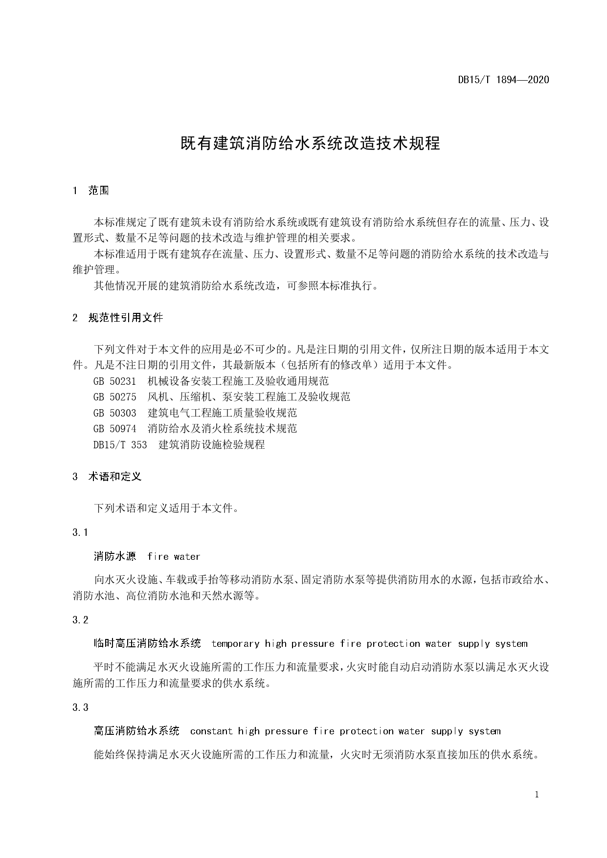 既有建筑消防给水系统改造技术规程DB15/T 1894—2020
