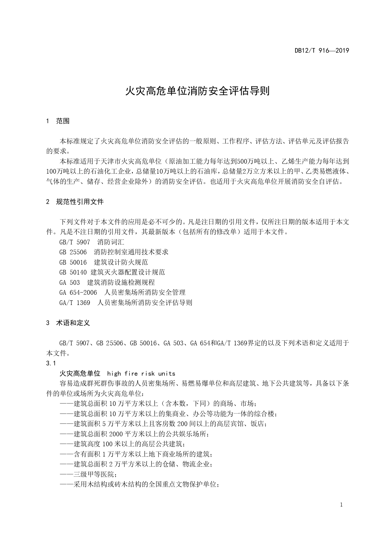 火灾高危单位消防安全评估导则DB12/T 916-2019