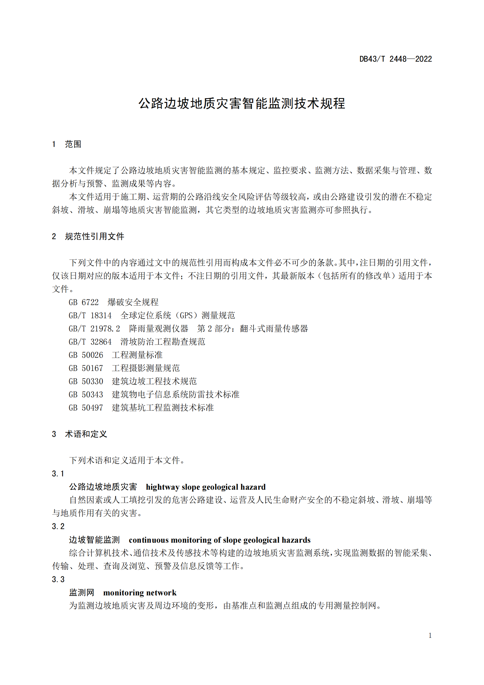 公路边坡地质灾害智能监测技术规程