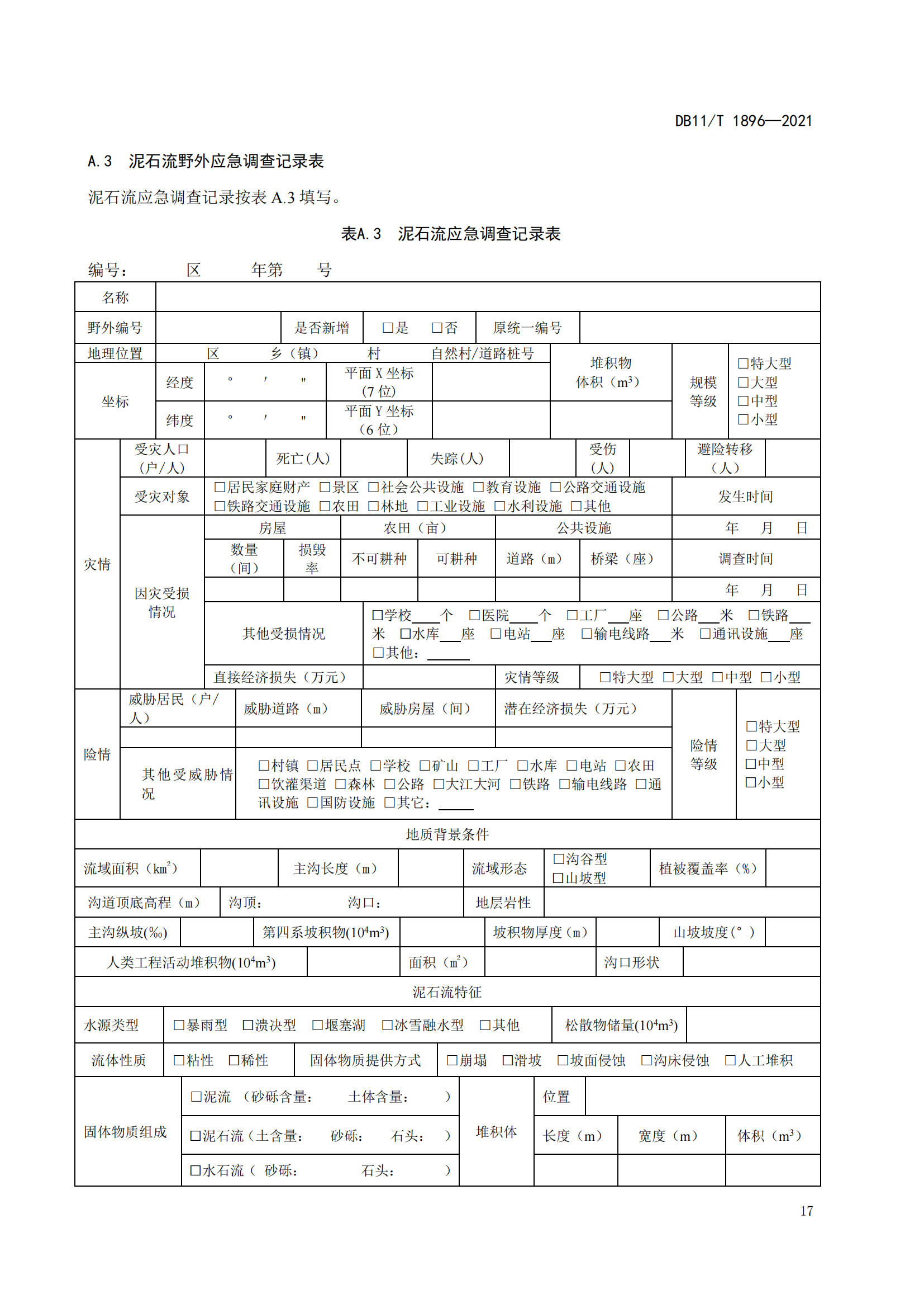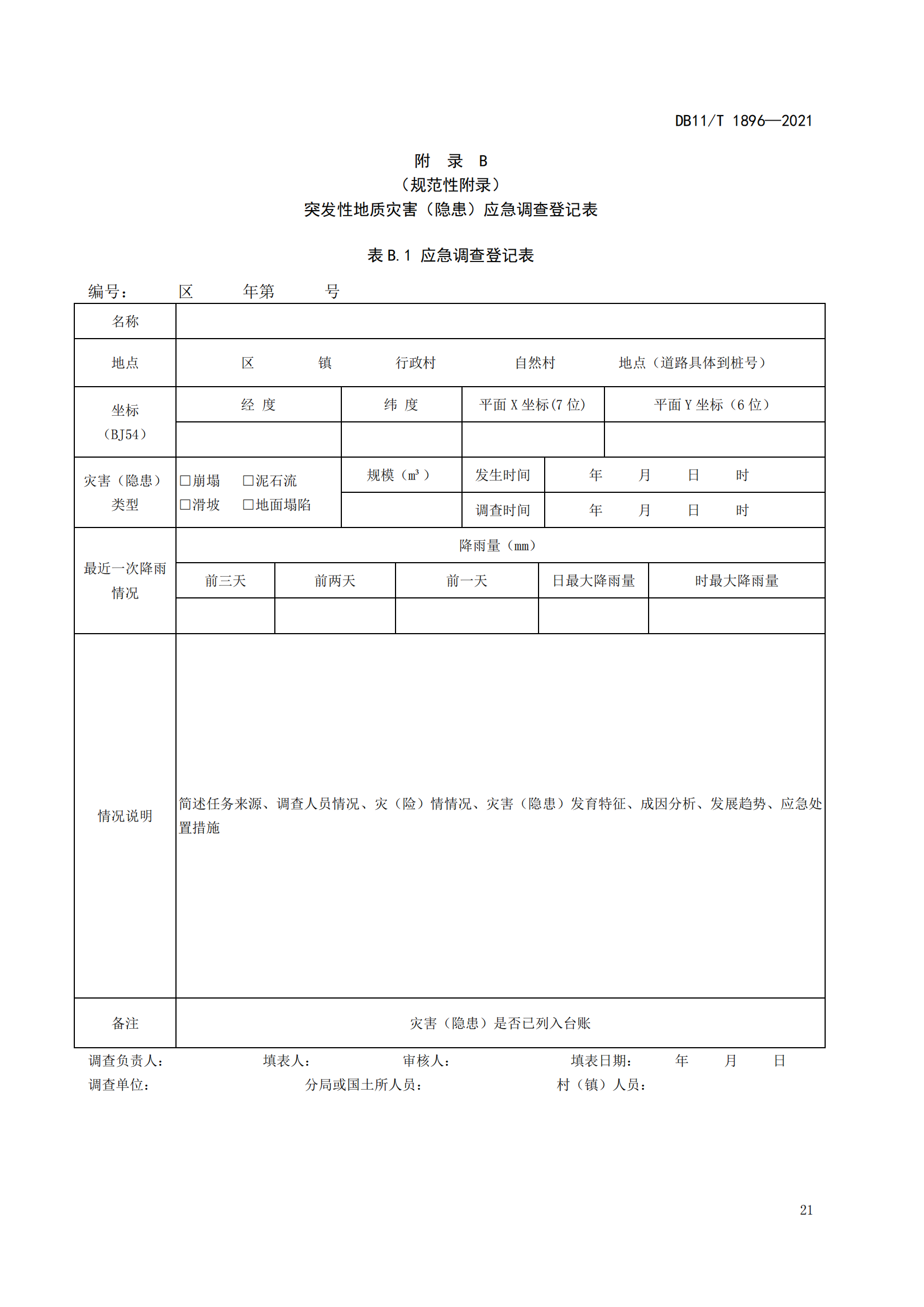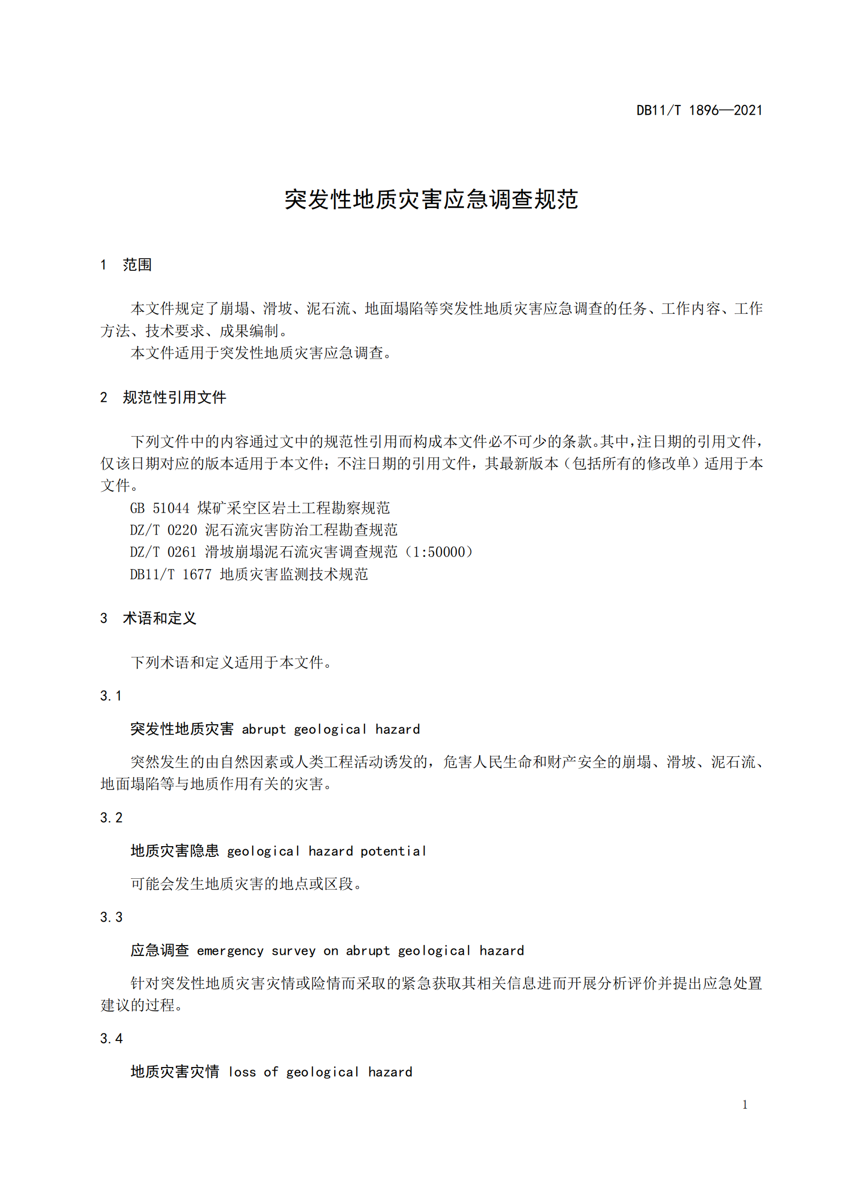 突发性地质灾害应急调查规范