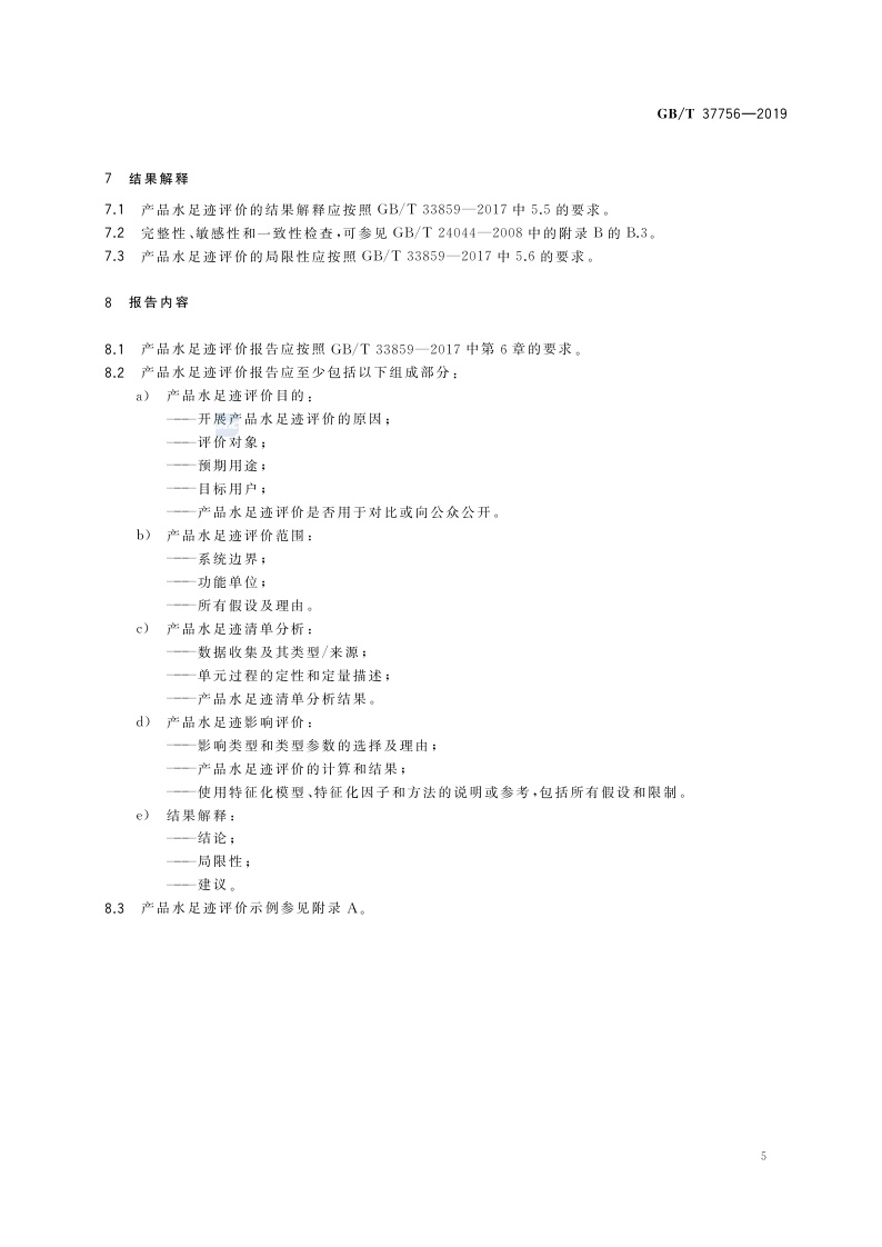 《产品水足迹评价和报告指南》(GB/T 37756-2019)