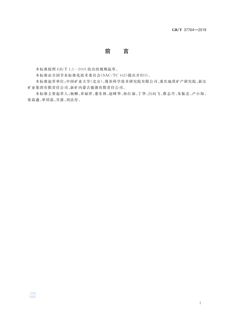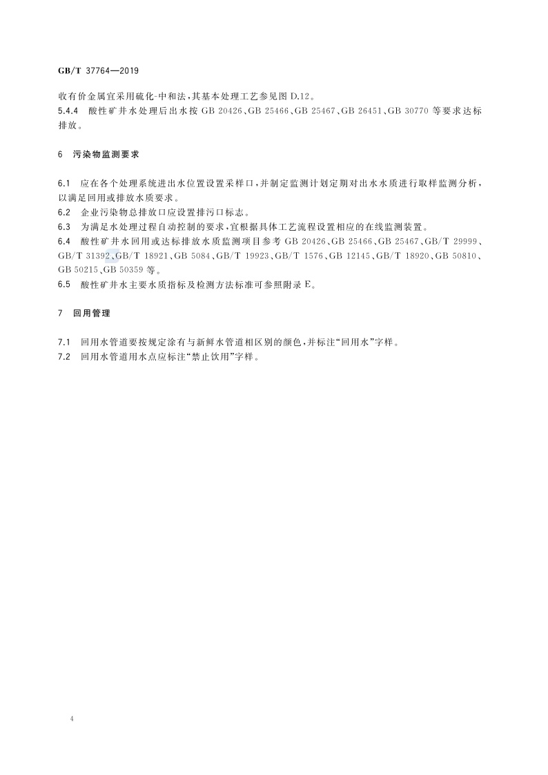 《酸性矿井水处理与回用技术导则》(GB/T 37764-2019)