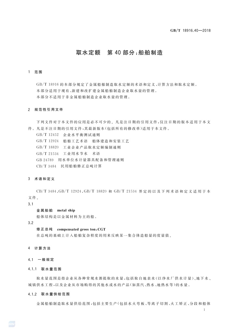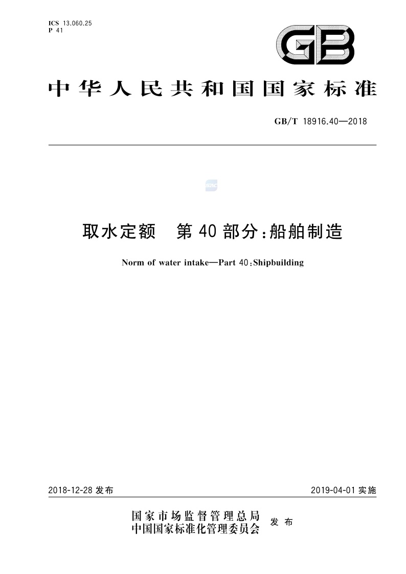 《取水定额 第40部分:船舶制造》(GB/T 18916.40-2018)