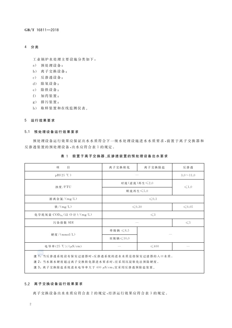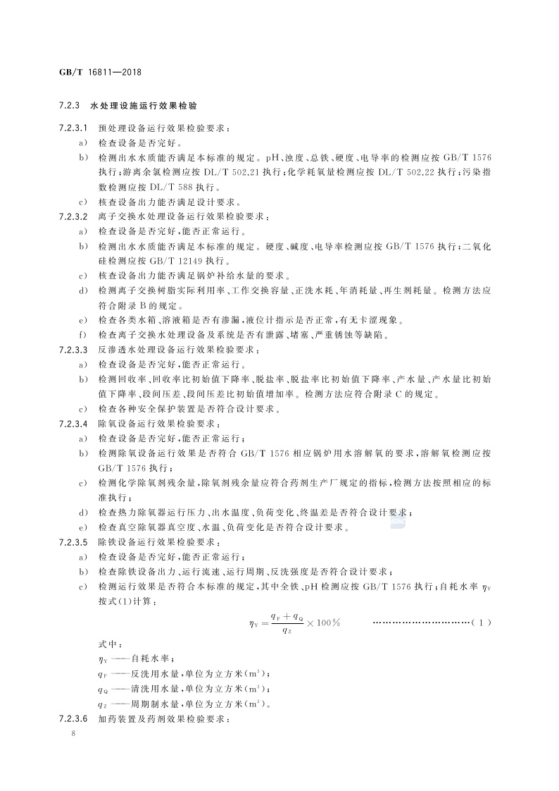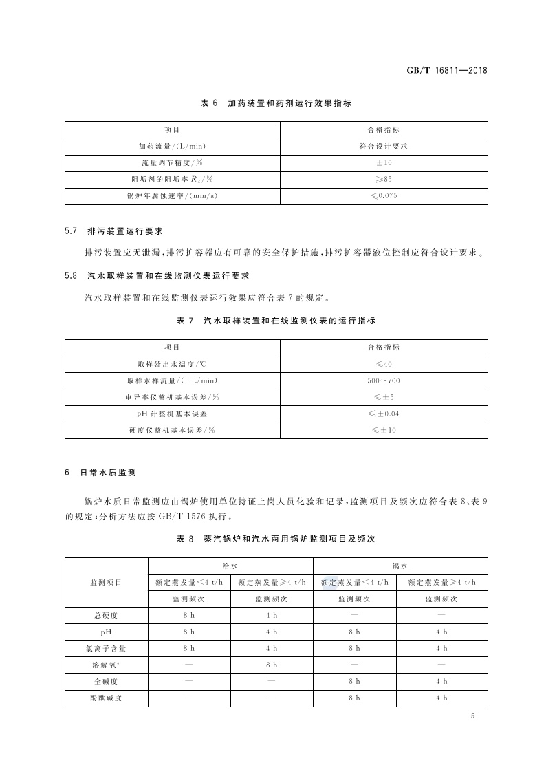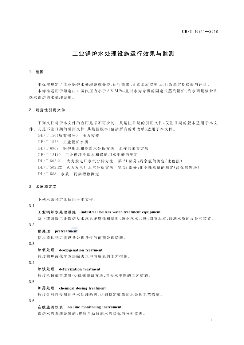 《工业锅炉水处理设施运行效果与监测》(GB/T 16811-2018)