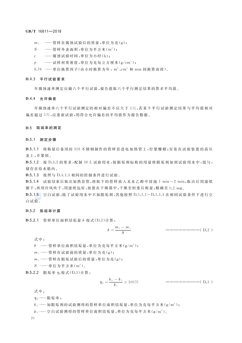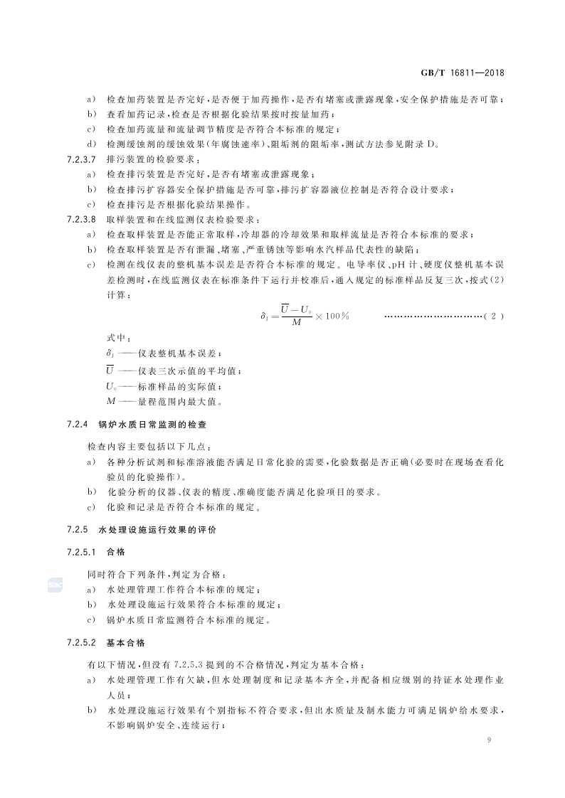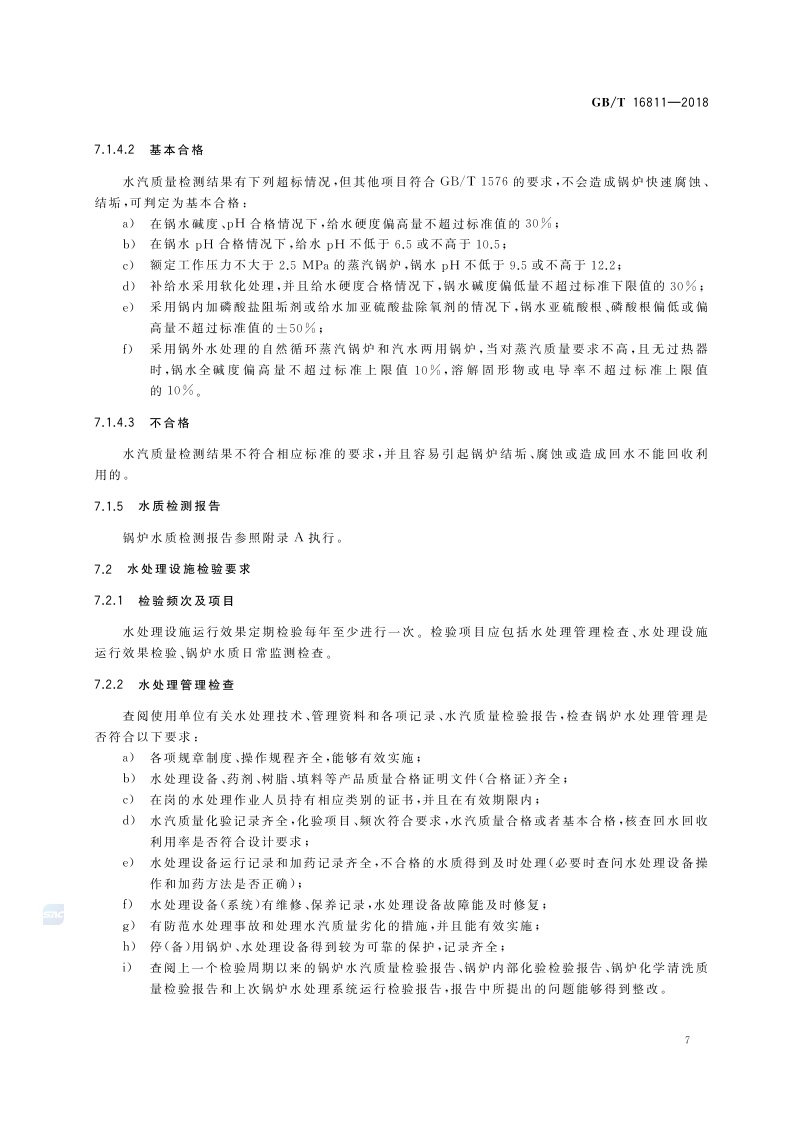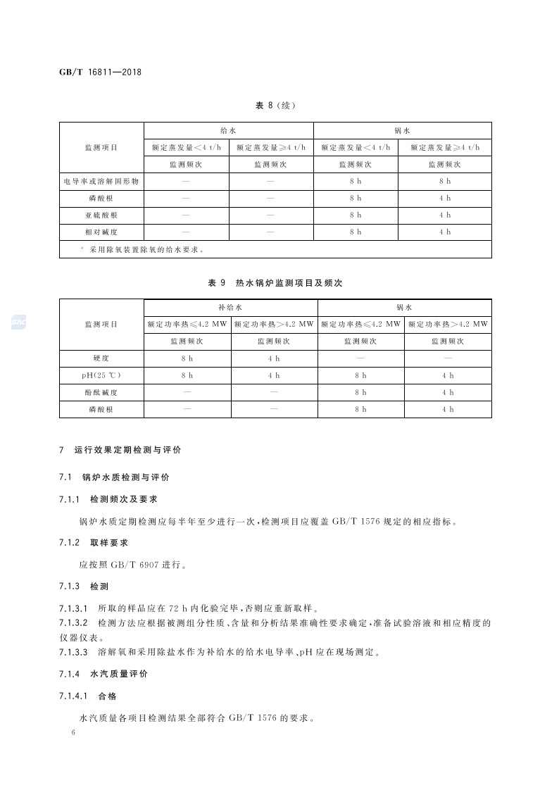 《工业锅炉水处理设施运行效果与监测》(GB/T 16811-2018)