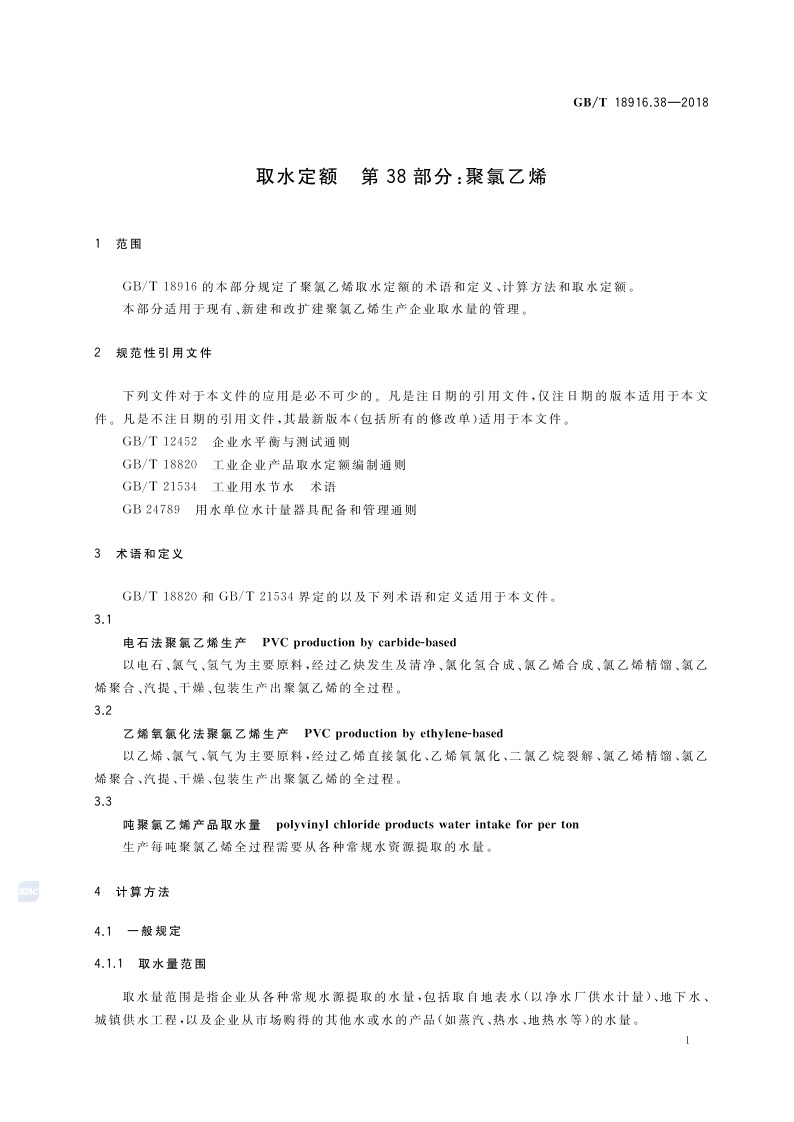 《取水定额 第38部分:聚氯乙烯》(GB/T 18916.38-2018)